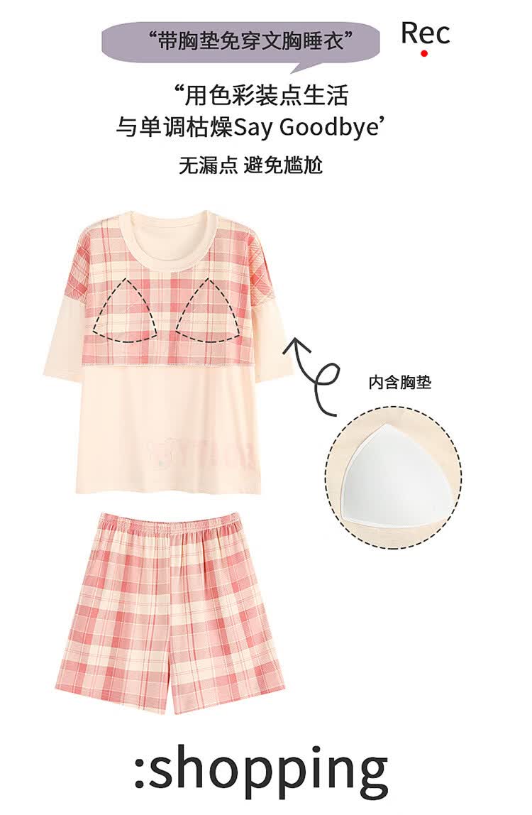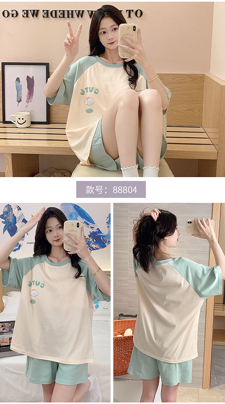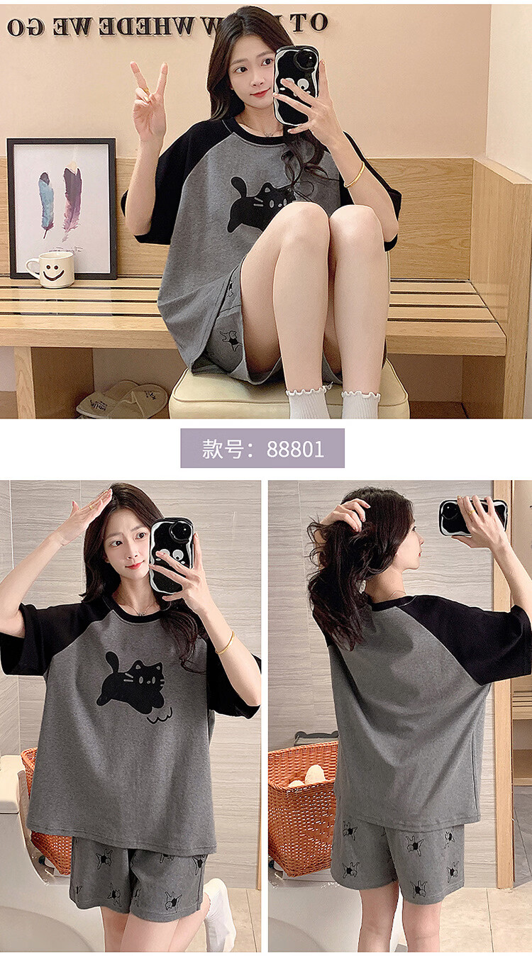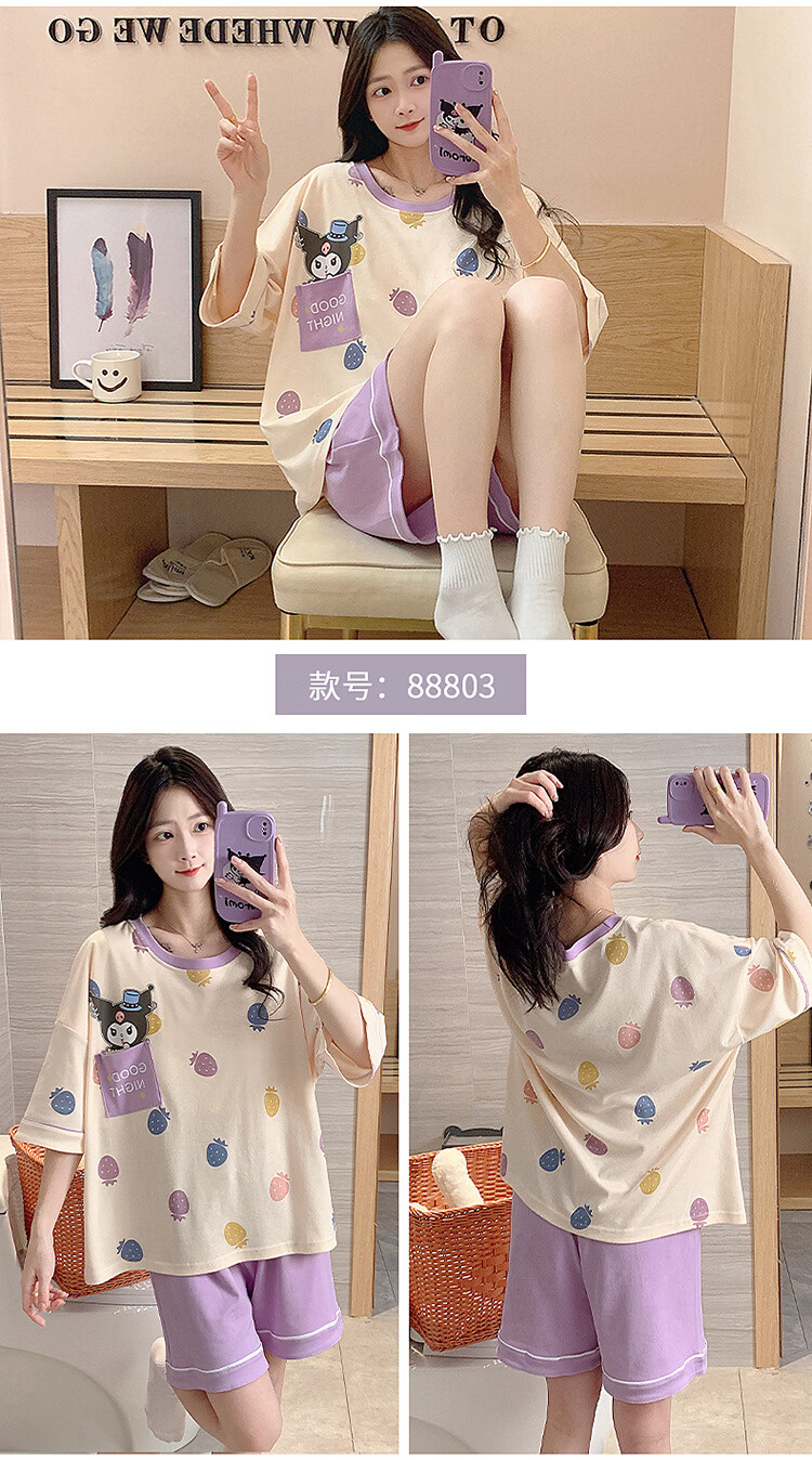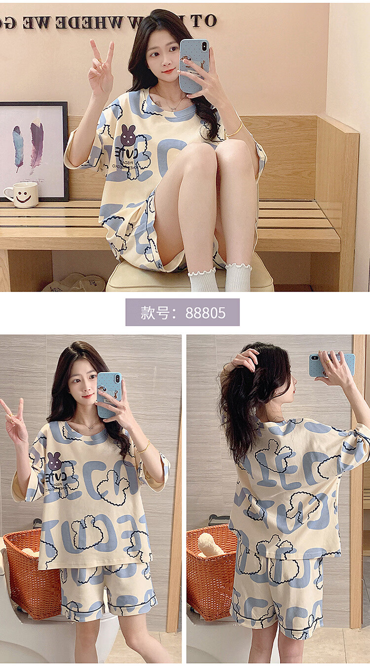 DAPHNE达芙妮夏季新款短袖短裤女休闲大码宽松可爱卡通可外穿带胸垫家居服套装 CRS-88801带胸垫 L