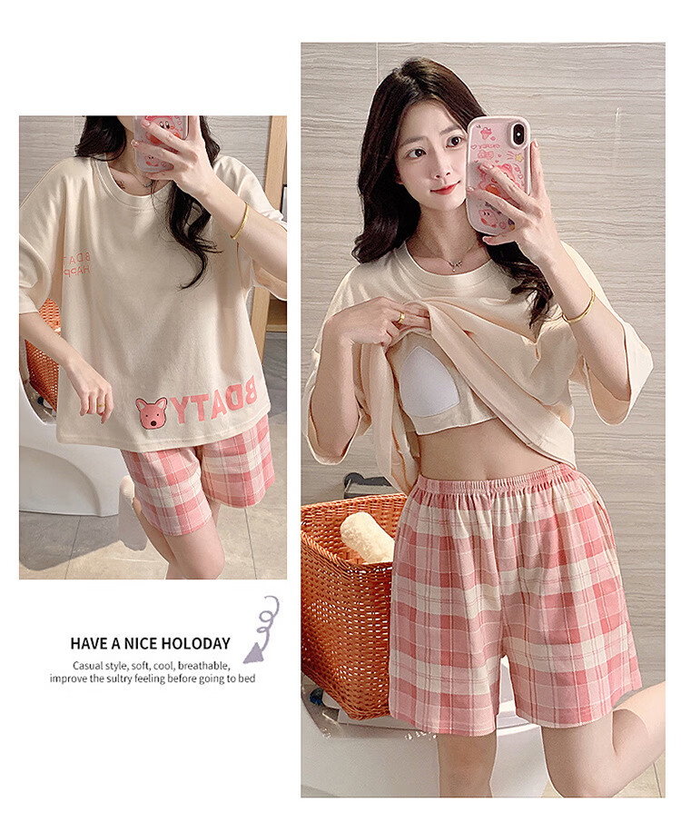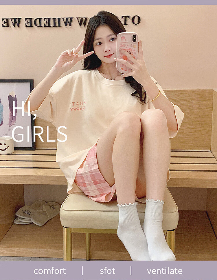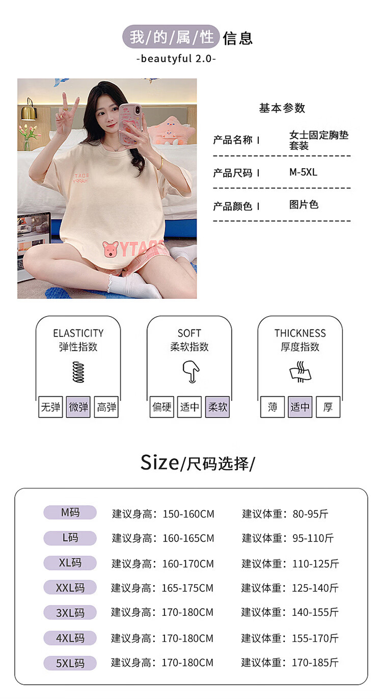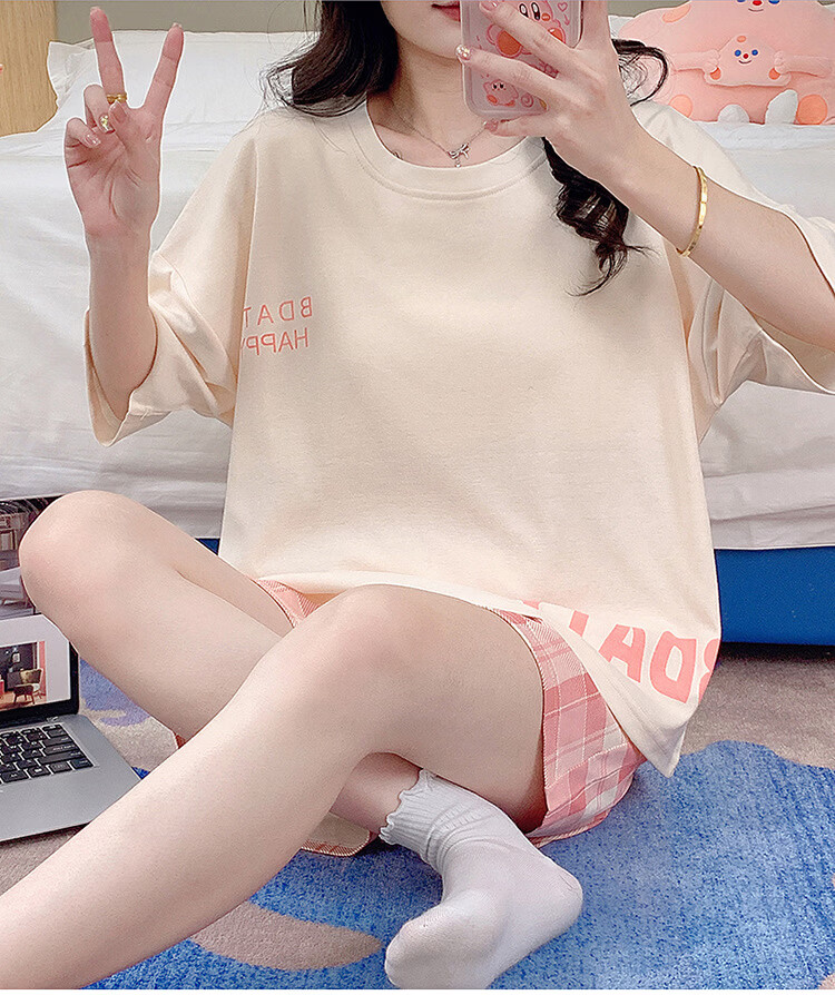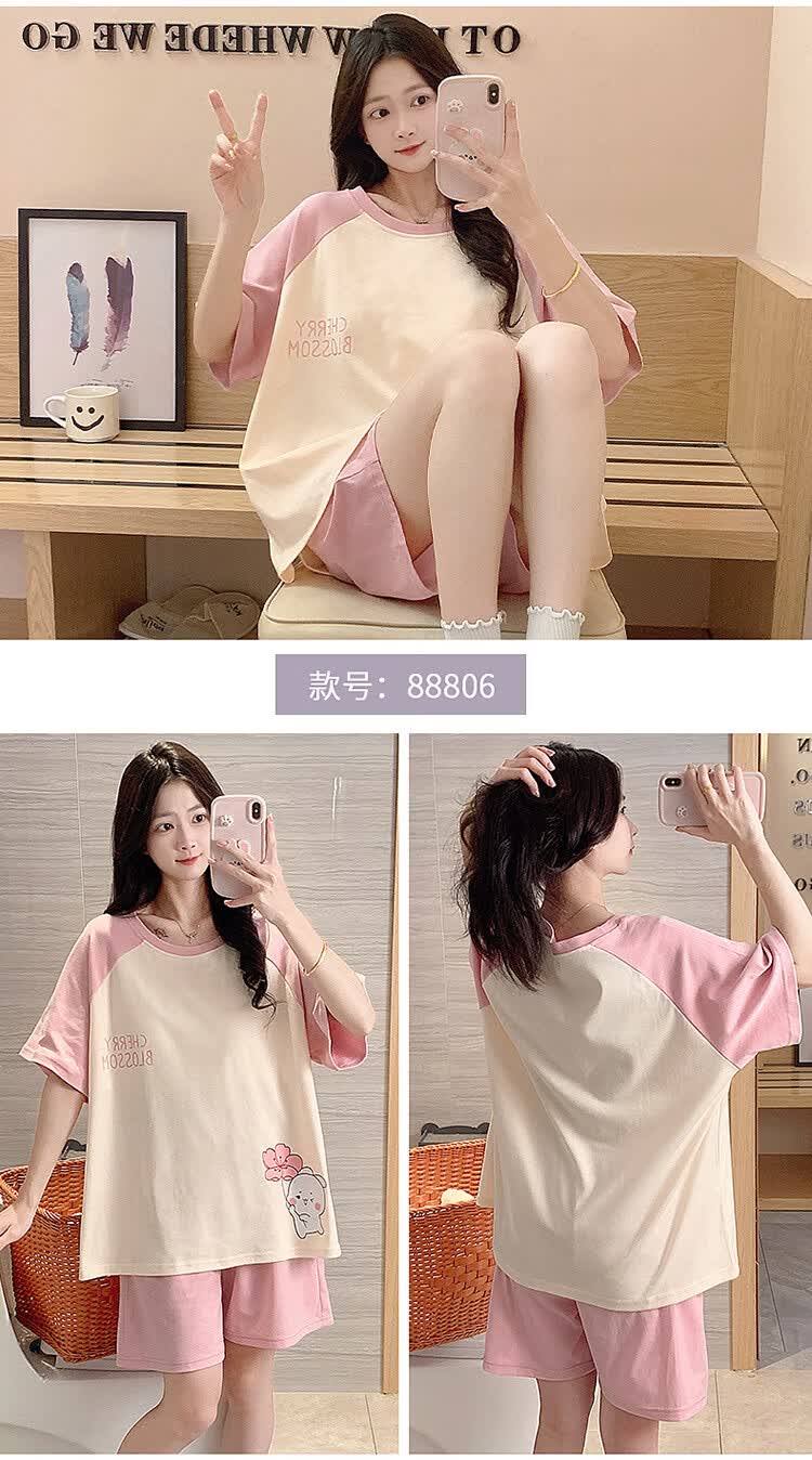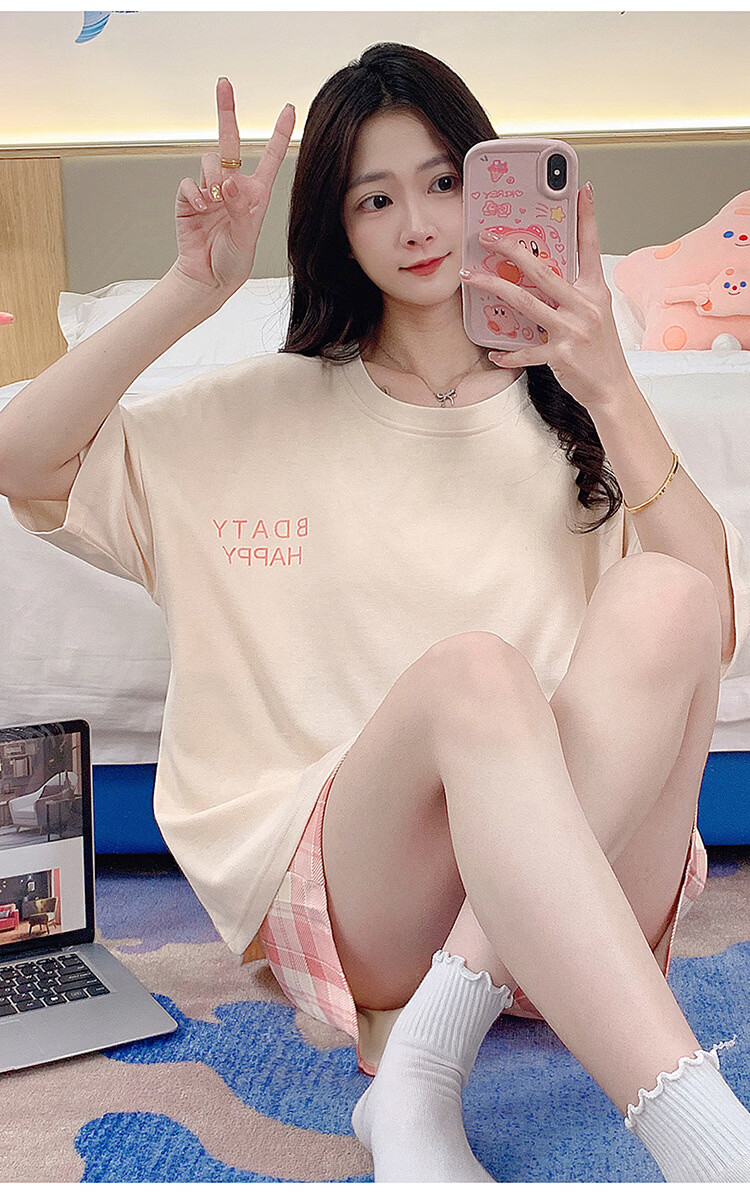 DAPHNE达芙妮夏季新款短袖短裤女休闲大码宽松可爱卡通可外穿带胸垫家居服套装 CRS-88801带胸垫 L