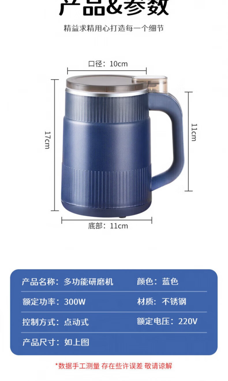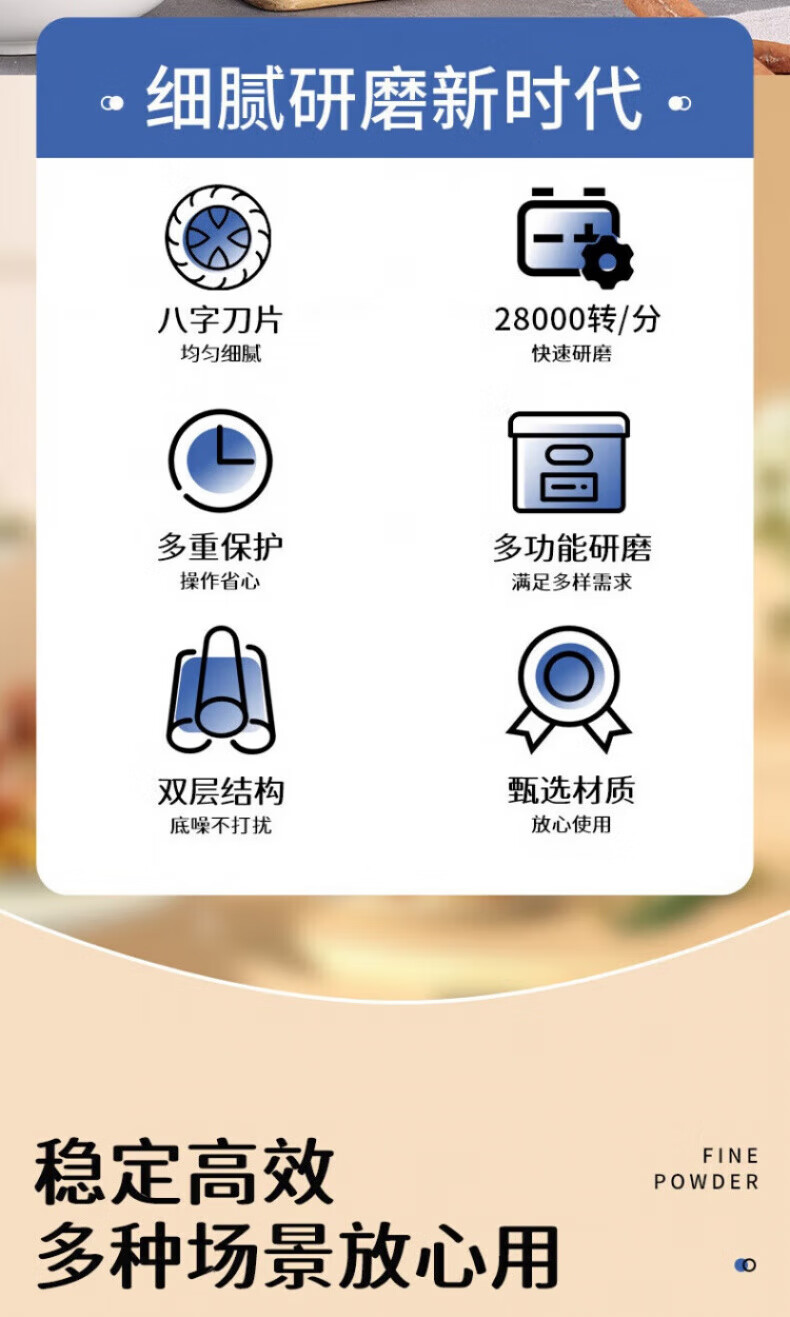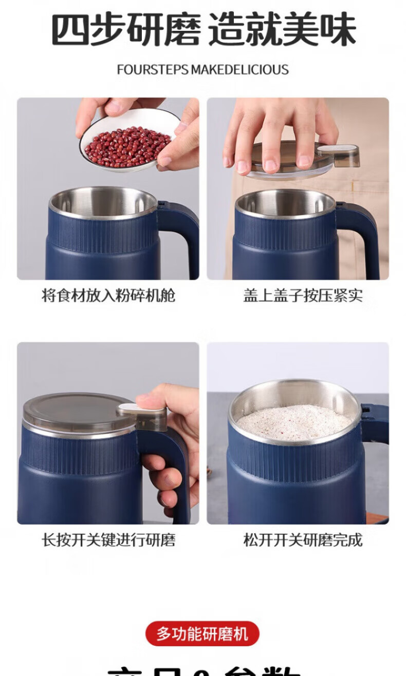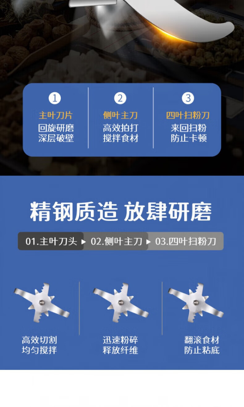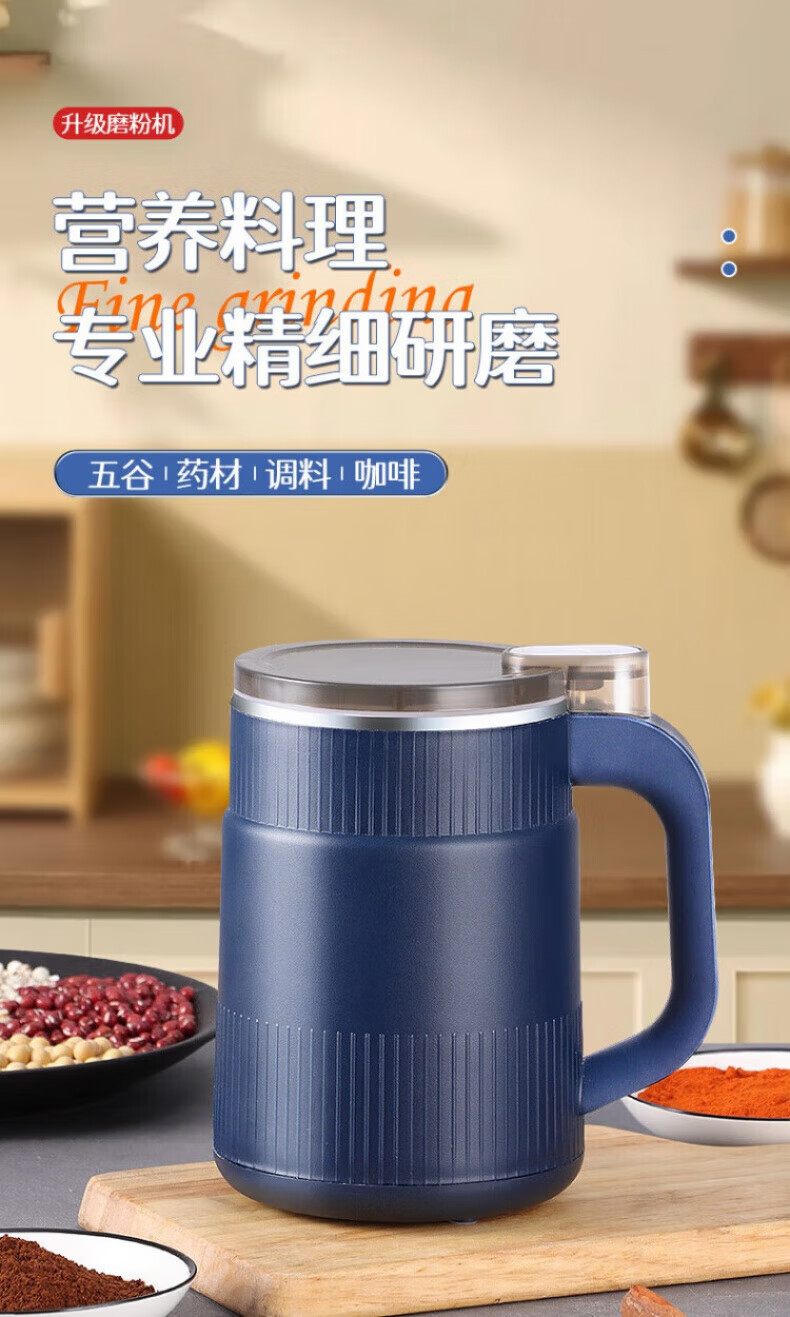 DIKTT德国磨粉机 五谷杂粮超细家用中药研磨机大容量家用超细磨粉器全自动多功能打粉机干湿两用 【蓝色两套刀】全铜电机+八叶精钢刀头