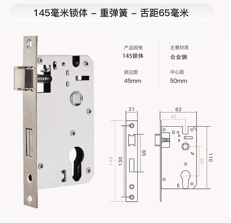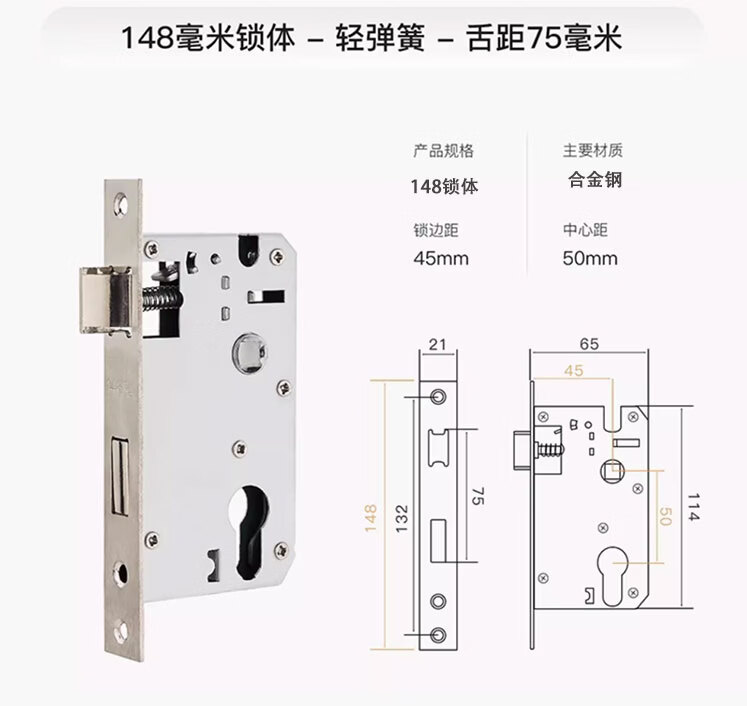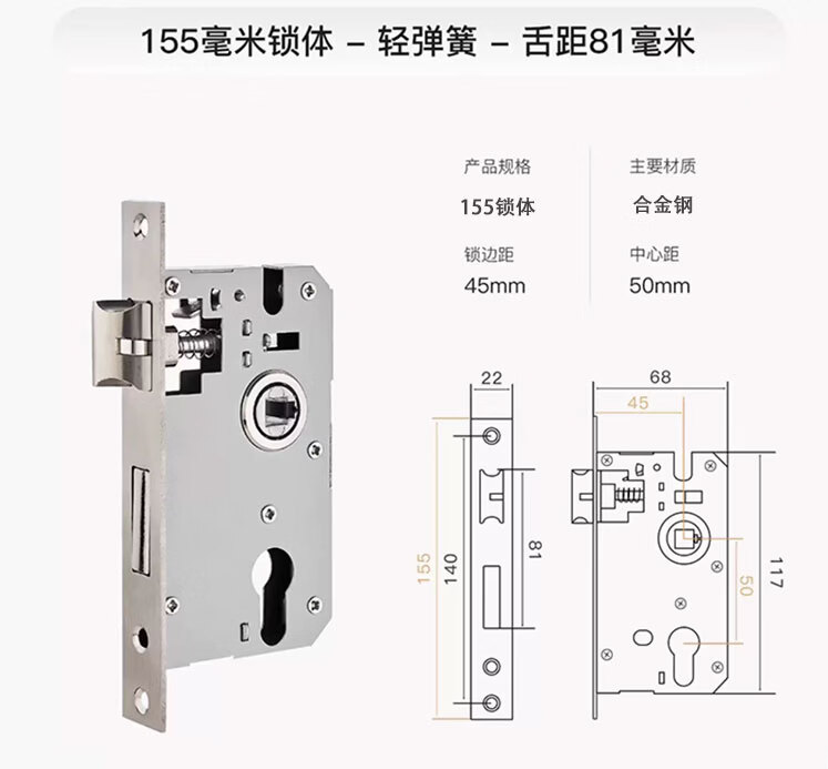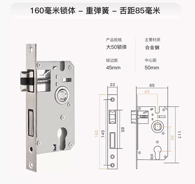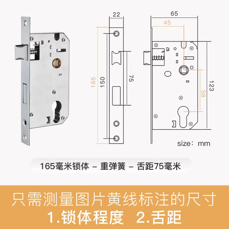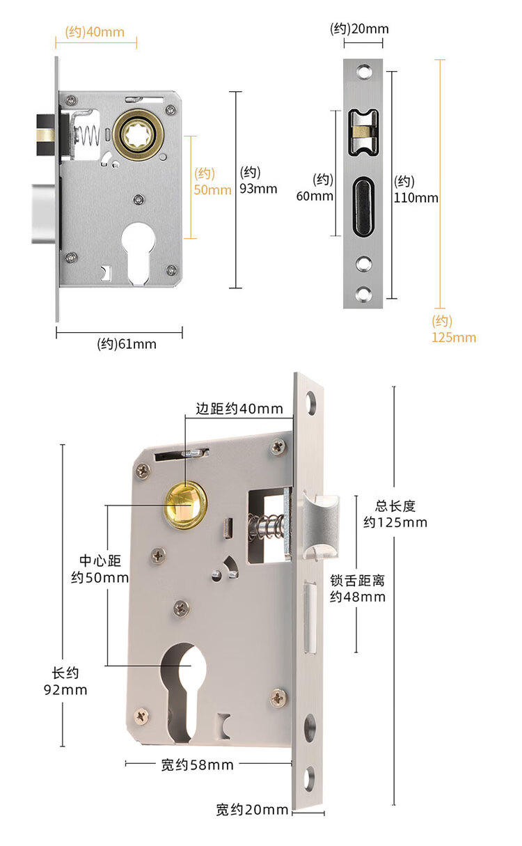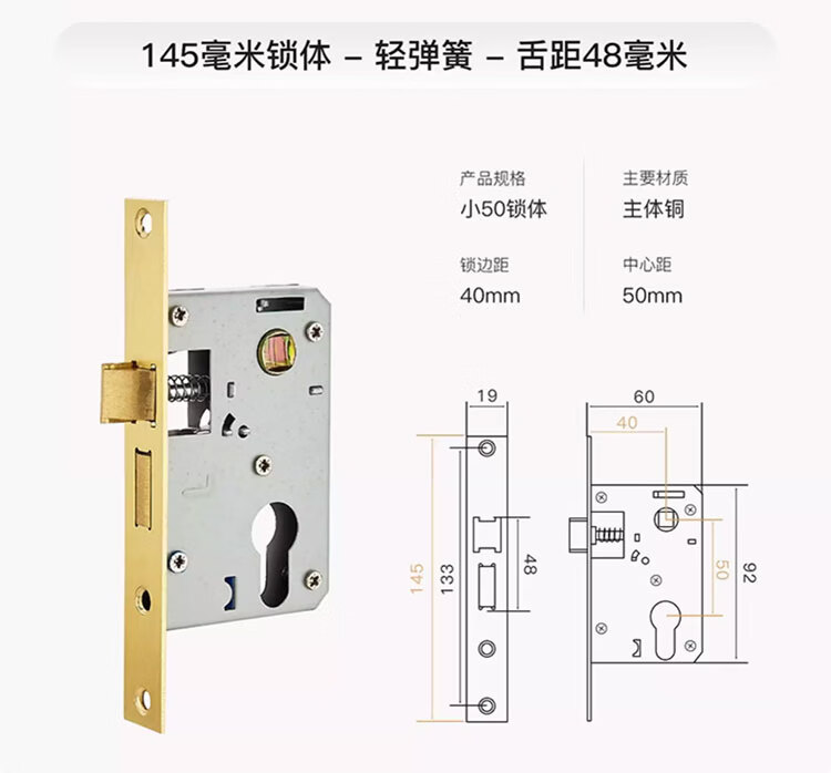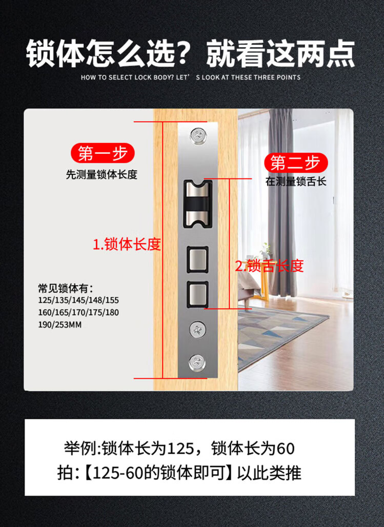 云航锁体卧室门锁体通用木门锁体室内门锁体房间门锁小50锁体 125A锁体(锁舌间距60mm)