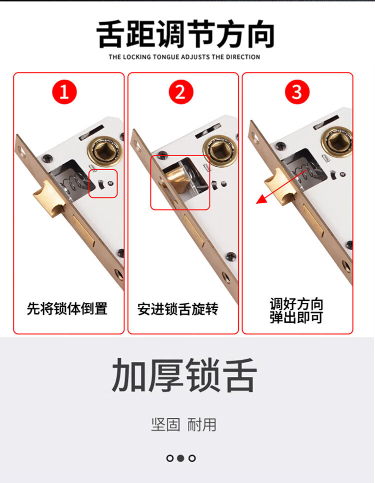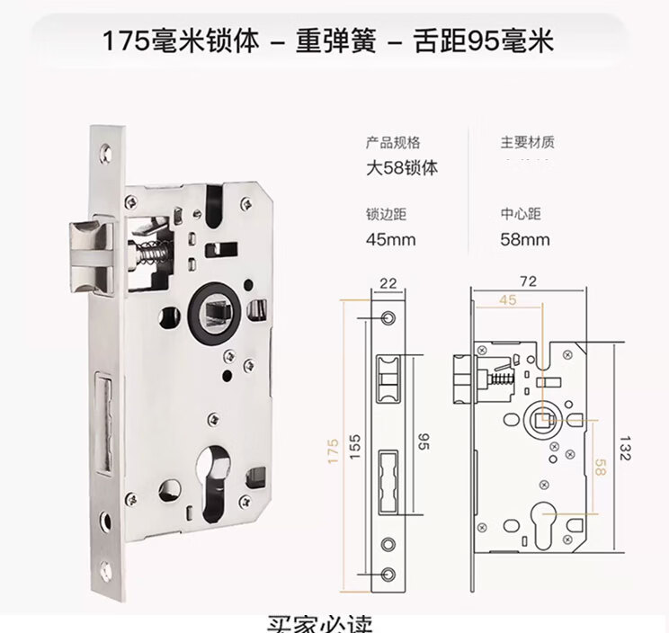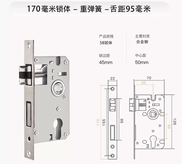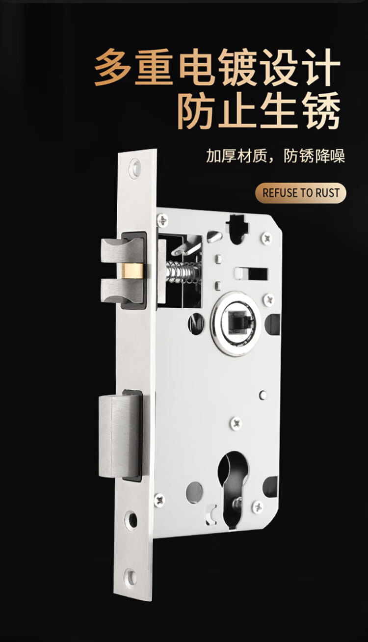 云航防盗门锁体家用大门锁通用锁体不锈钢防盗锁体入户门防盗门锁配件 24*240方舌锁体有钩