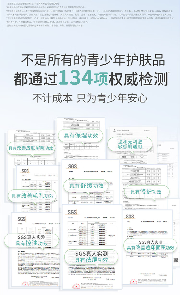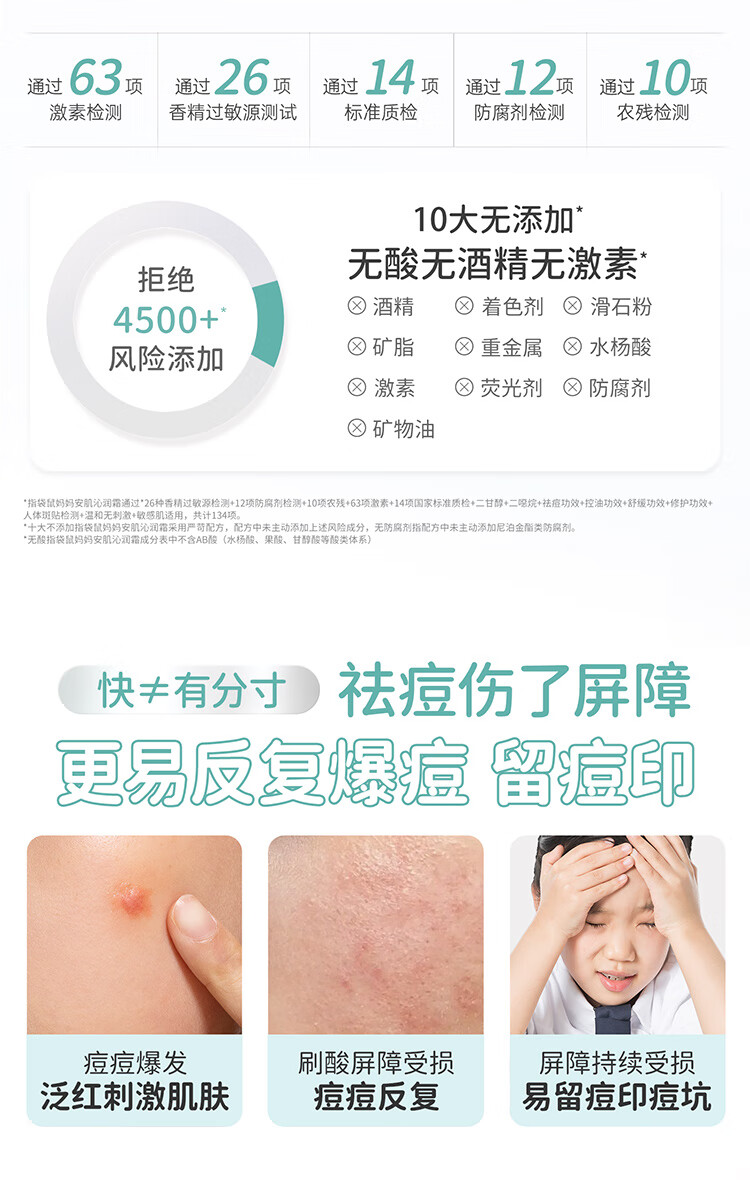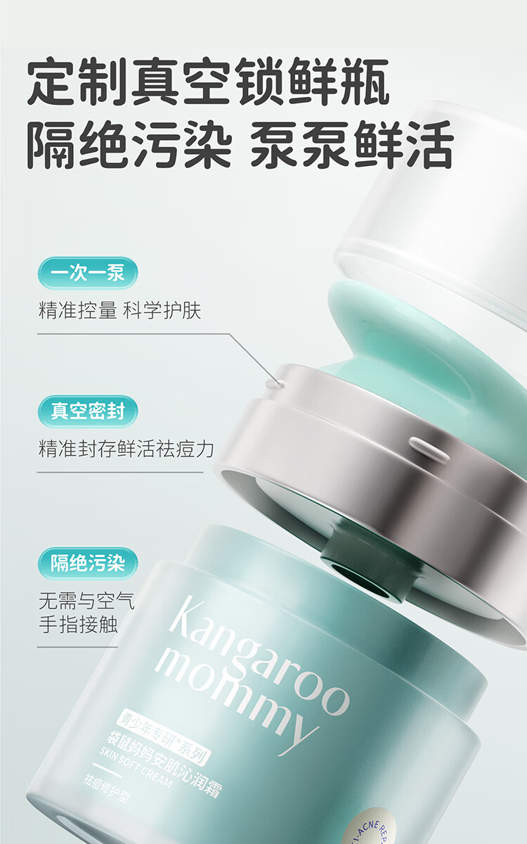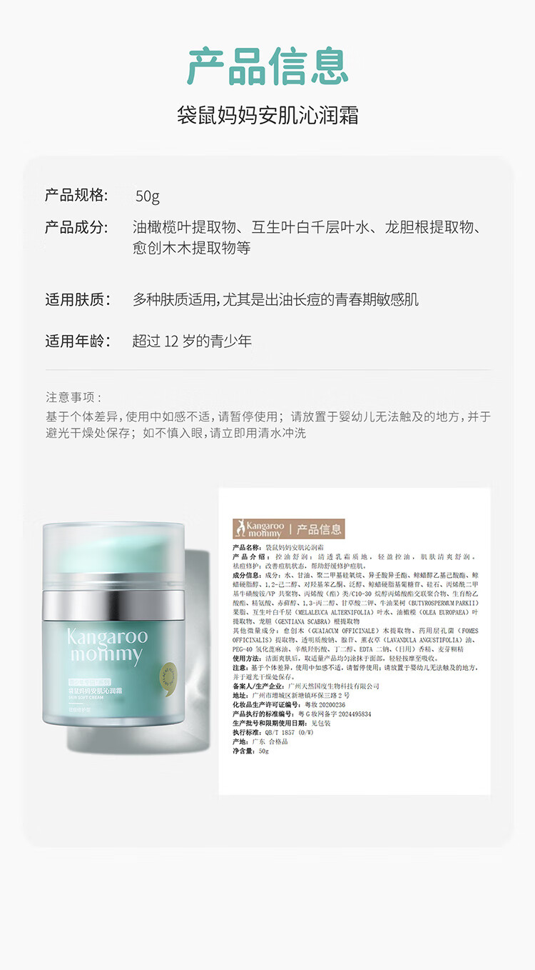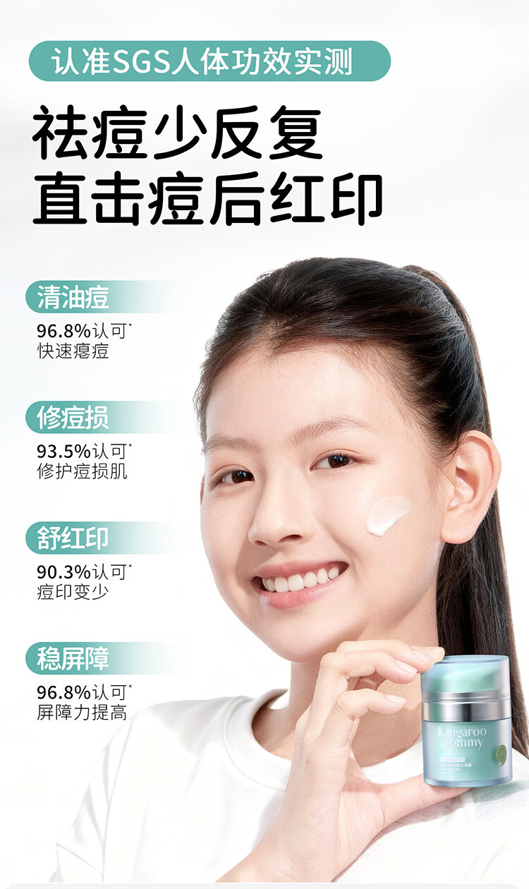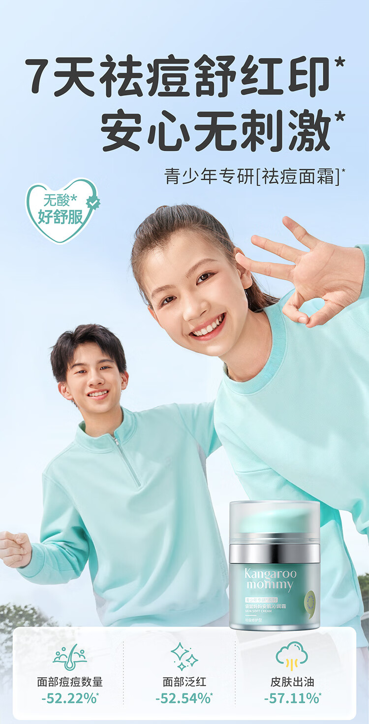 袋鼠妈妈青少年祛痘面霜50g 控油祛痘儿童面霜秋冬保湿舒缓12-18岁青春期