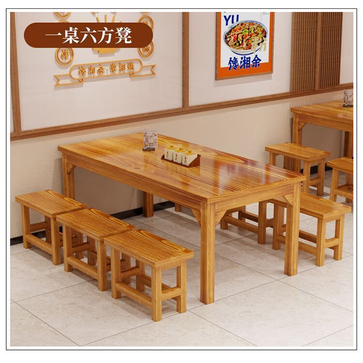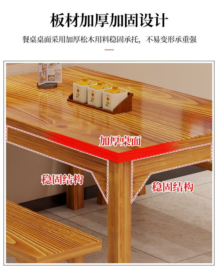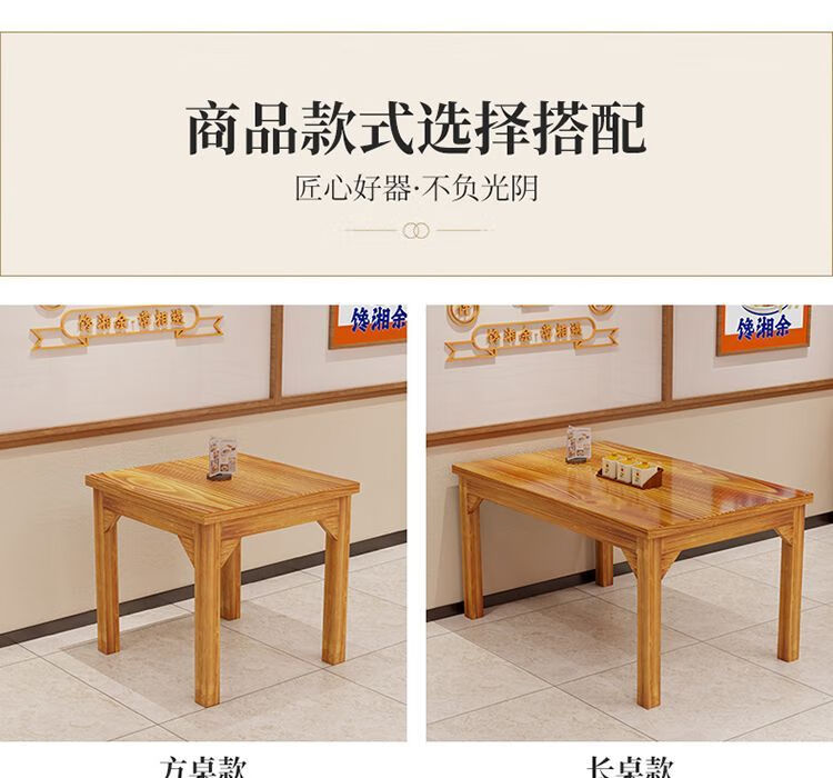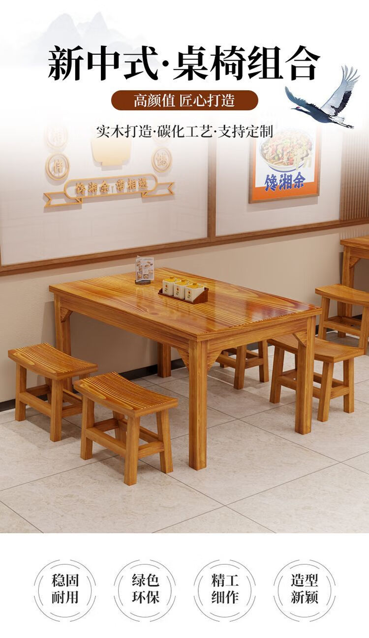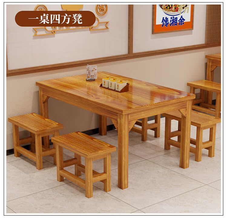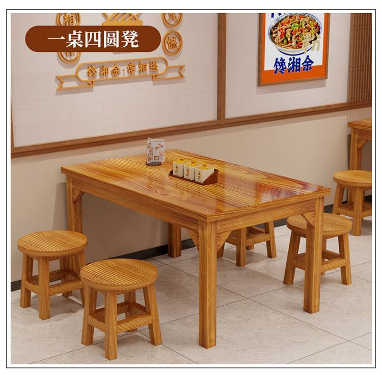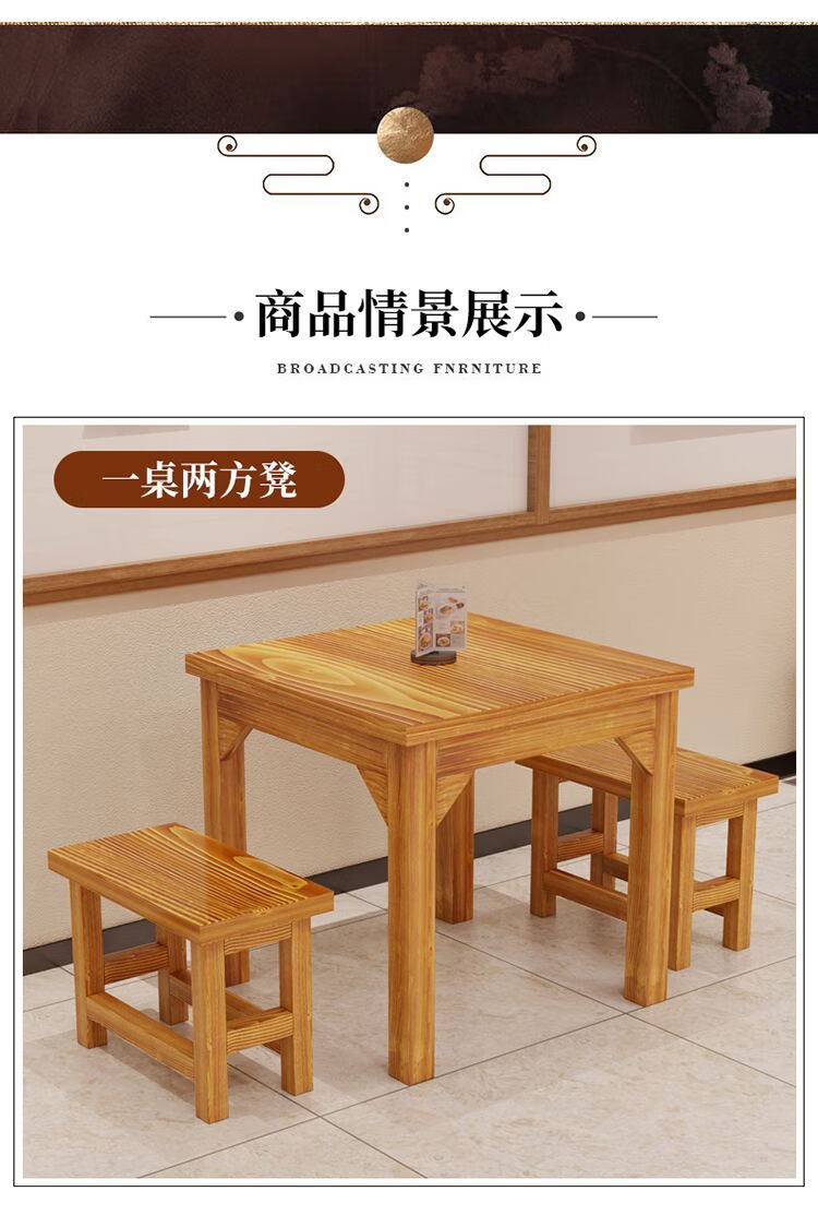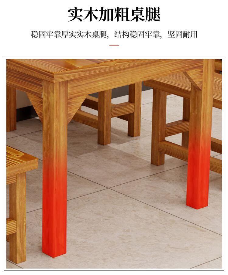 倘然之家碳化实木桌椅桌椅商用餐饮店烧烤面馆早餐餐馆食堂饭店餐厅组合 纯实木碳化【单桌】60x60x73cm