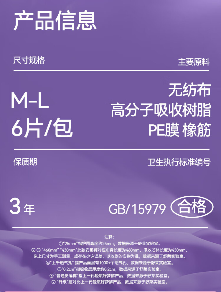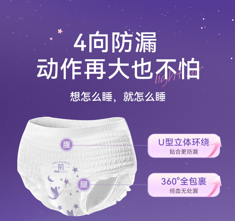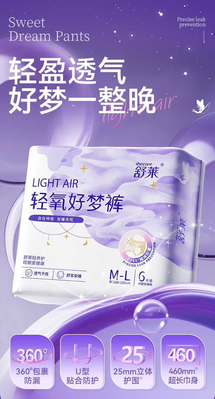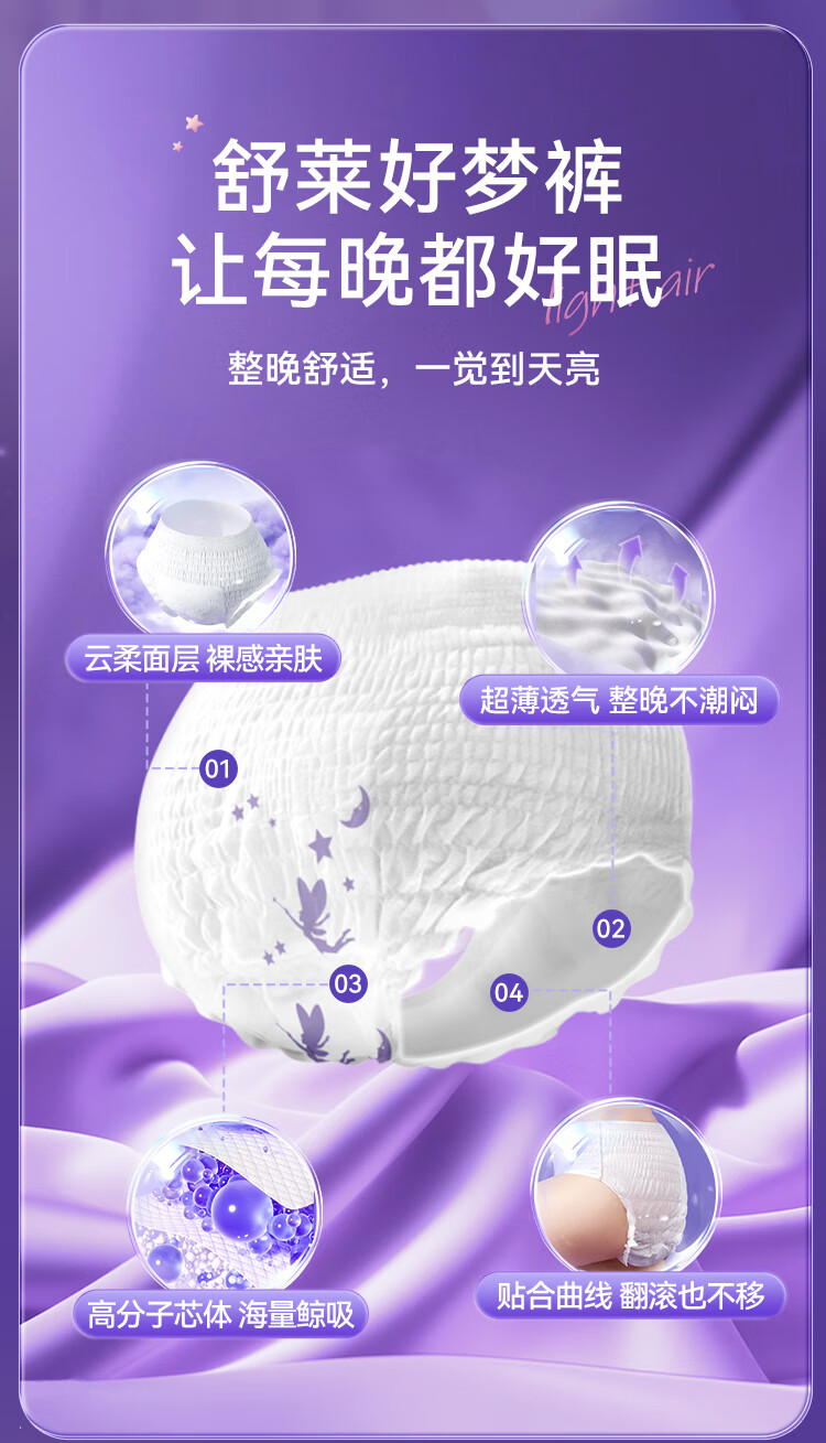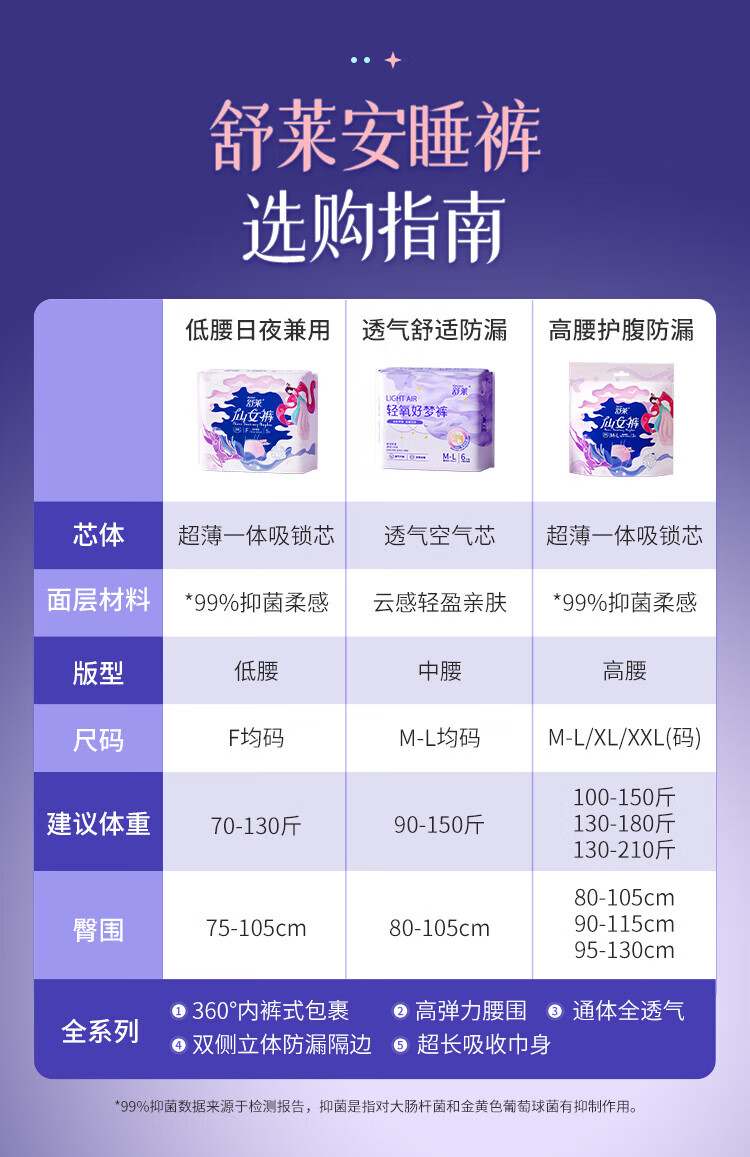 舒莱夜用裤型卫生巾透气瞬吸安睡裤超薄贴合防漏安心裤 M-L码 11片 80-130斤 (含赠)
