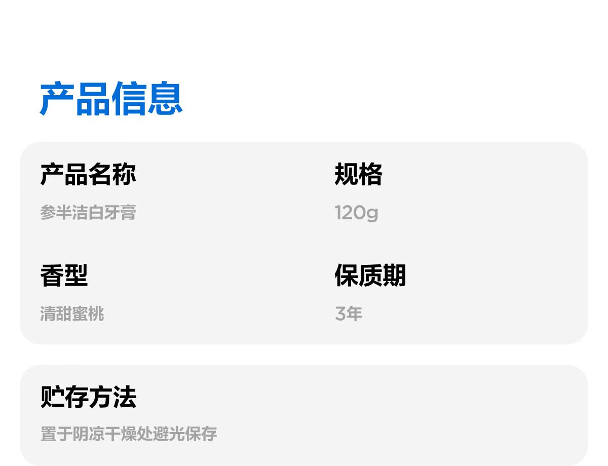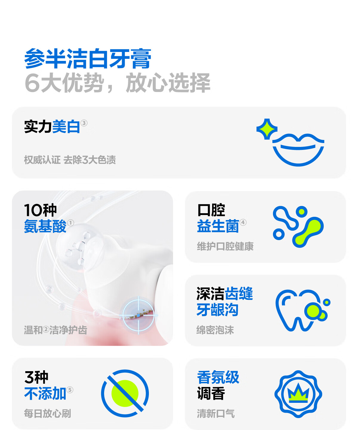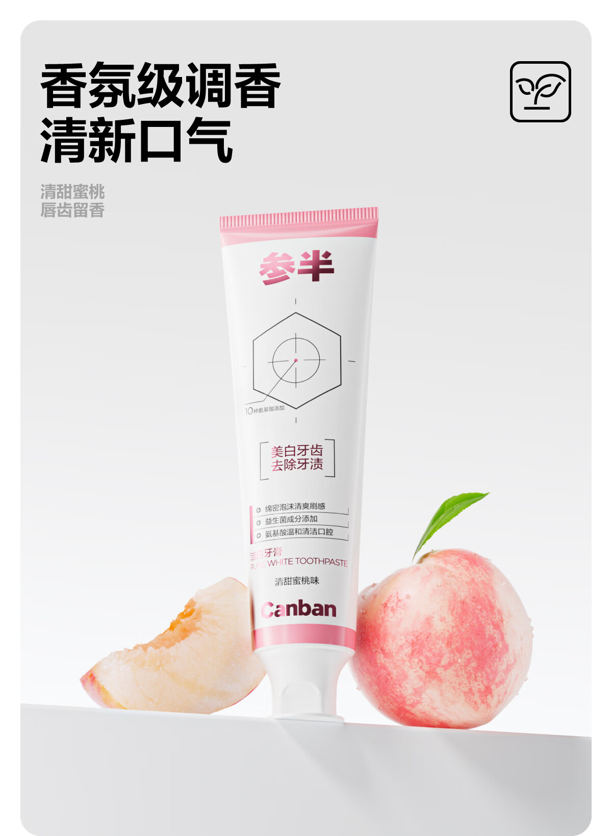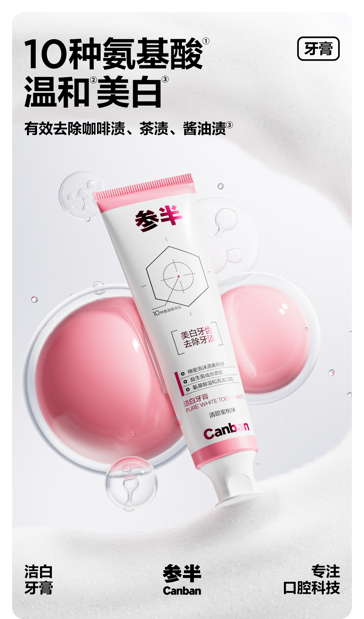 参半 洁白牙膏 氨基酸美白亮白去黄清新去渍防渍120g