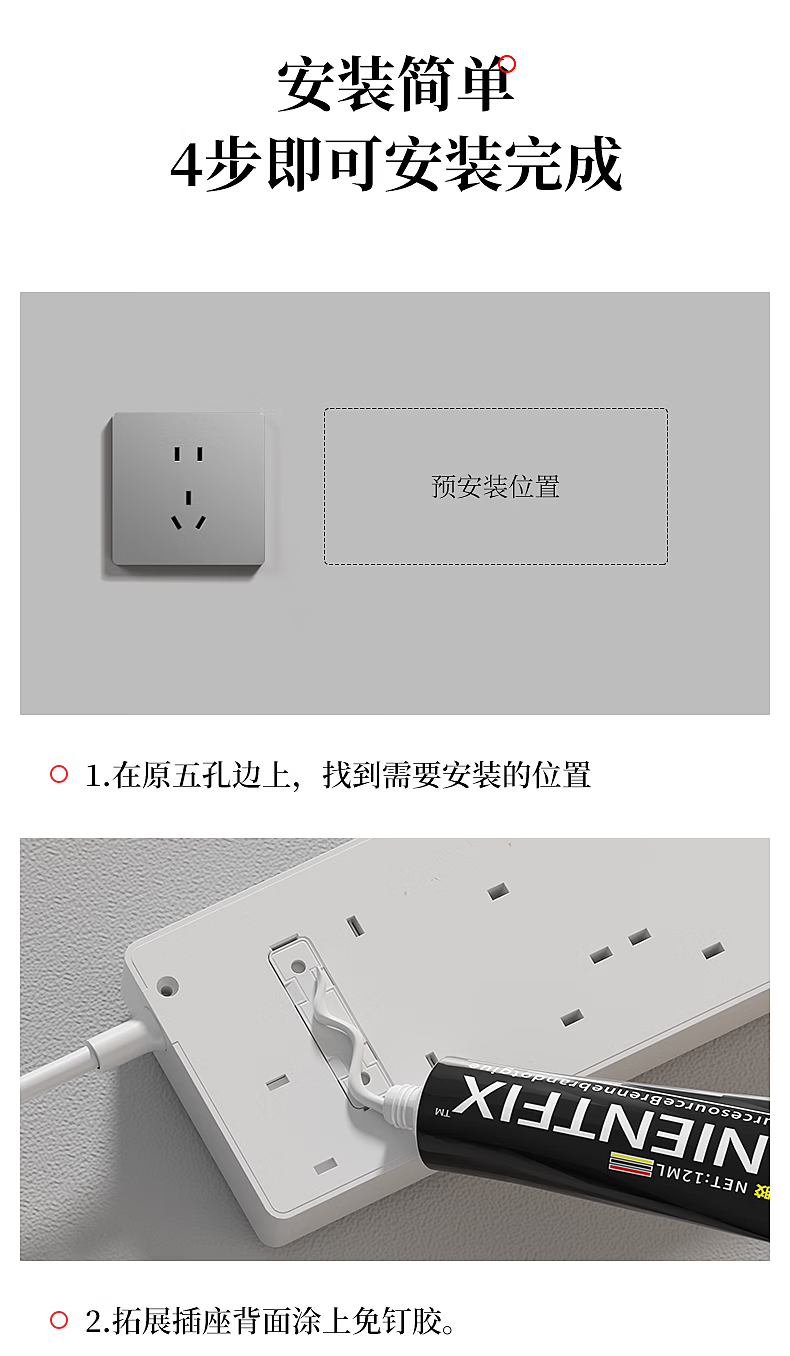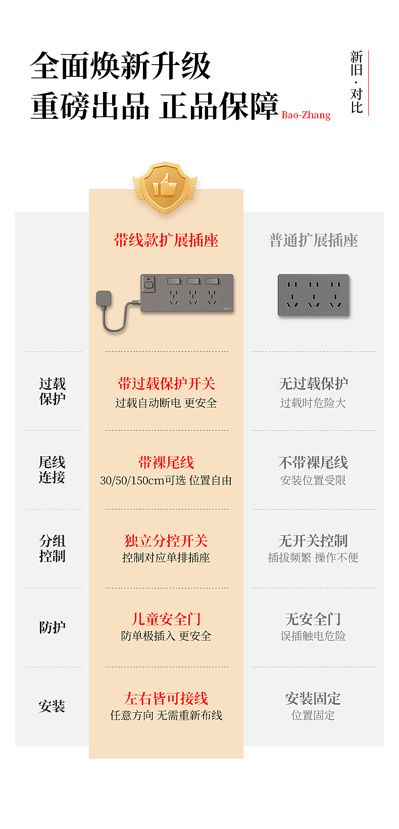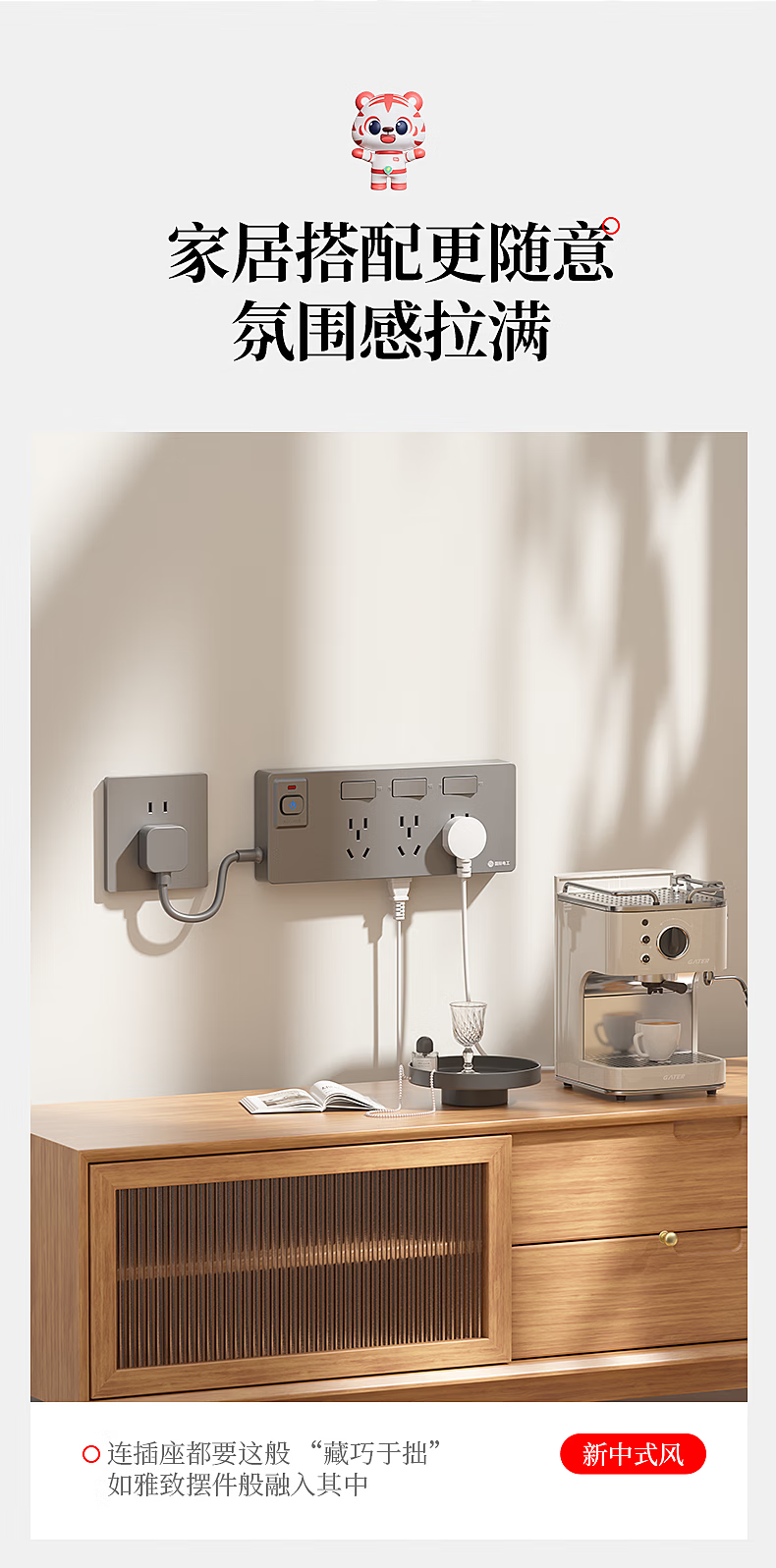 国际电工一转多带线过载保护扩展开关插座分控保护插板左右安装转换器插排 向右拓展三开30厘米21孔-(过载保护)白色 插座