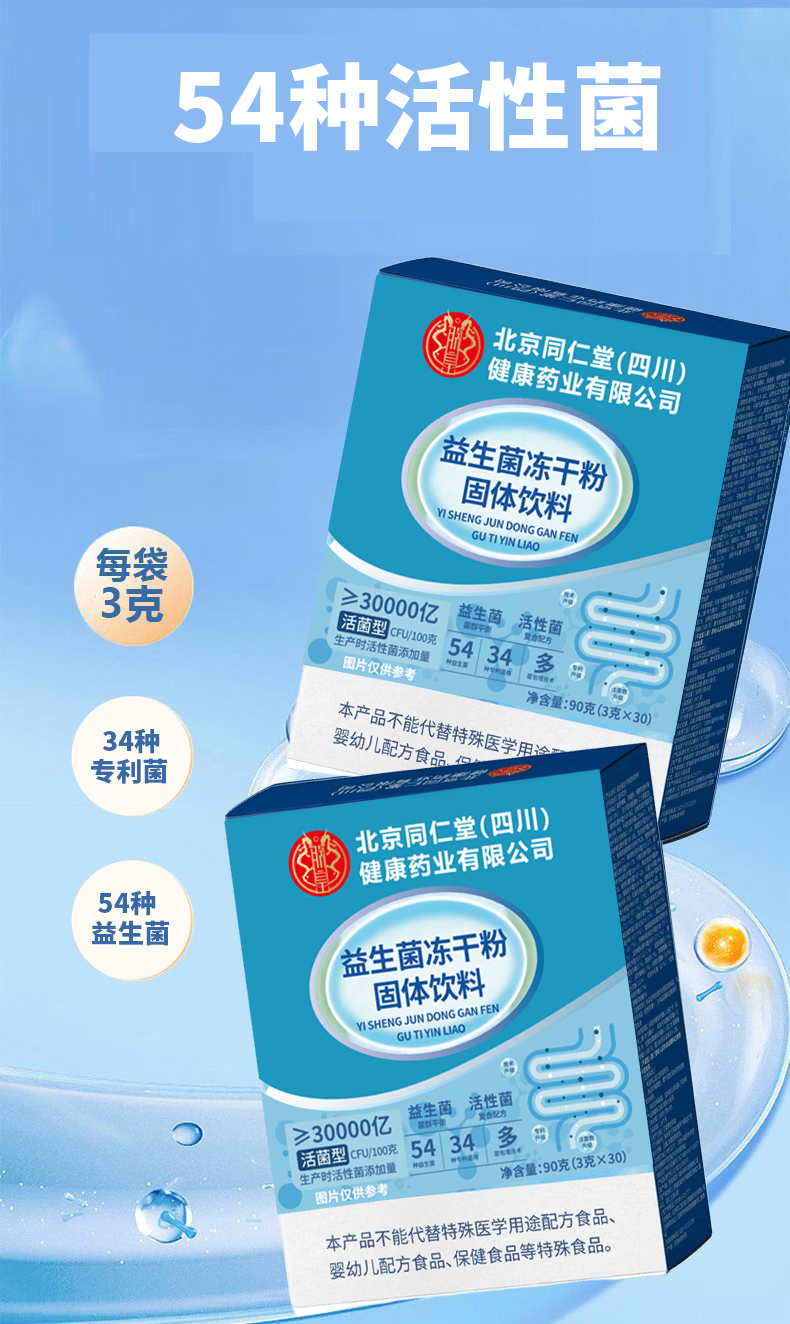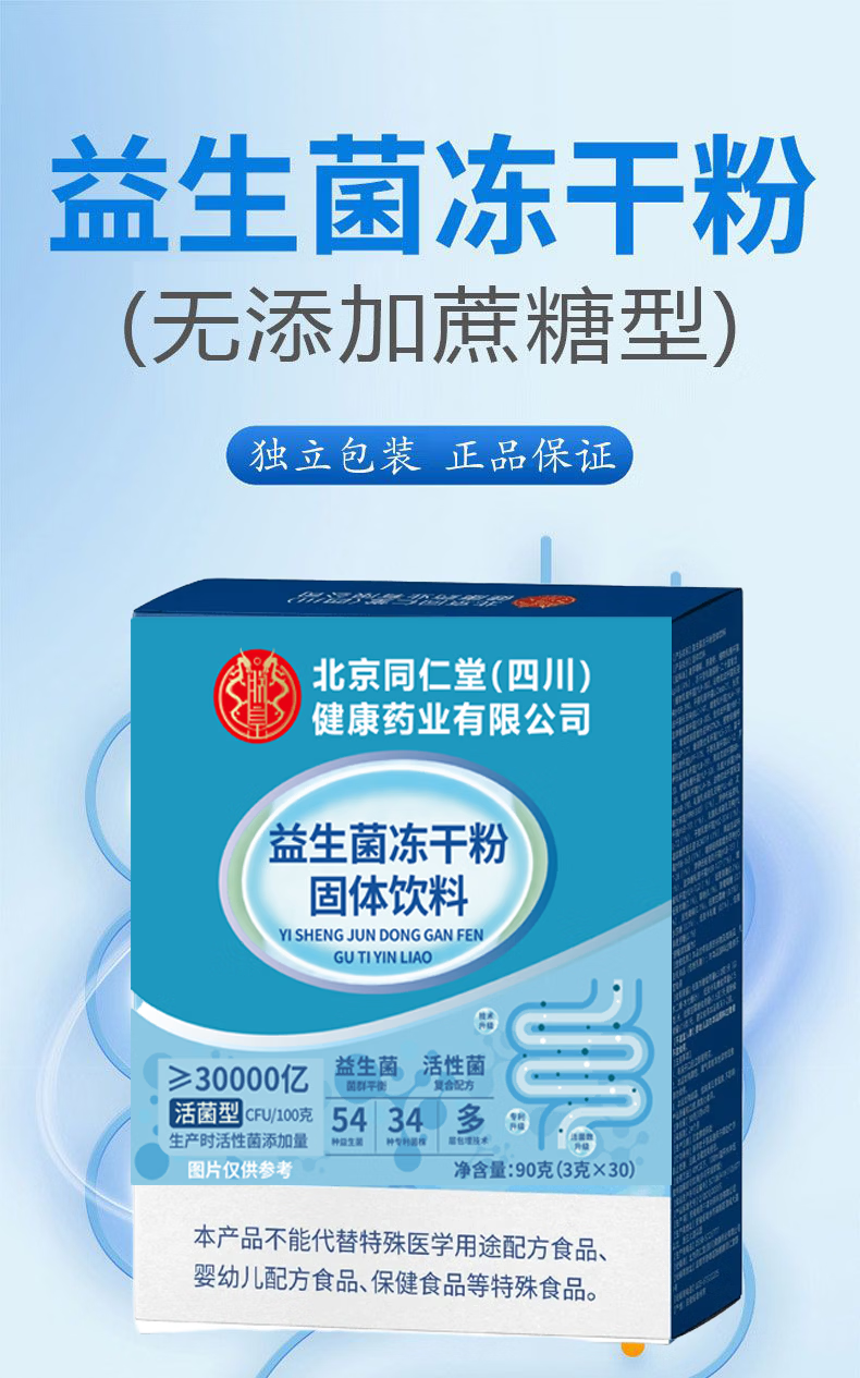 朕皇北京同仁堂益生菌冻干粉固体饮料0蔗糖调理肠胃消化不良便秘 【2盒分享装】 30袋*2盒
