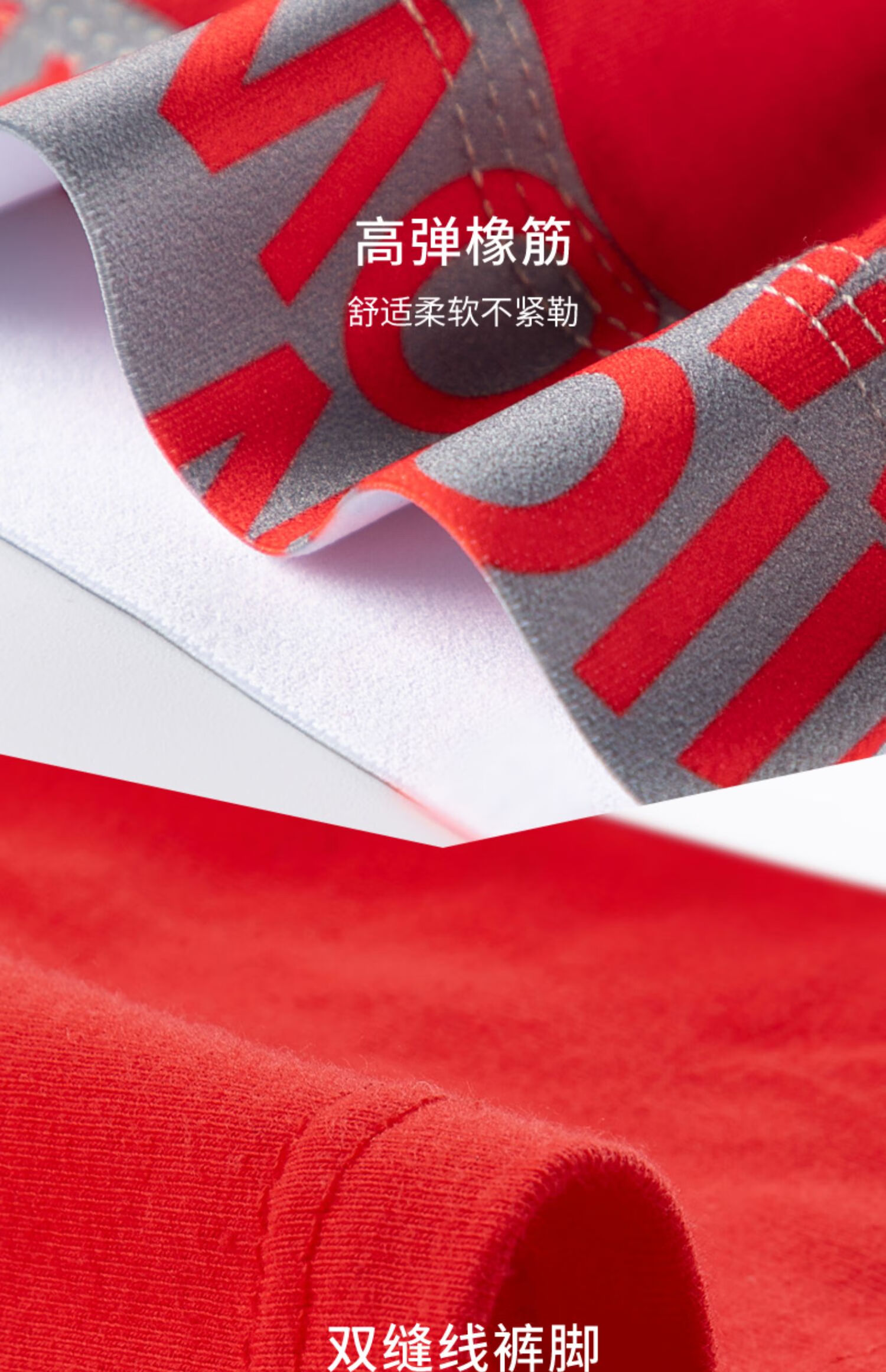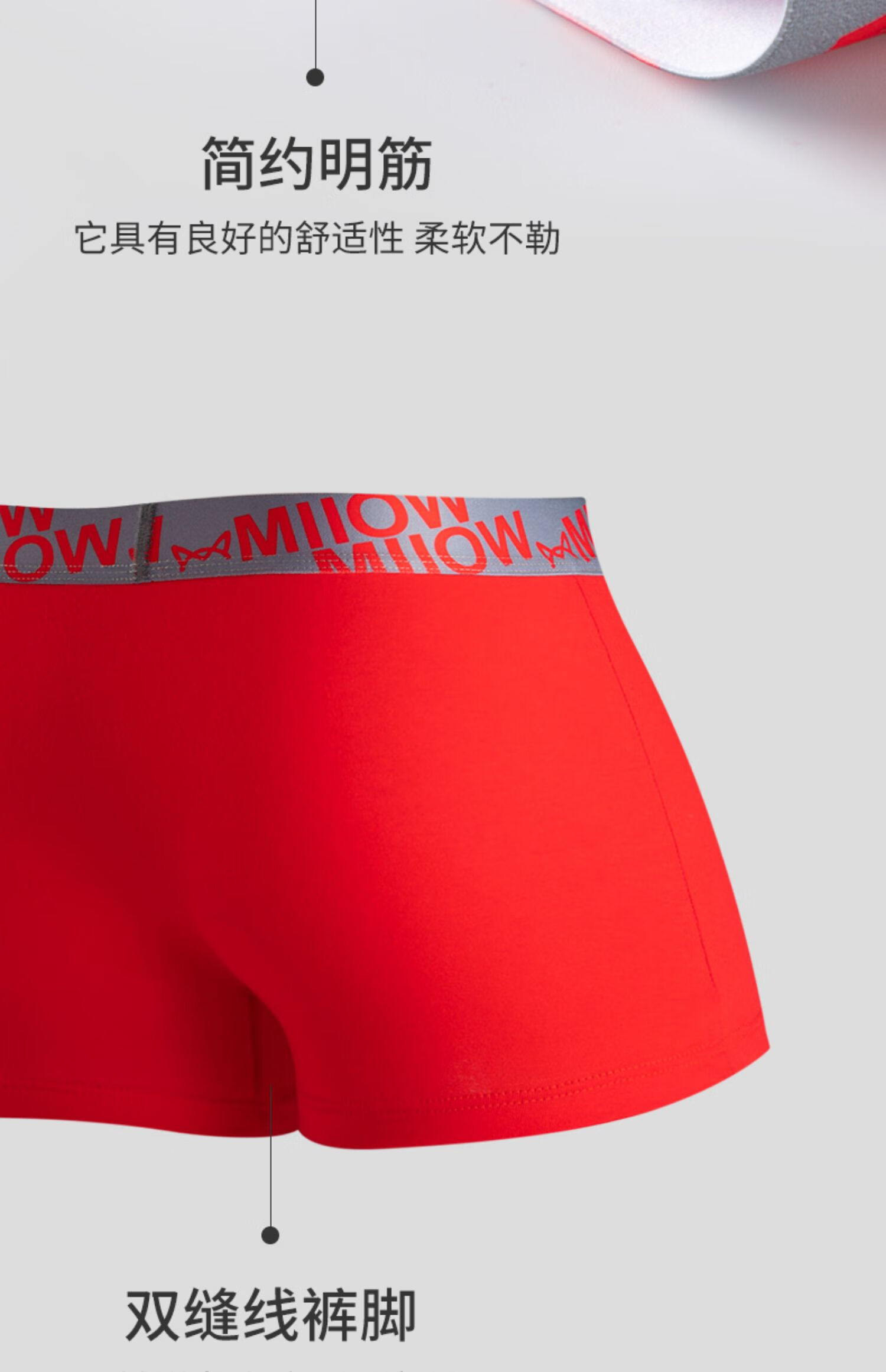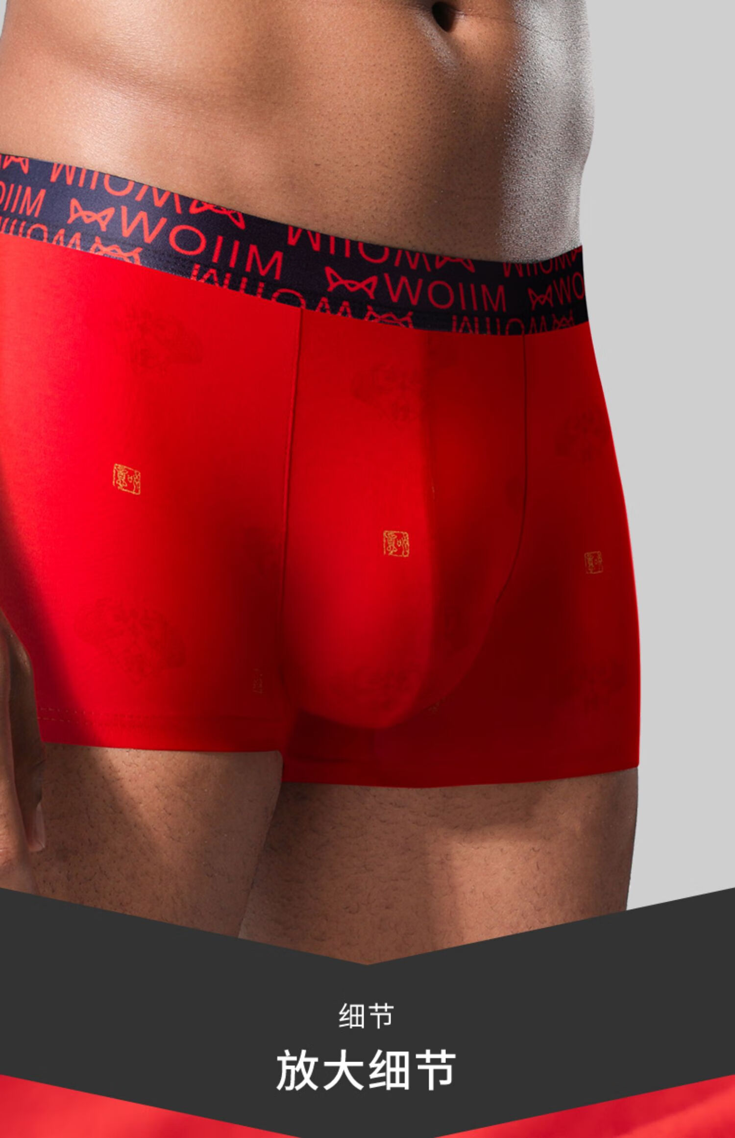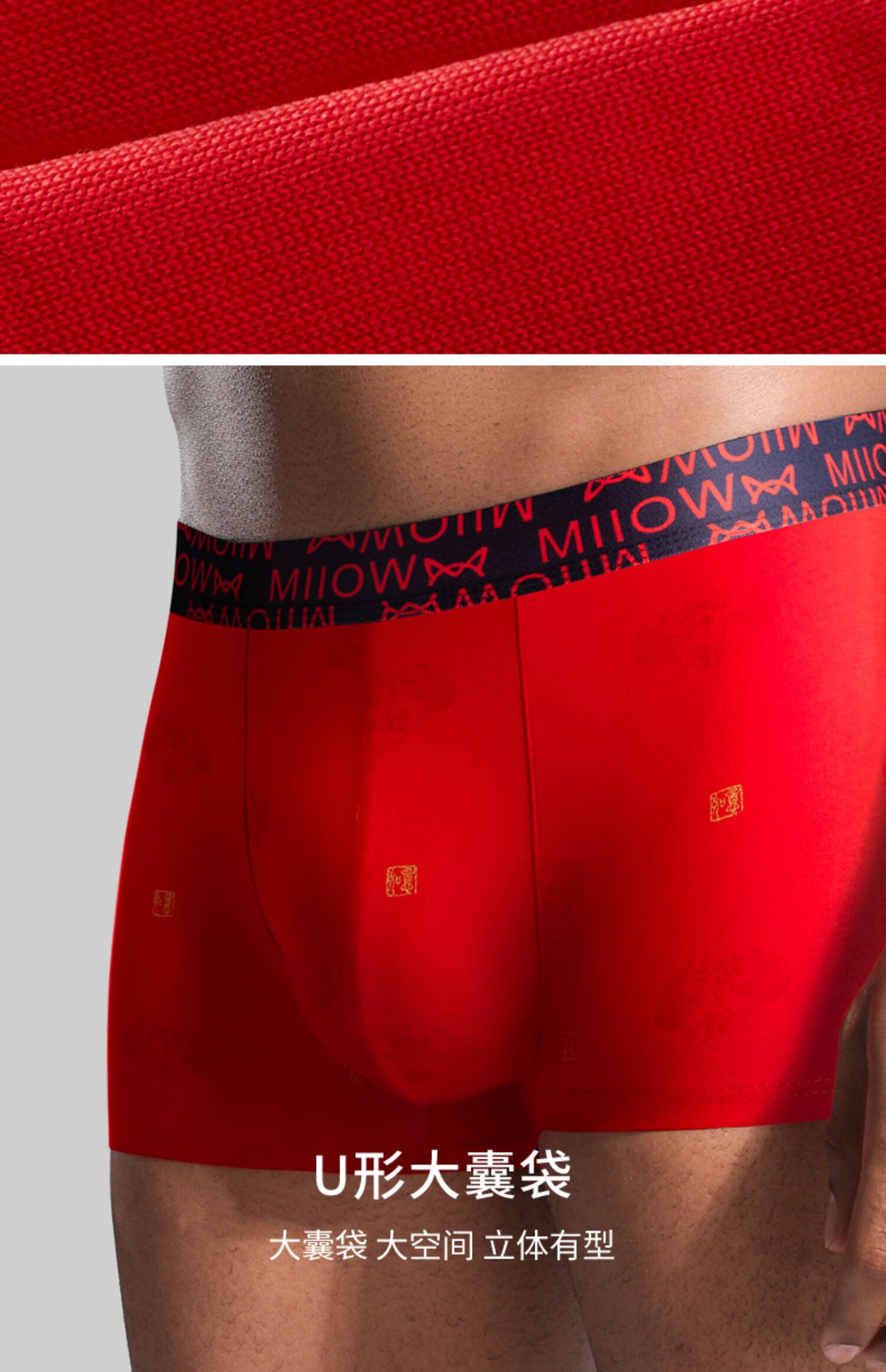 猫人(MiiOW)本命年男士内裤男生平角裤莼棉大红色结婚属蛇年男款四角短裤 【2条内裤】净色+印花 5XL 推荐【175-190】