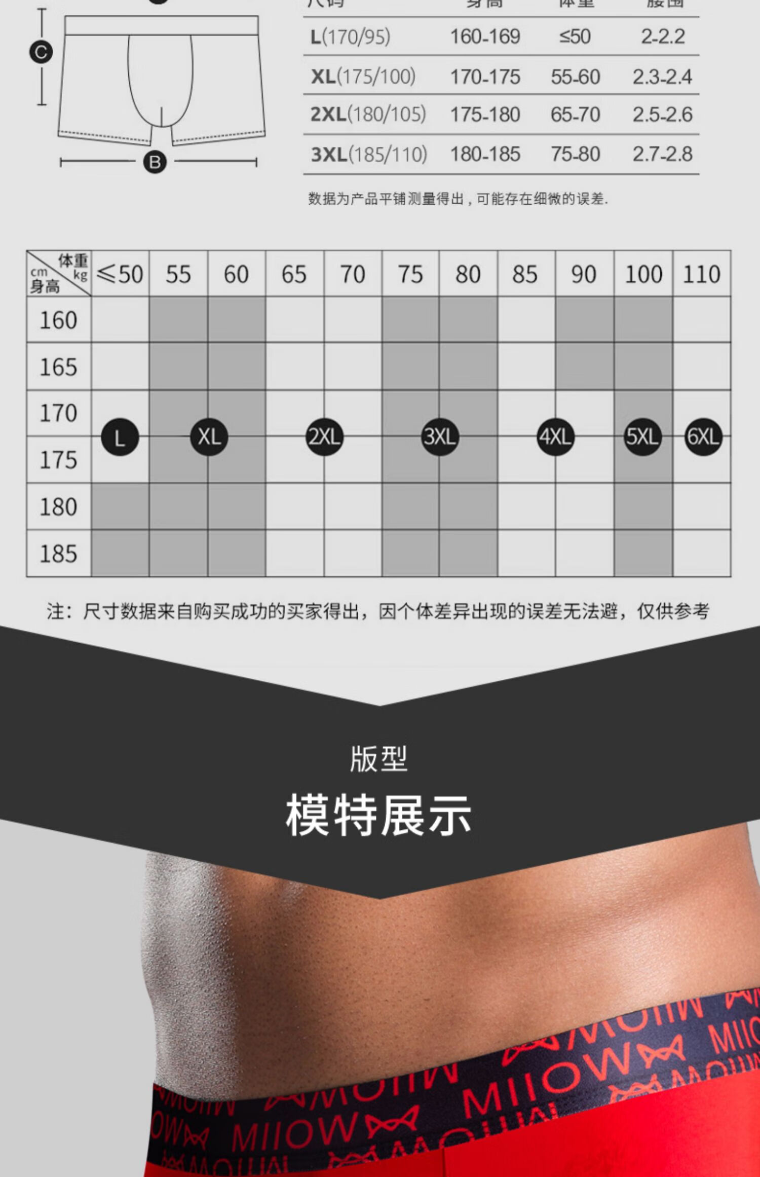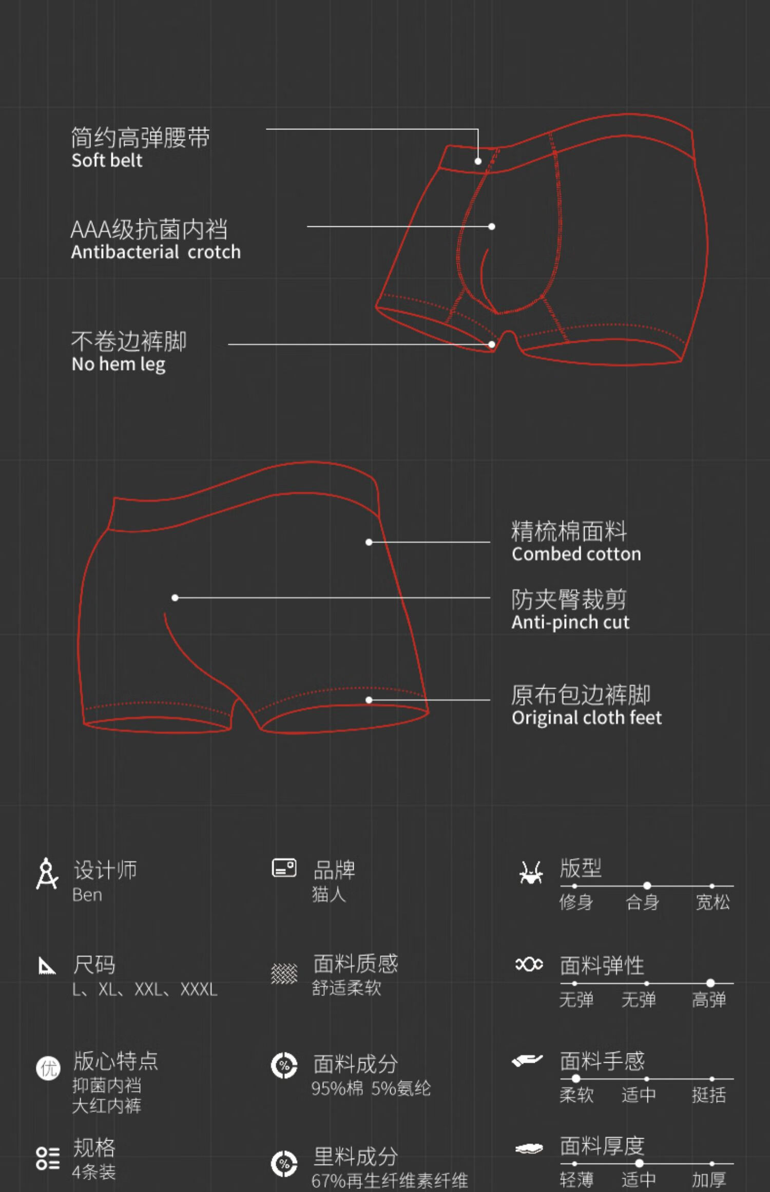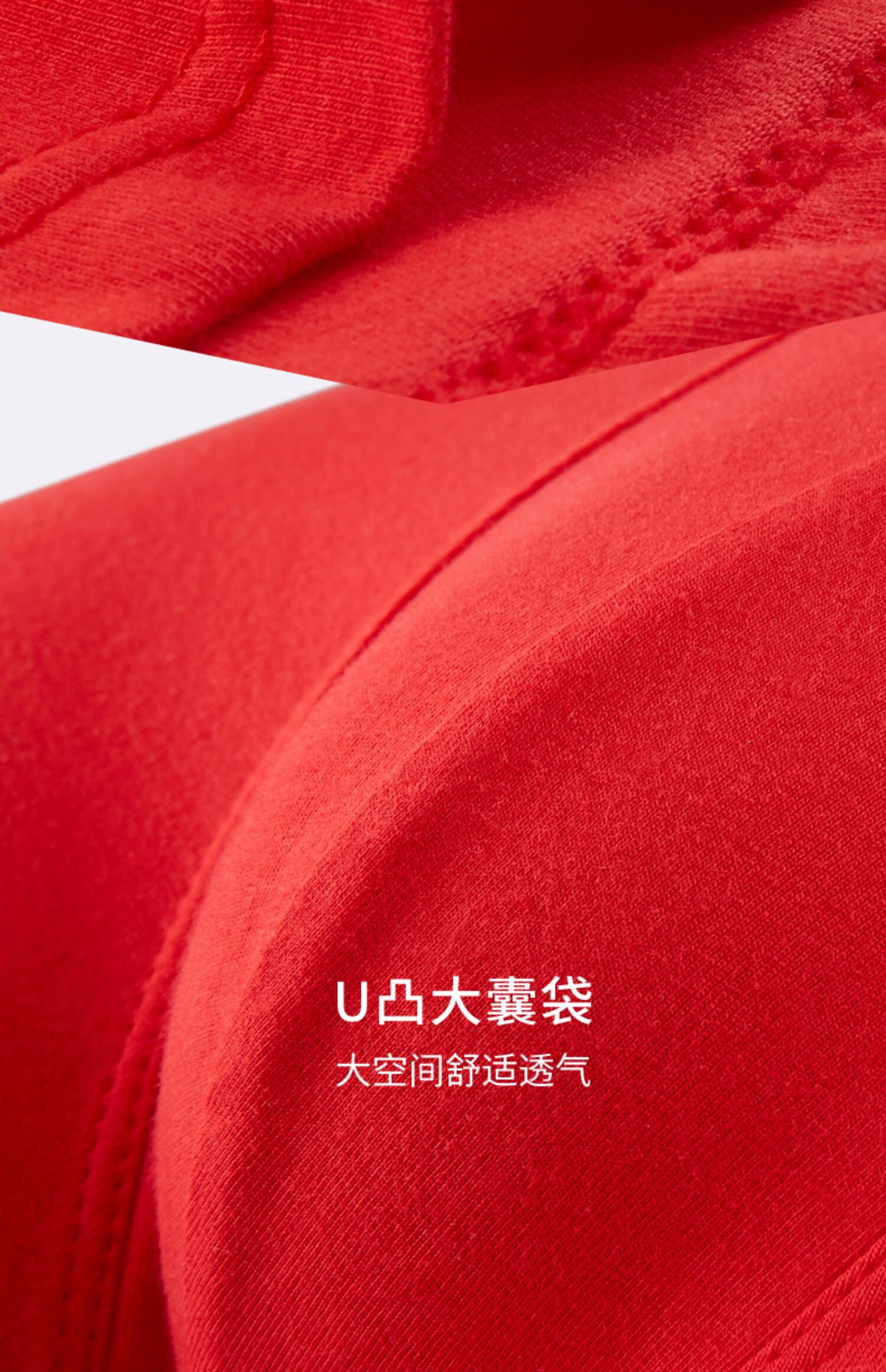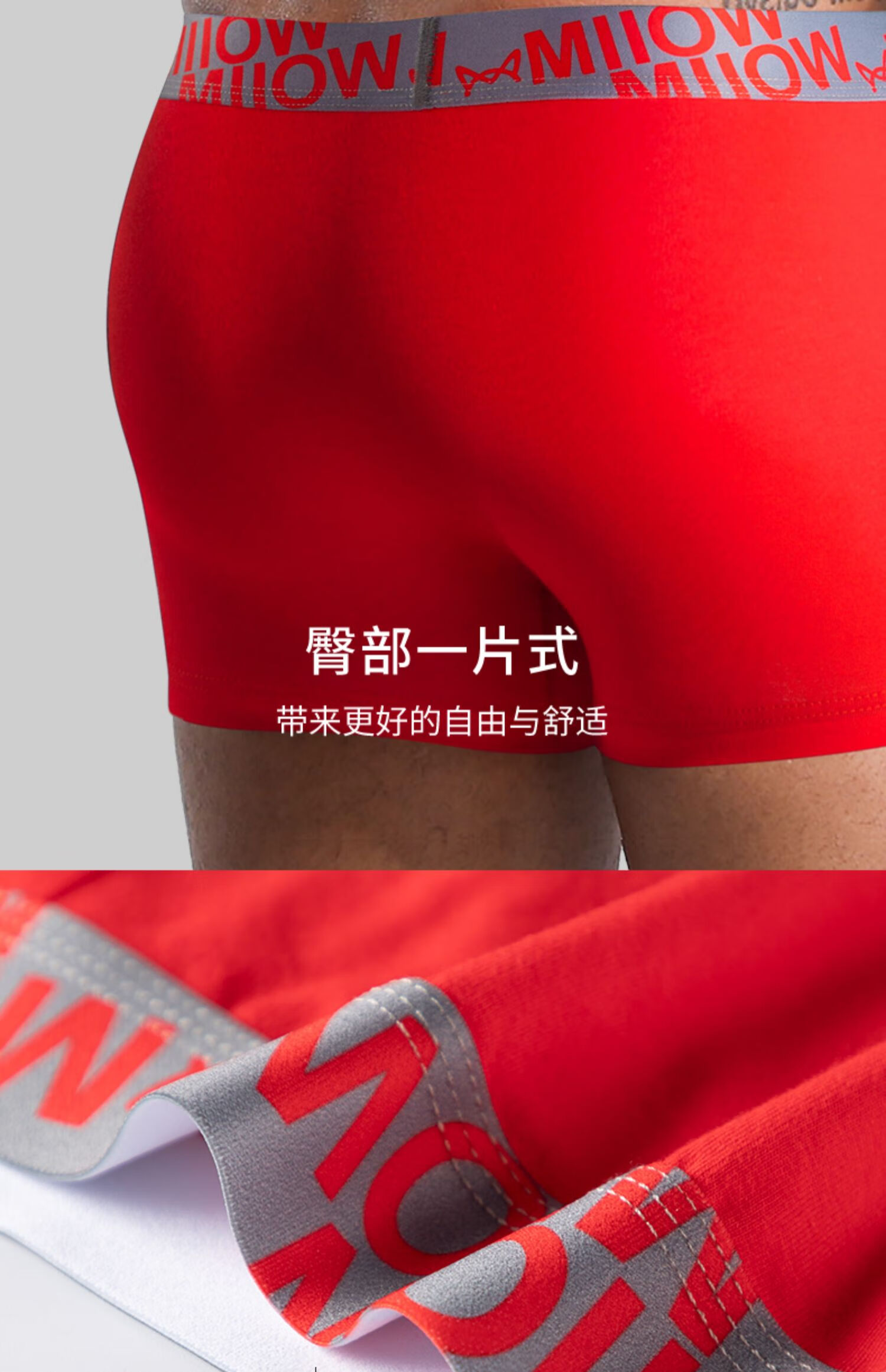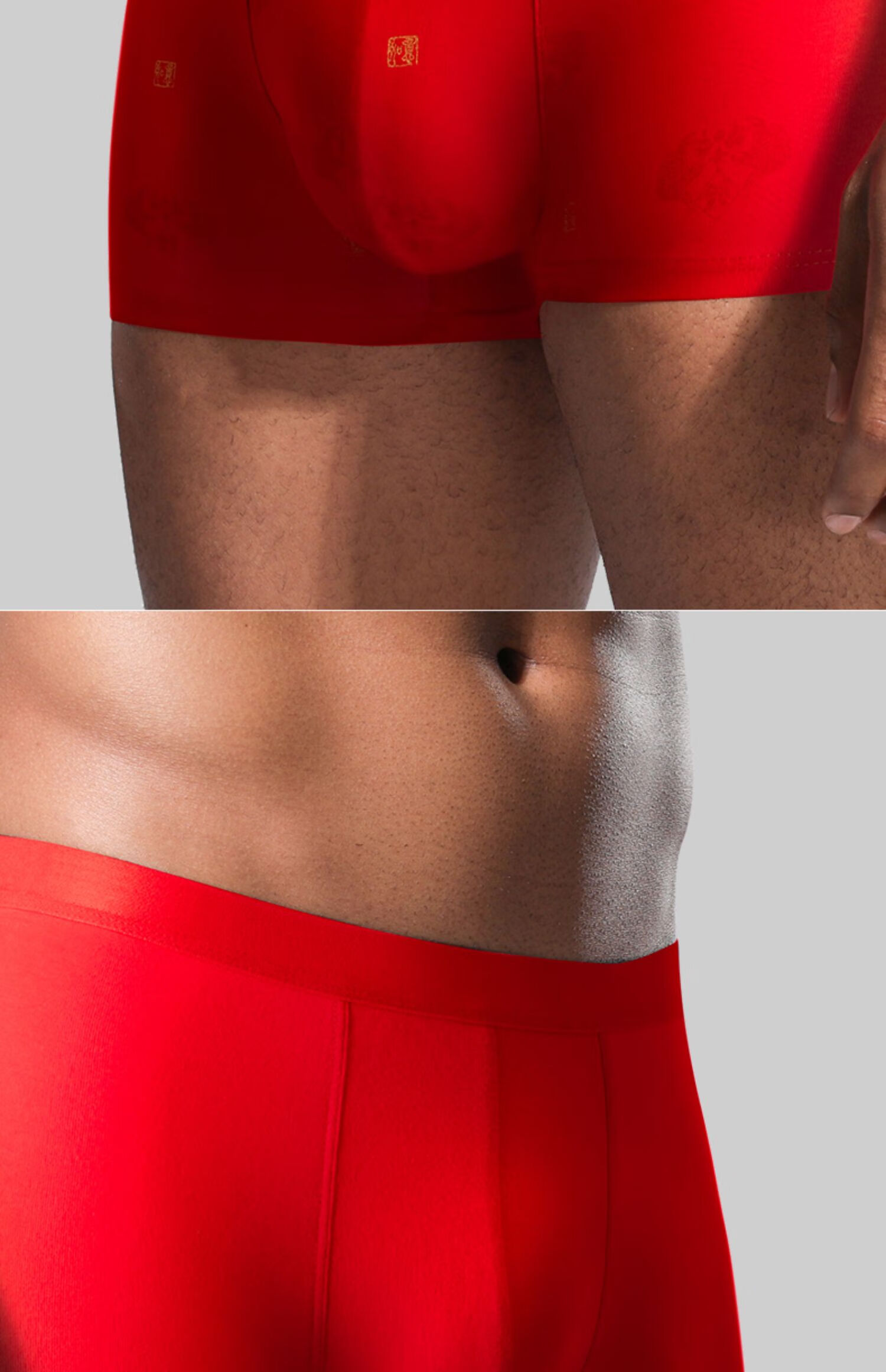 猫人(MiiOW)本命年男士内裤男生平角裤莼棉大红色结婚属蛇年男款四角短裤 【2条内裤】净色+印花 5XL 推荐【175-190】