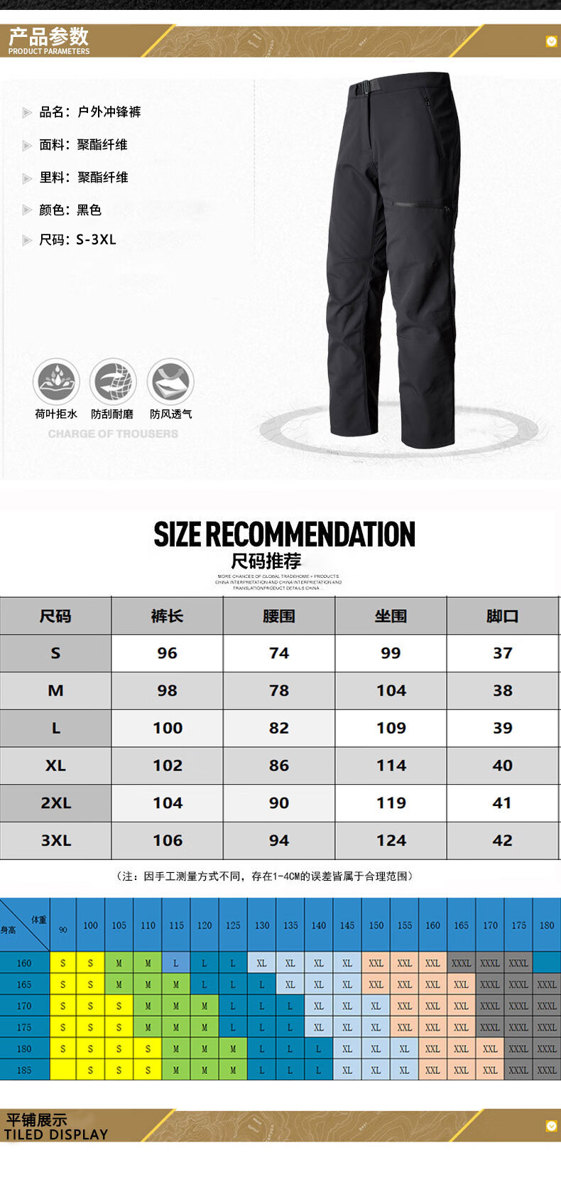JACK WOKEKNSN狼爪云户外冲锋裤男士2025秋冬新款男防水防刮耐磨登山裤大码加厚 黑色(加绒) XL