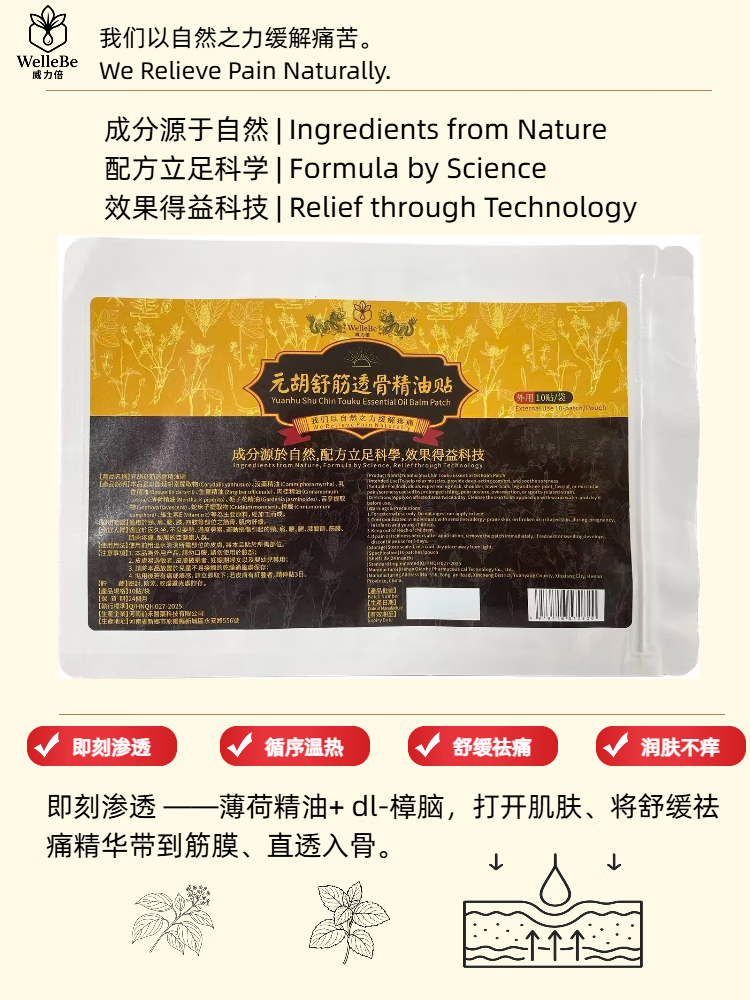 威力倍 WELLEBE威力倍元胡祛痛镇痛精油贴膏药港香兰同款不过敏腰痛腿痛手腕痛 黄色