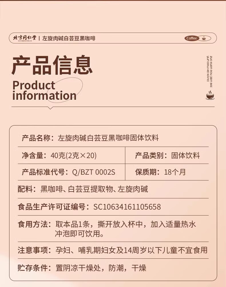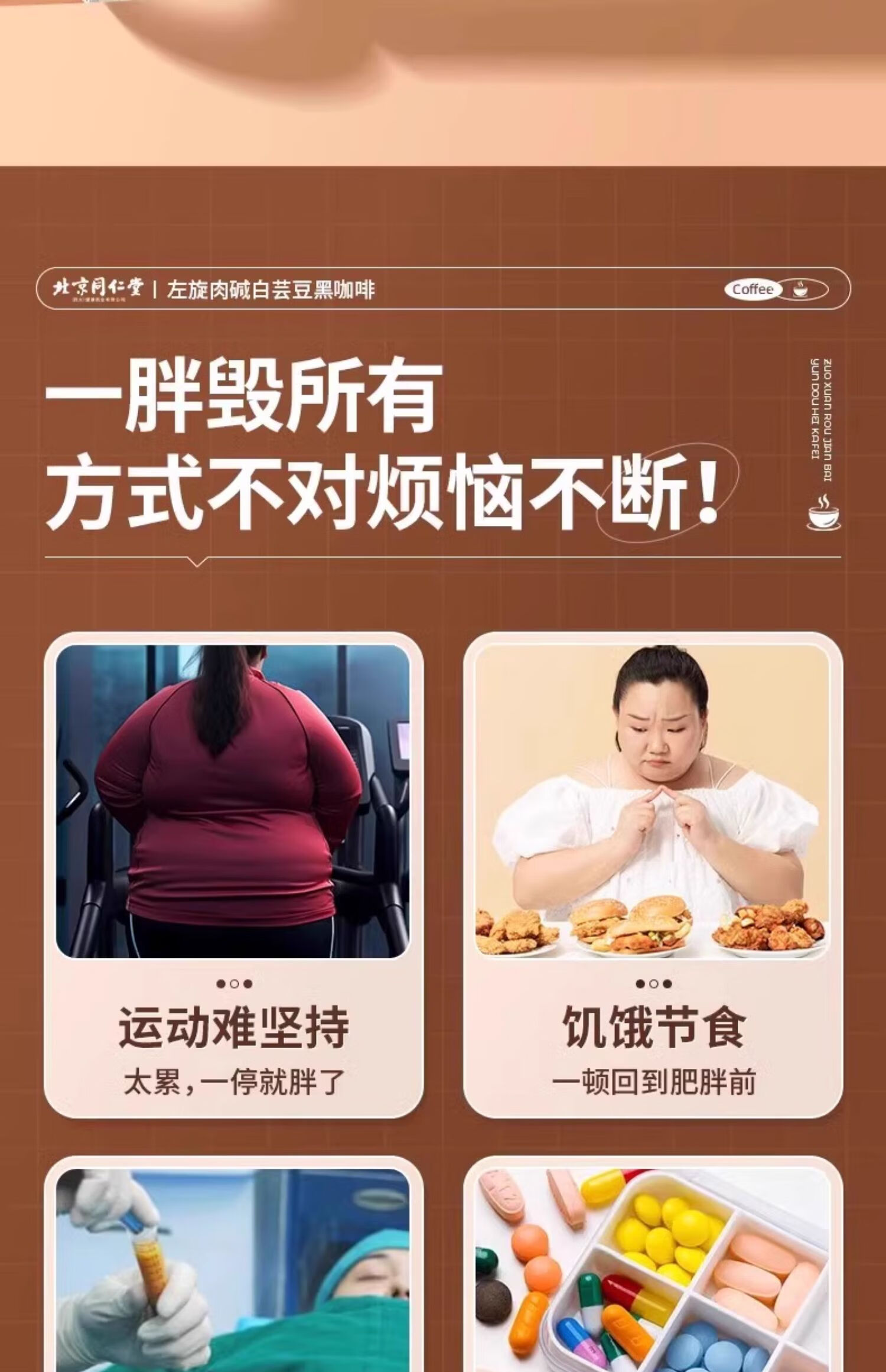 同仁堂(TRT)左旋肉碱黑咖啡无糖0脂减肥提高代谢正品官方减脂减肥专用咖啡 9盒买5送4【6维度控体·巩固装】