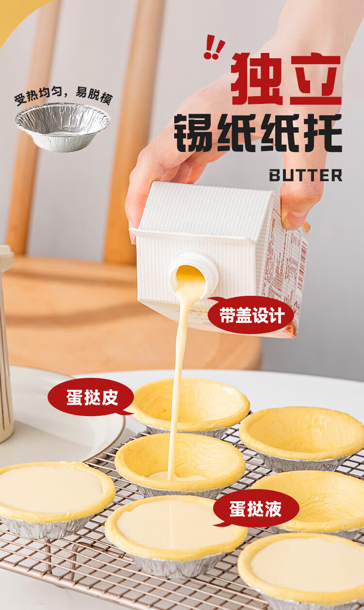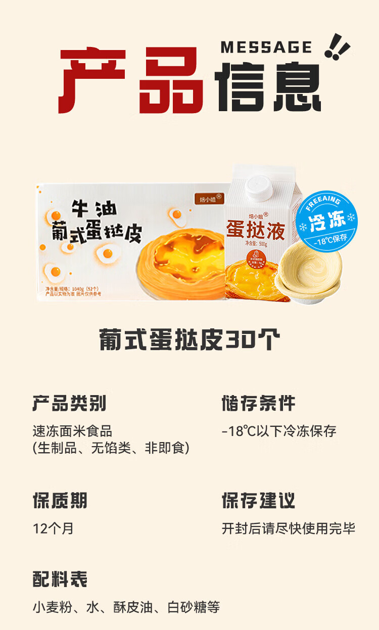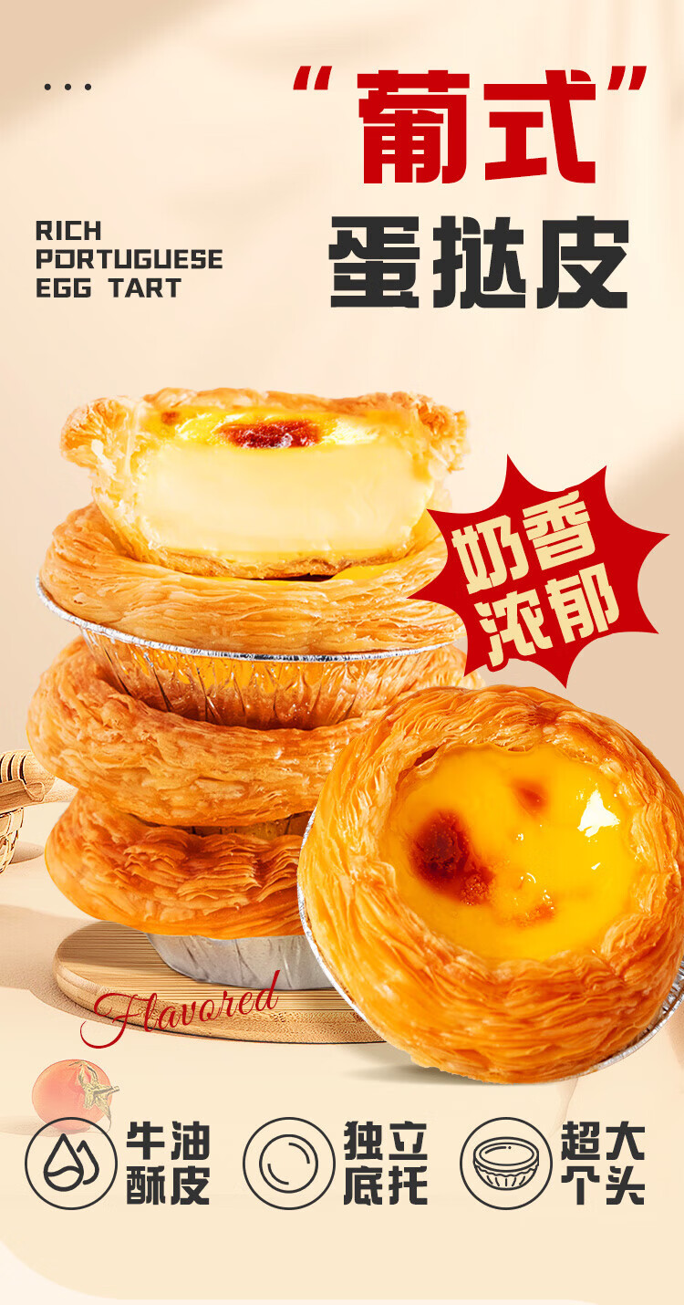 焙小姐葡式蛋挞皮蛋挞液套餐儿童家用烘焙烤箱空气炸锅半成品官方组合 【尝鲜装】大号蛋挞皮30个*1盒