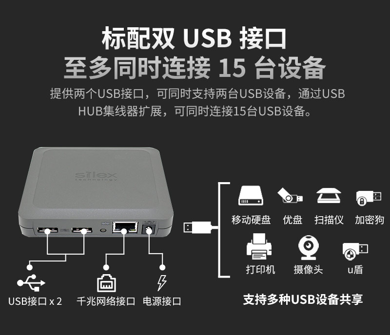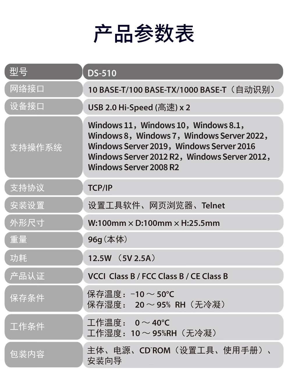 希来凯思技术(Silex Technology)DS-510 千兆有线网络USB设备服务器 打印共享服务器WiFi无线支持多设备品牌最高可连接15台设备 DS-510(千兆网卡)
