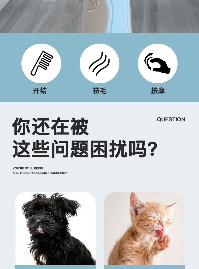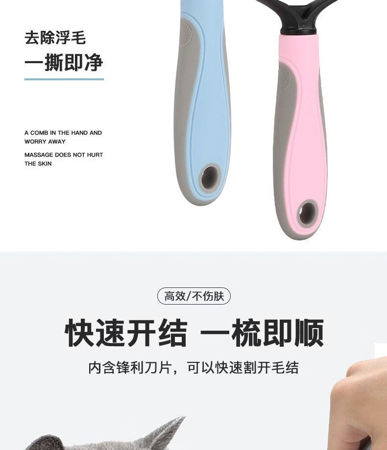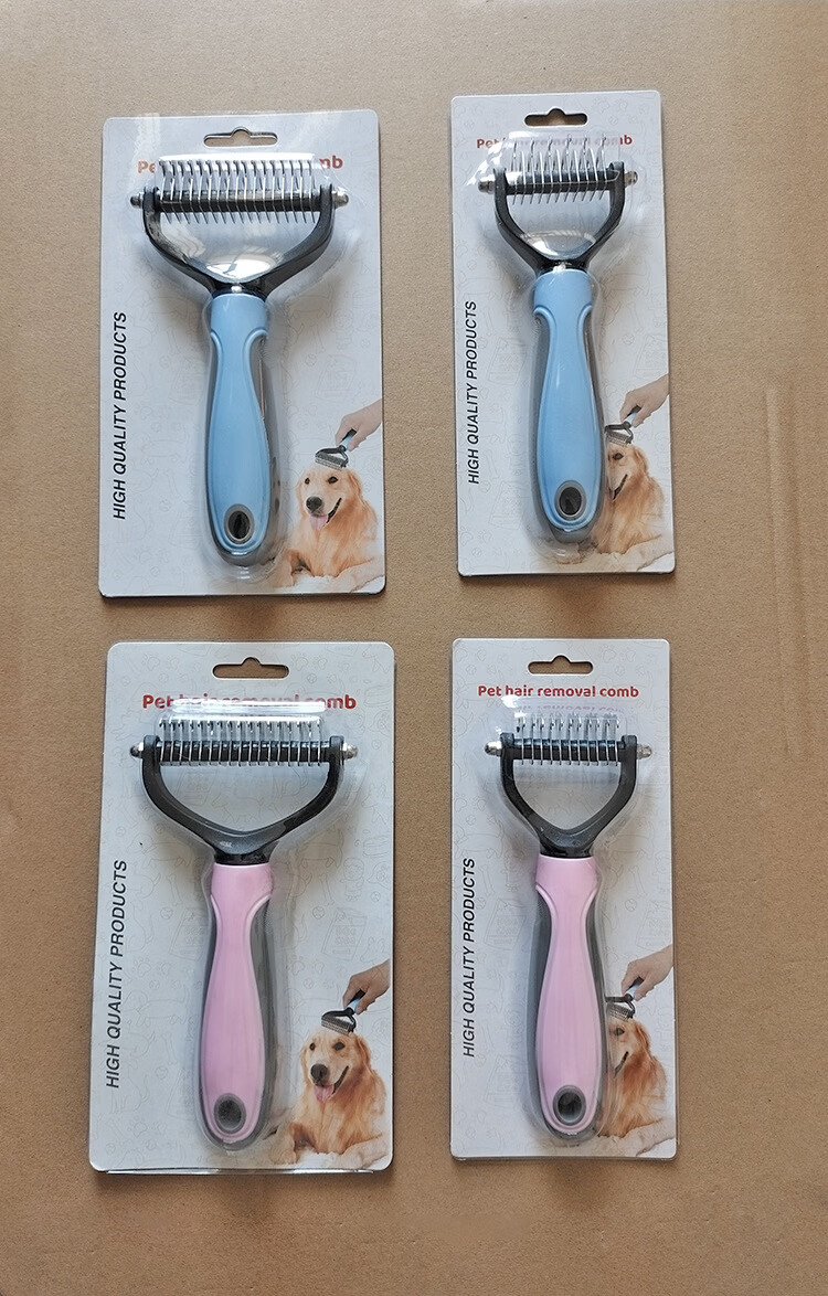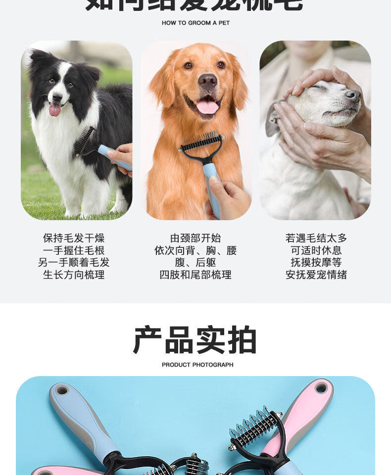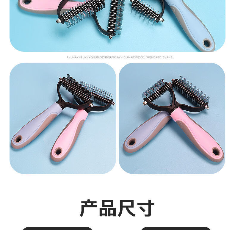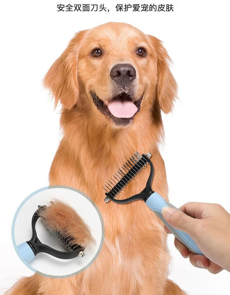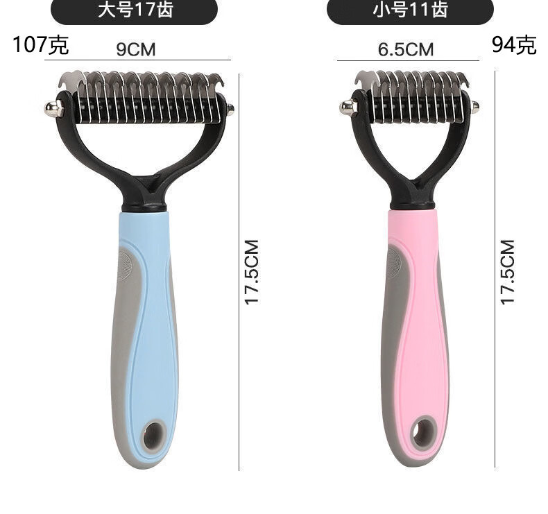 宠物梳子 不锈钢双面开结耙梳猫狗梳子清洁美容脱毛梳宠物开结梳 蓝色大号 OPP袋装