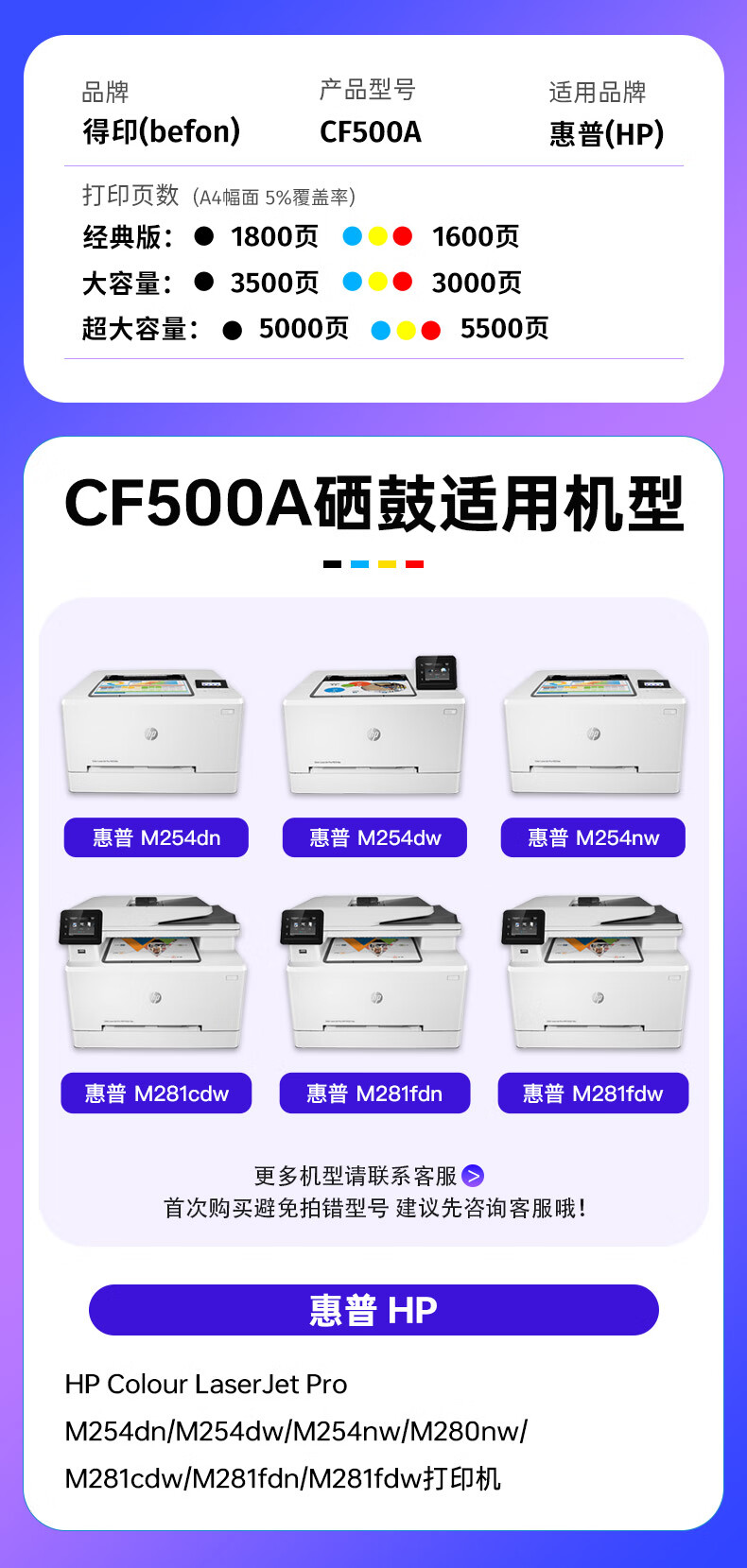 得印cf500a硒鼓适用惠普m281fdw硒鼓 m254dw m254nw m280nw m281fdn打印机墨盒带芯片黑色202a硒鼓