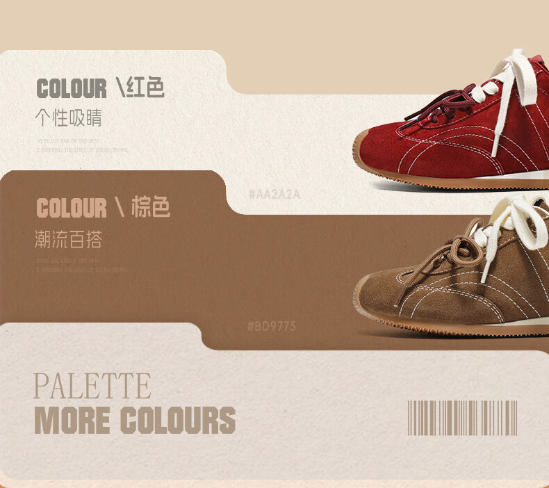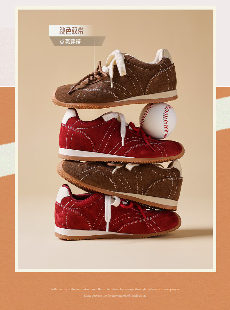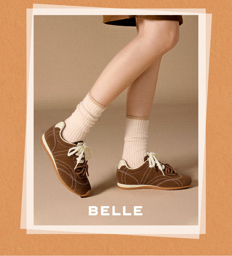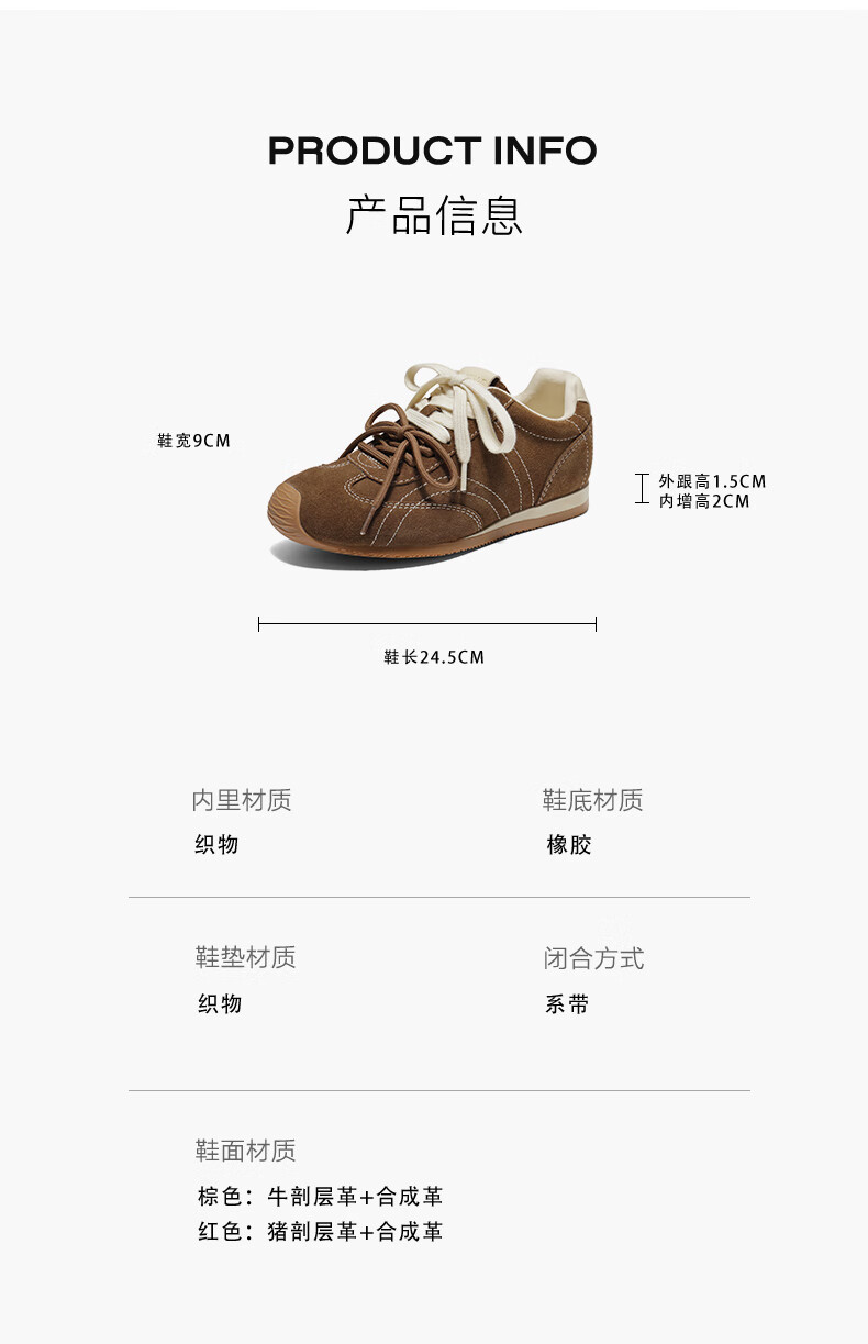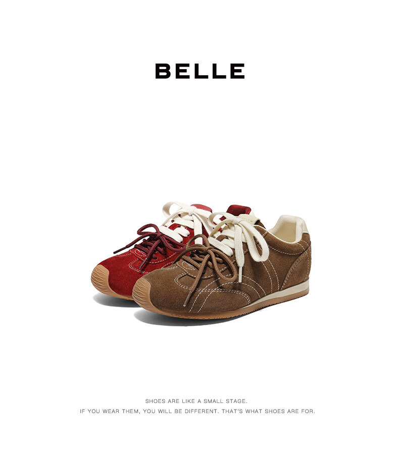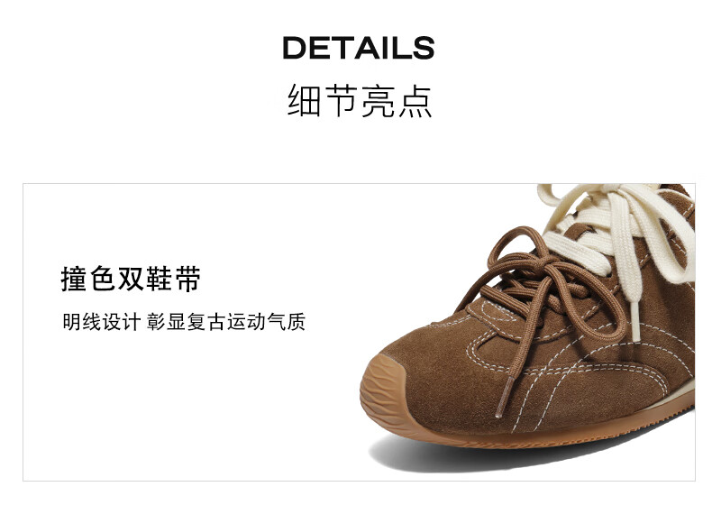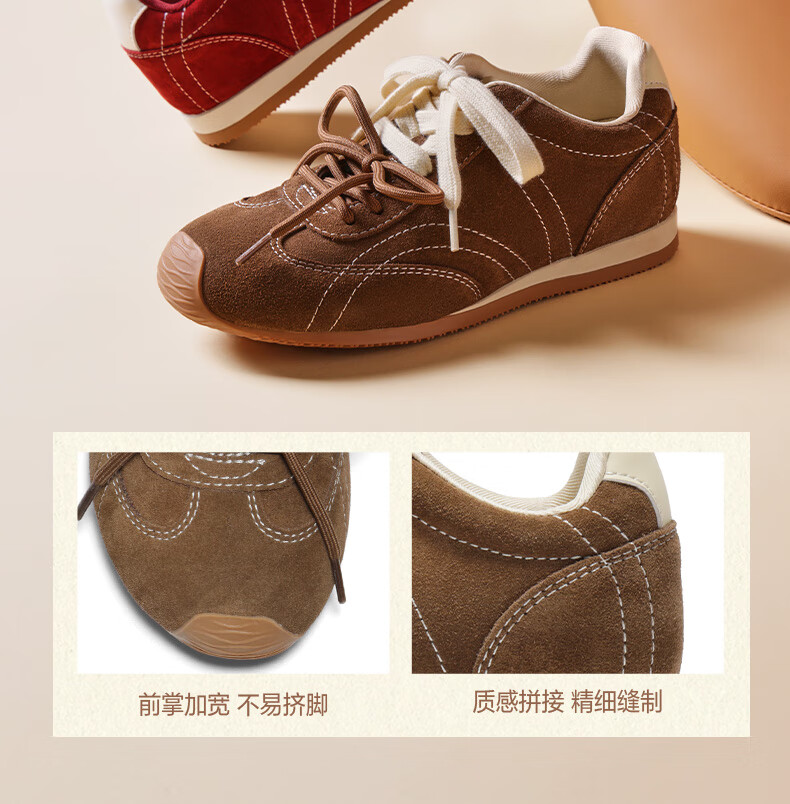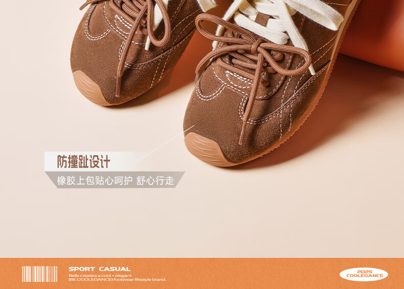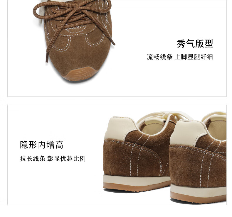 百丽酥心糖女鞋复古歪头德训阿甘鞋25新款运动休闲鞋JD011CM5 棕色 37
