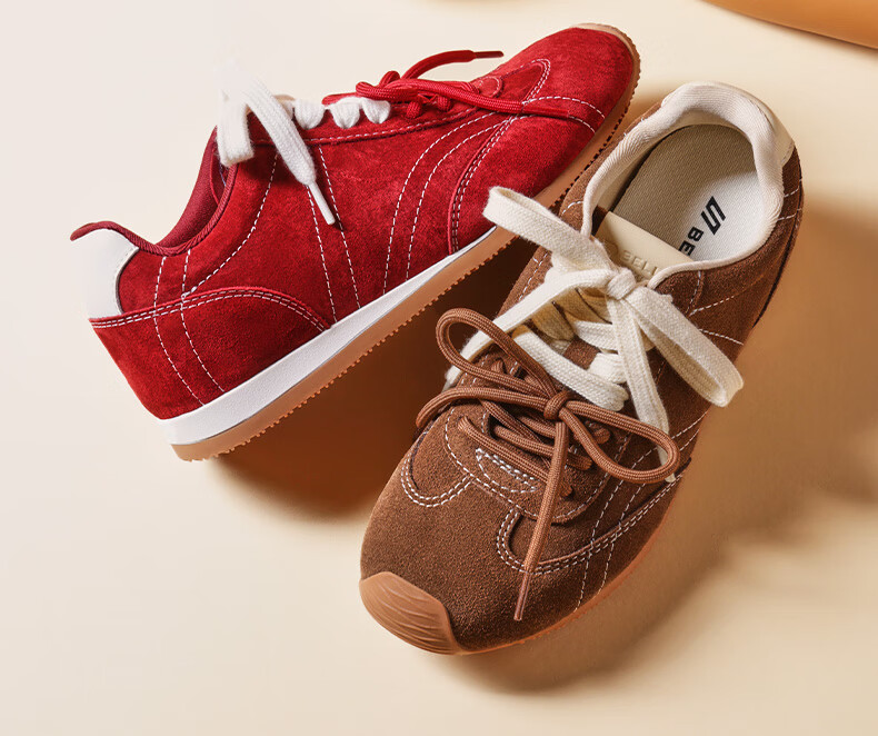 百丽(Belle)周雨彤董璇同款女彩虹豆德训鞋跑道阿甘鞋加绒休闲鞋D5R2DAM6 红色 38