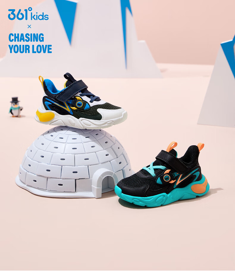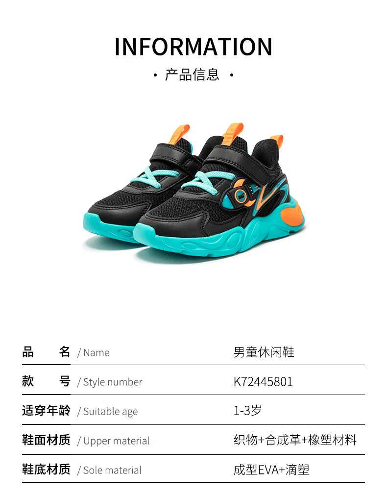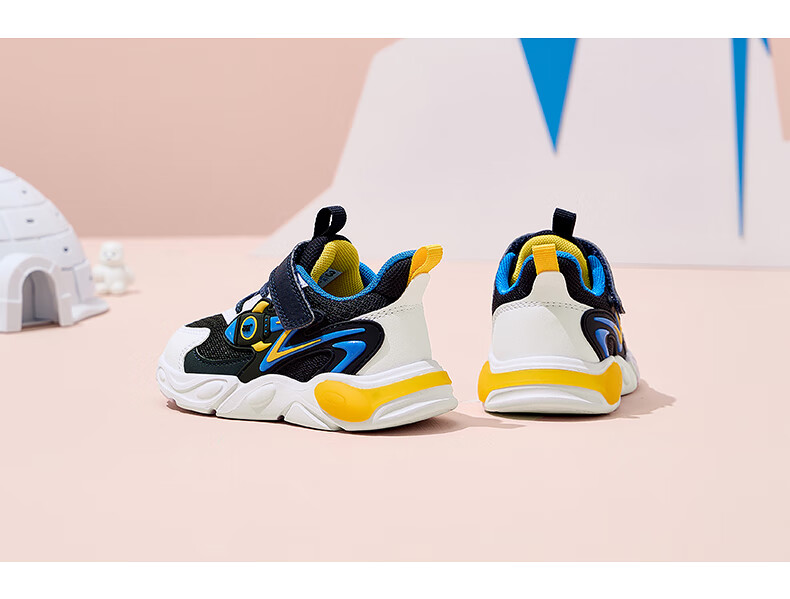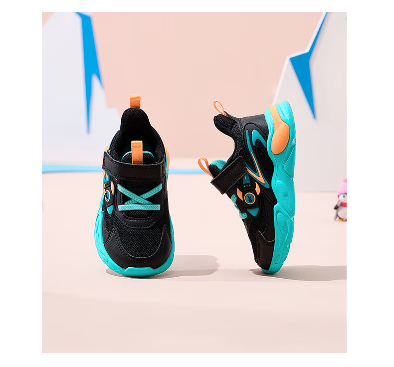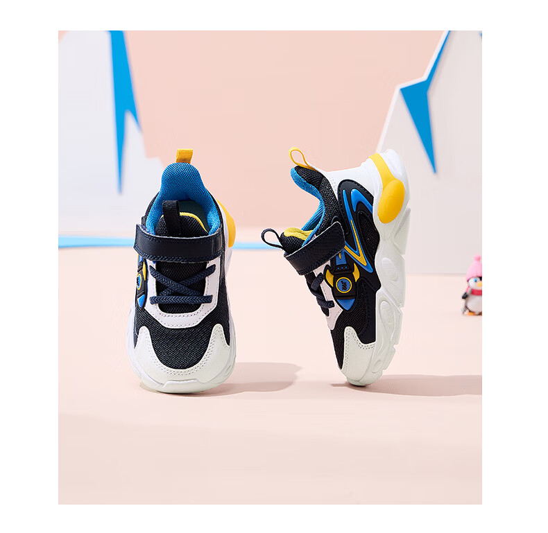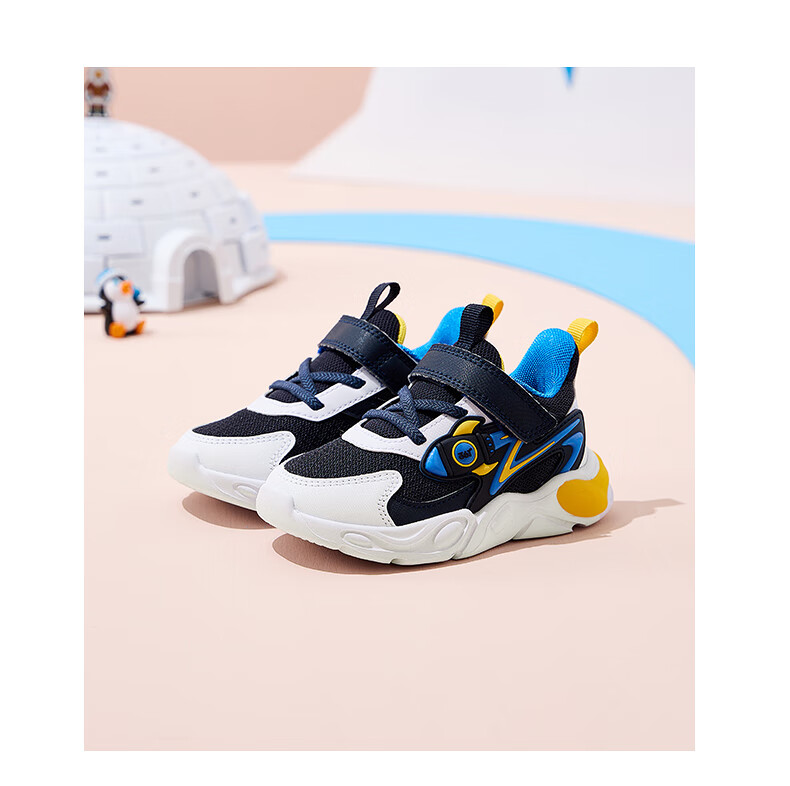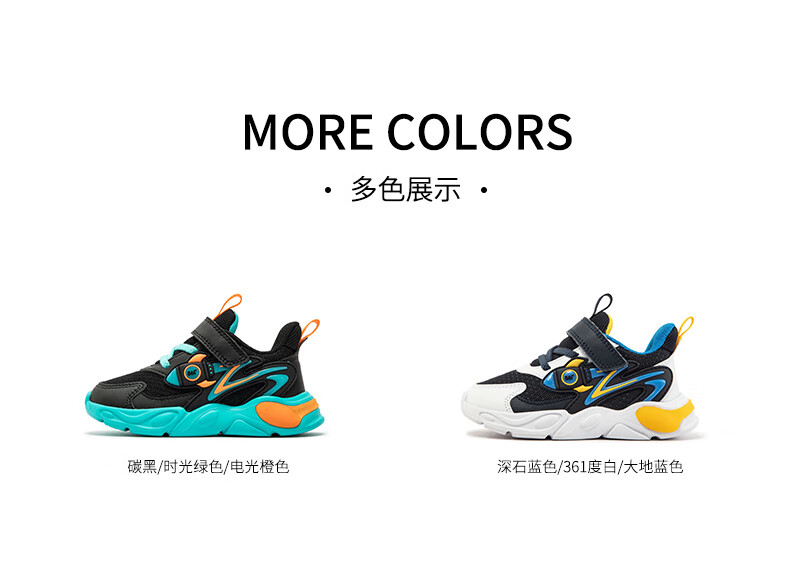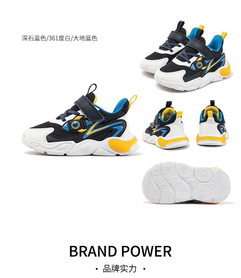 361°童鞋男童休闲鞋年冬季新款幼童运动鞋子旋钮扣跑鞋密网百搭潮 深石蓝色/361度白/大地蓝色 26