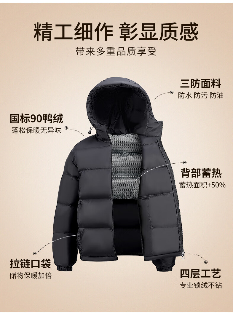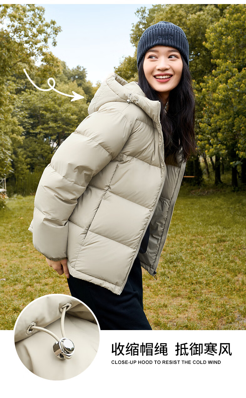 雅鹿三防免洗短款羽绒服女款2025年冬新款连帽蓄热保暖面包服京东自营