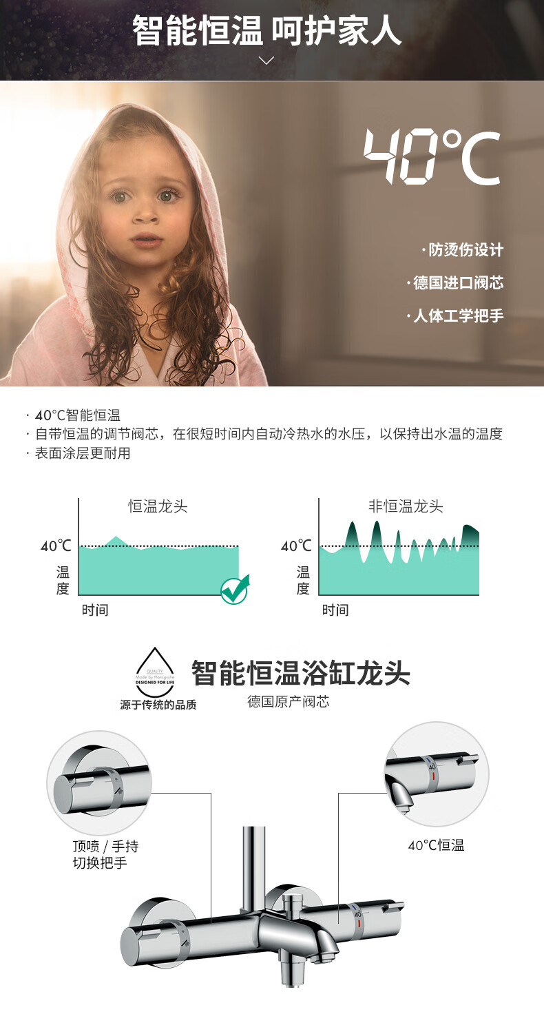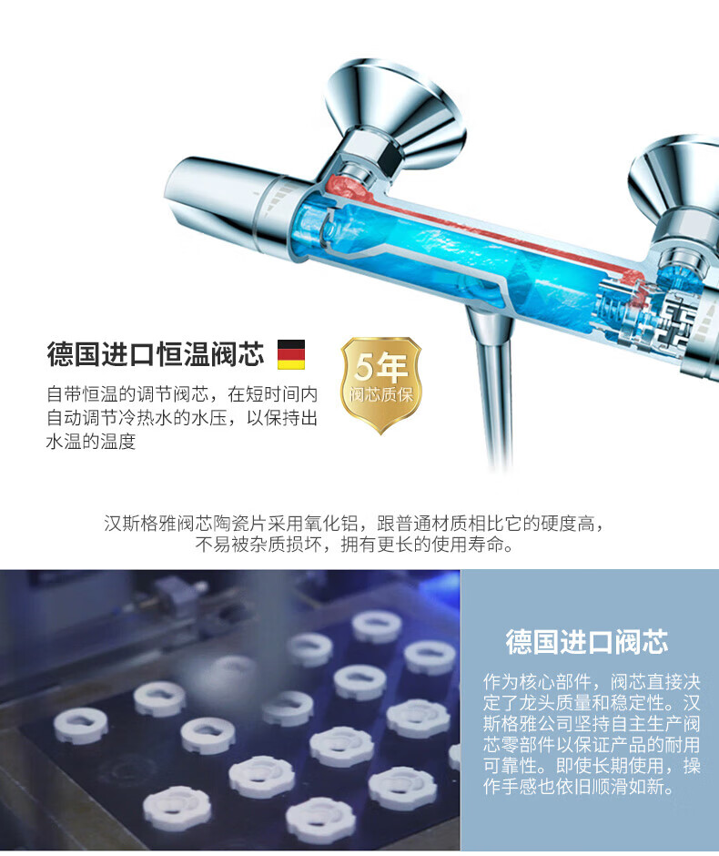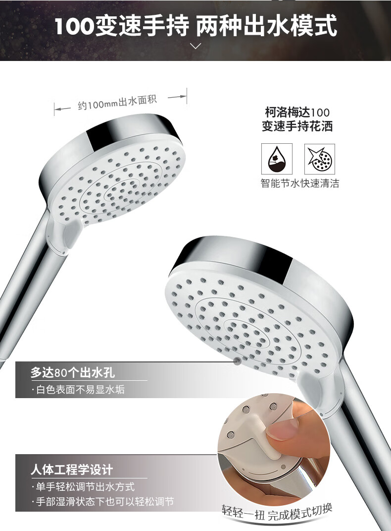 恒洁(HEGII)淋浴花洒套装 铜合金主体智能自动除垢花洒全套HMF951-333B-SH