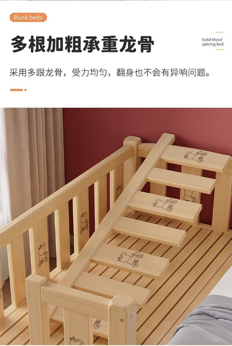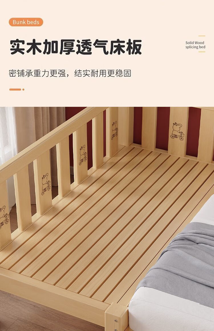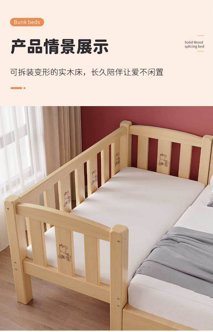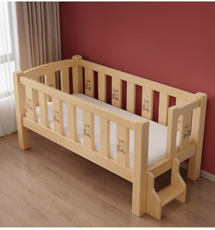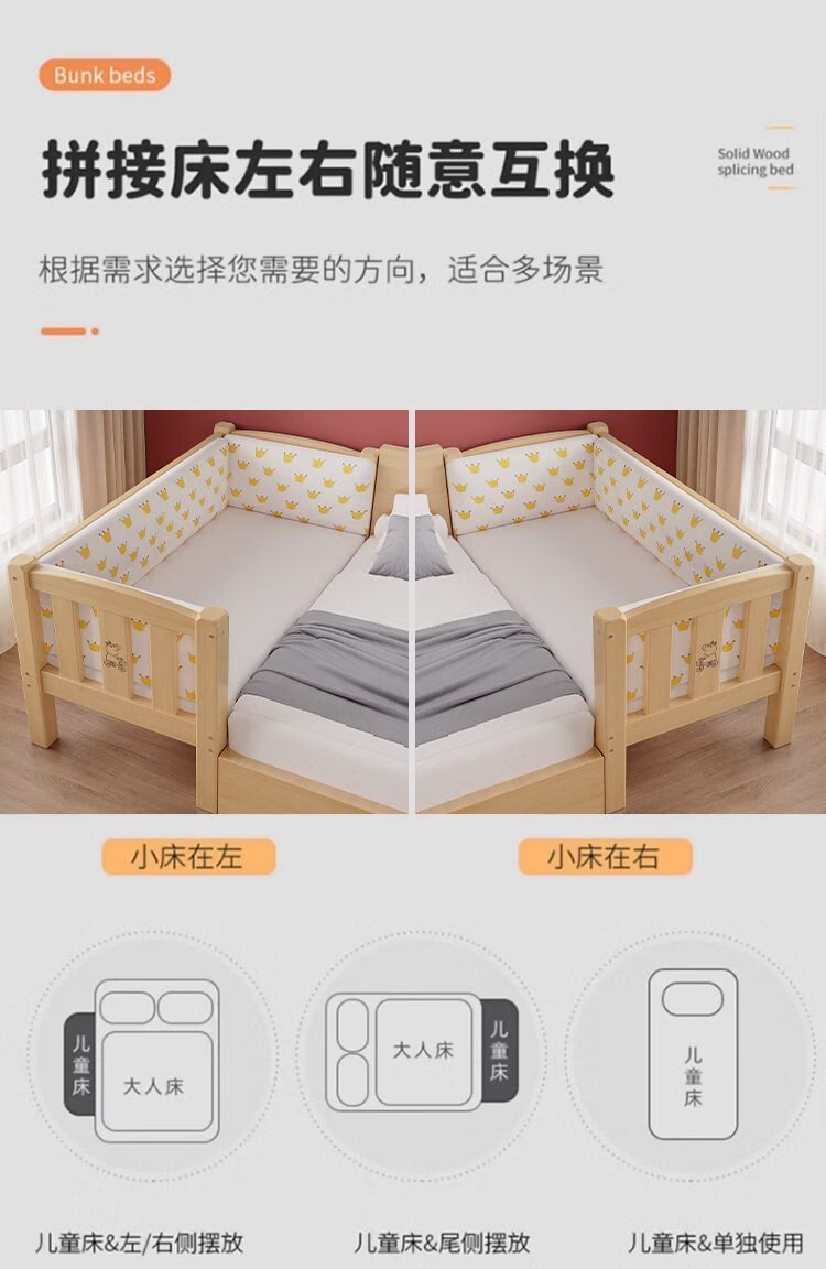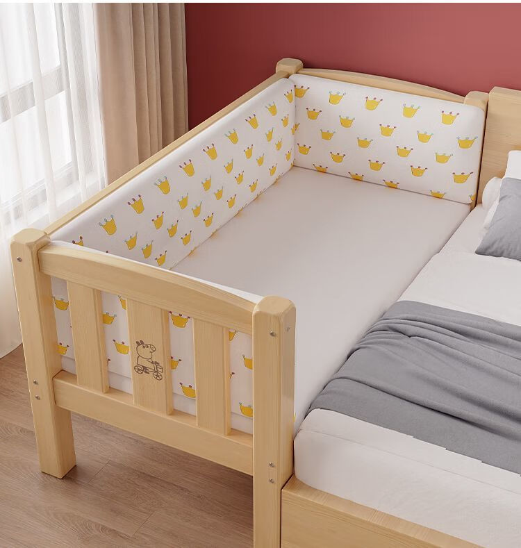 欣慕雅实木拼接床加宽大床边男女宝宝单人小床儿童床带护栏可调节婴儿床 两面护栏单床【床高度可自由调节】 长150宽50高40CM【全实木】