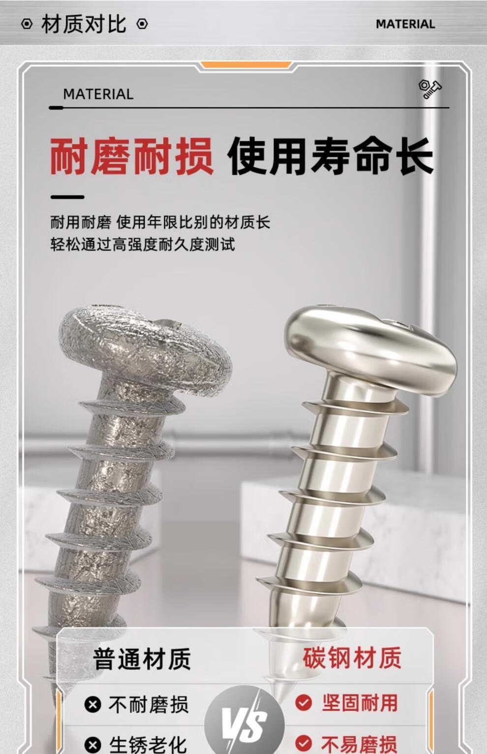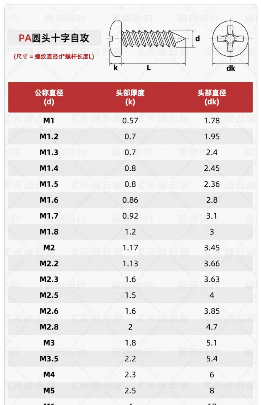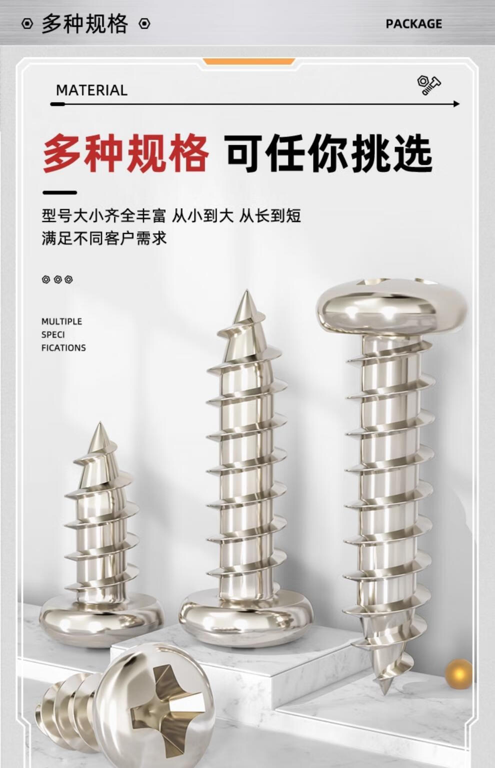 天卓五金PA 加硬碳钢镀镍十字圆头自攻螺丝铁盘头小螺钉头M1M1.2M2M3M4mm M1*2-2000个