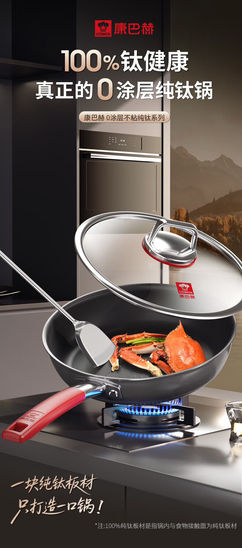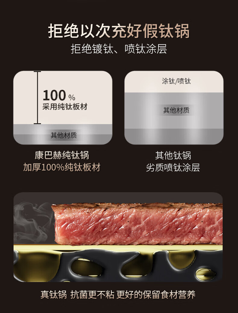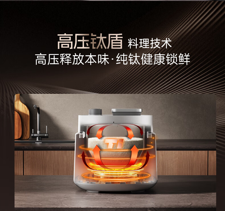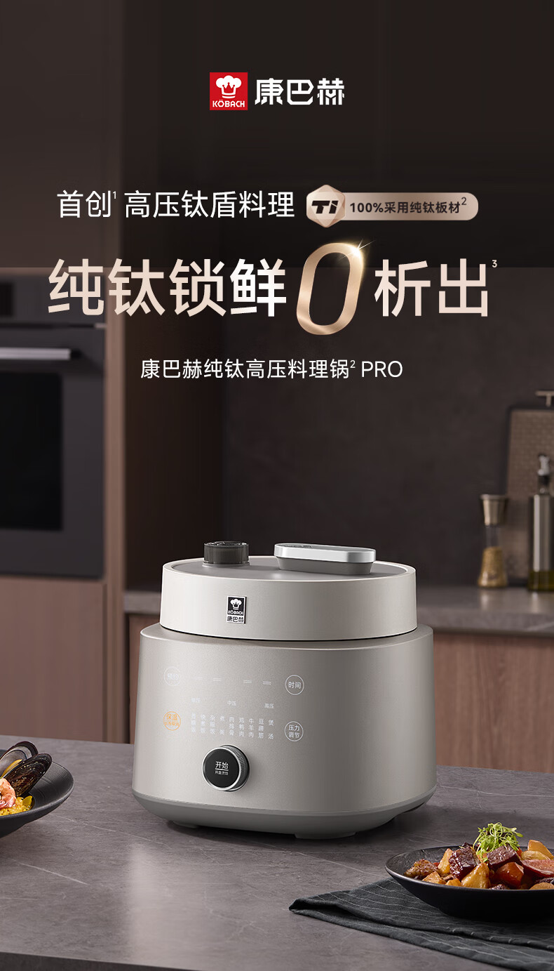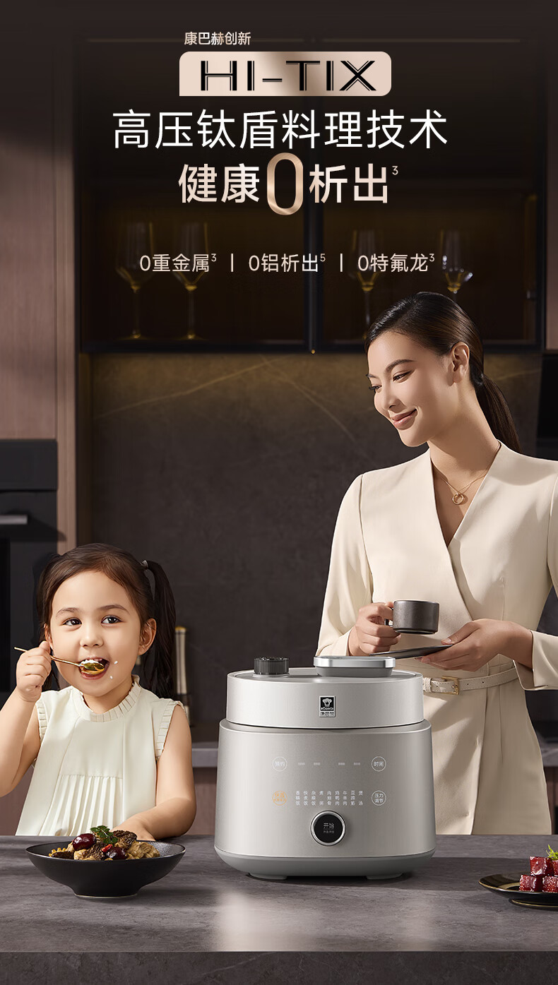 康巴赫纯钛电压力锅高压锅家用电饭煲智能料理锅家用免排气大容量电饭锅0氟涂层4-5L纯钛煎锅套装 钛金色 5L 纯钛高压料理锅+纯钛煎锅