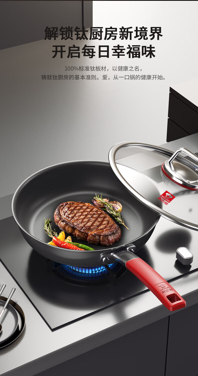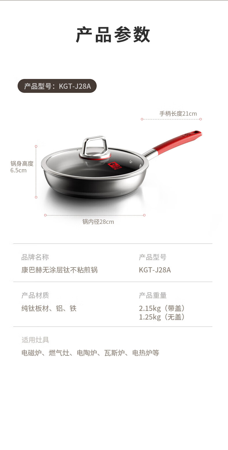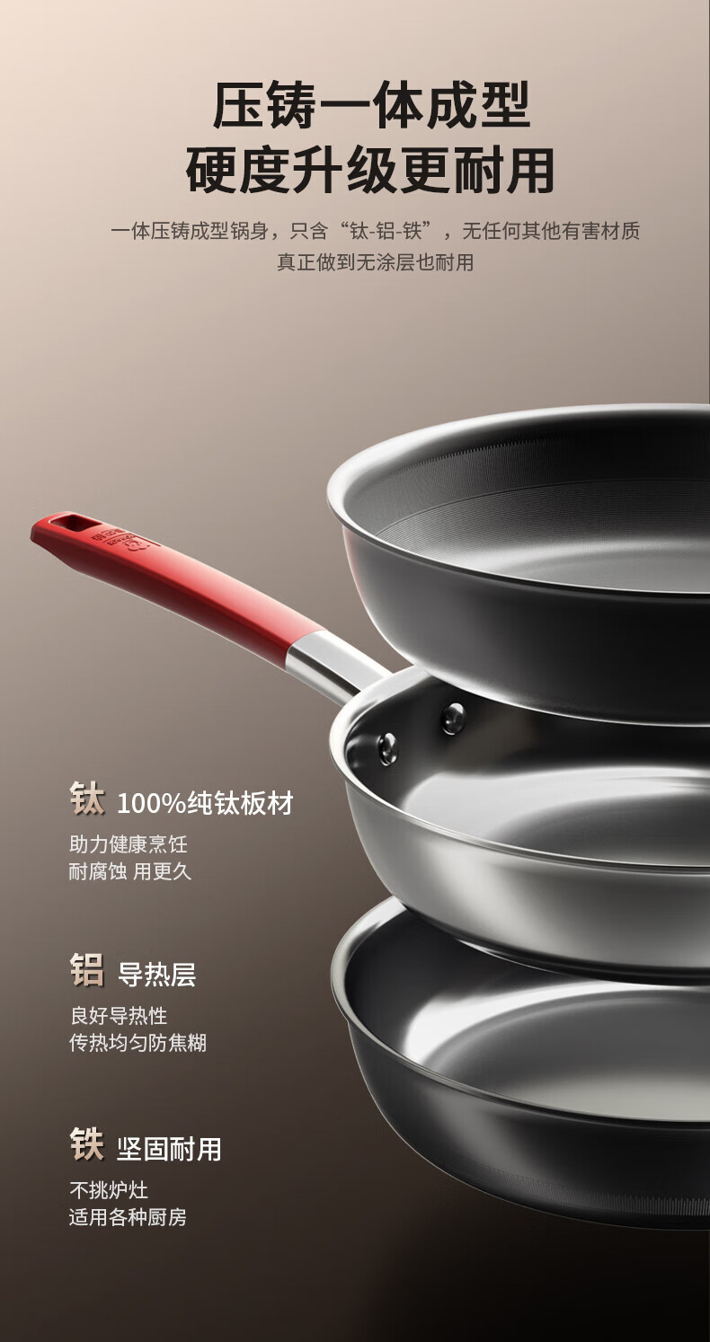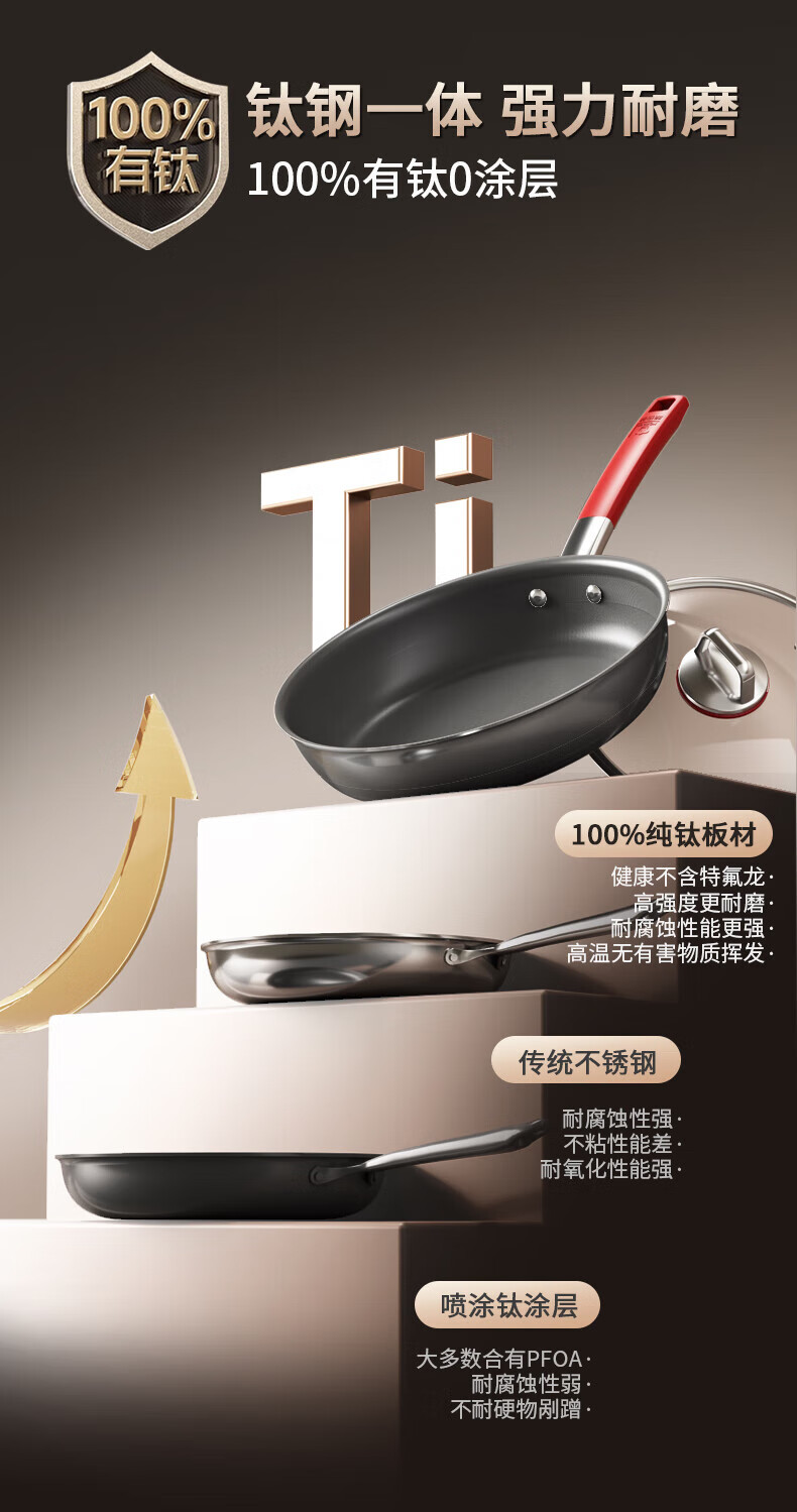 康巴赫纯钛电压力锅高压锅家用电饭煲智能料理锅家用免排气大容量电饭锅0氟涂层4-5L纯钛煎锅套装 钛金色 5L 纯钛高压料理锅+纯钛煎锅