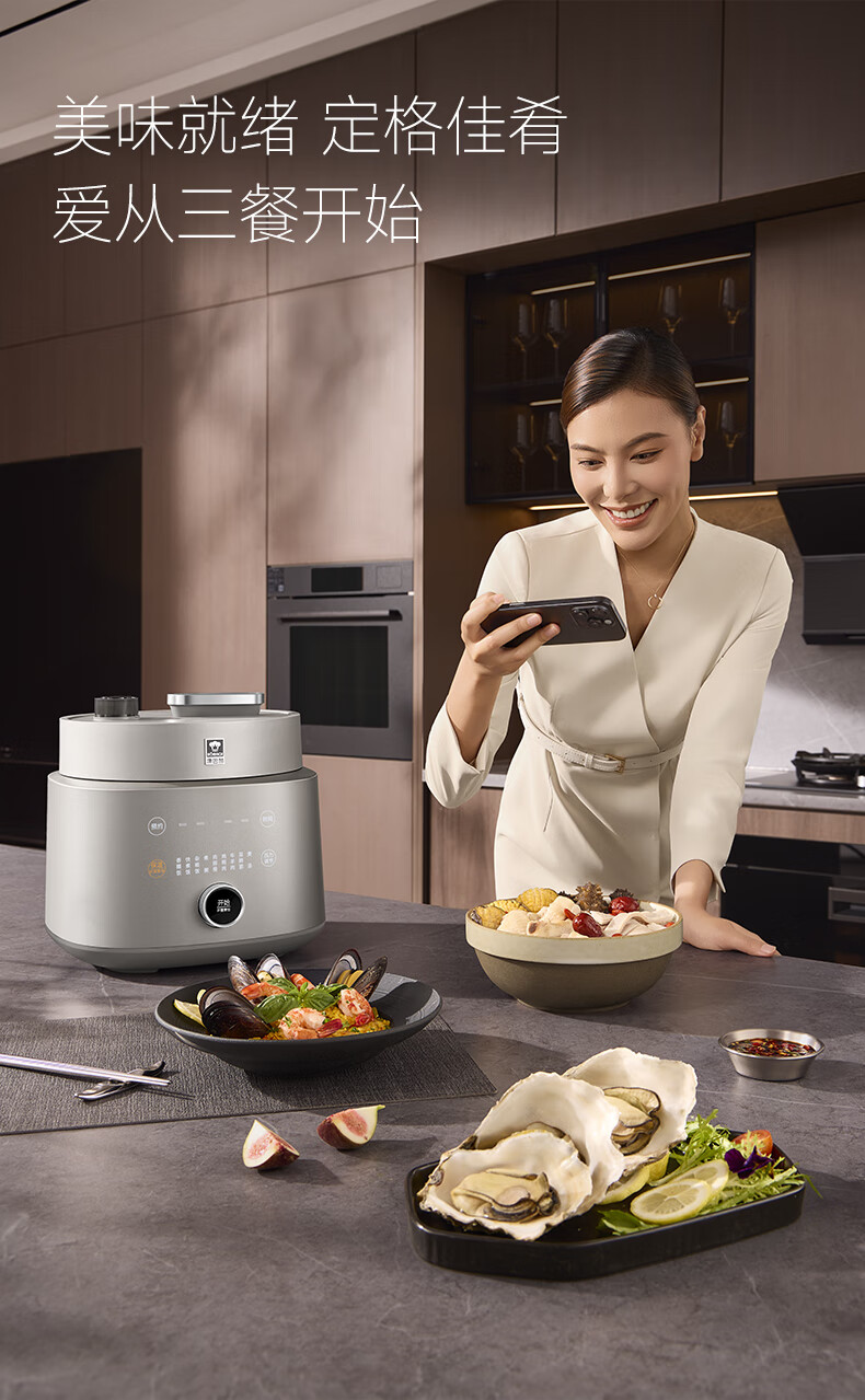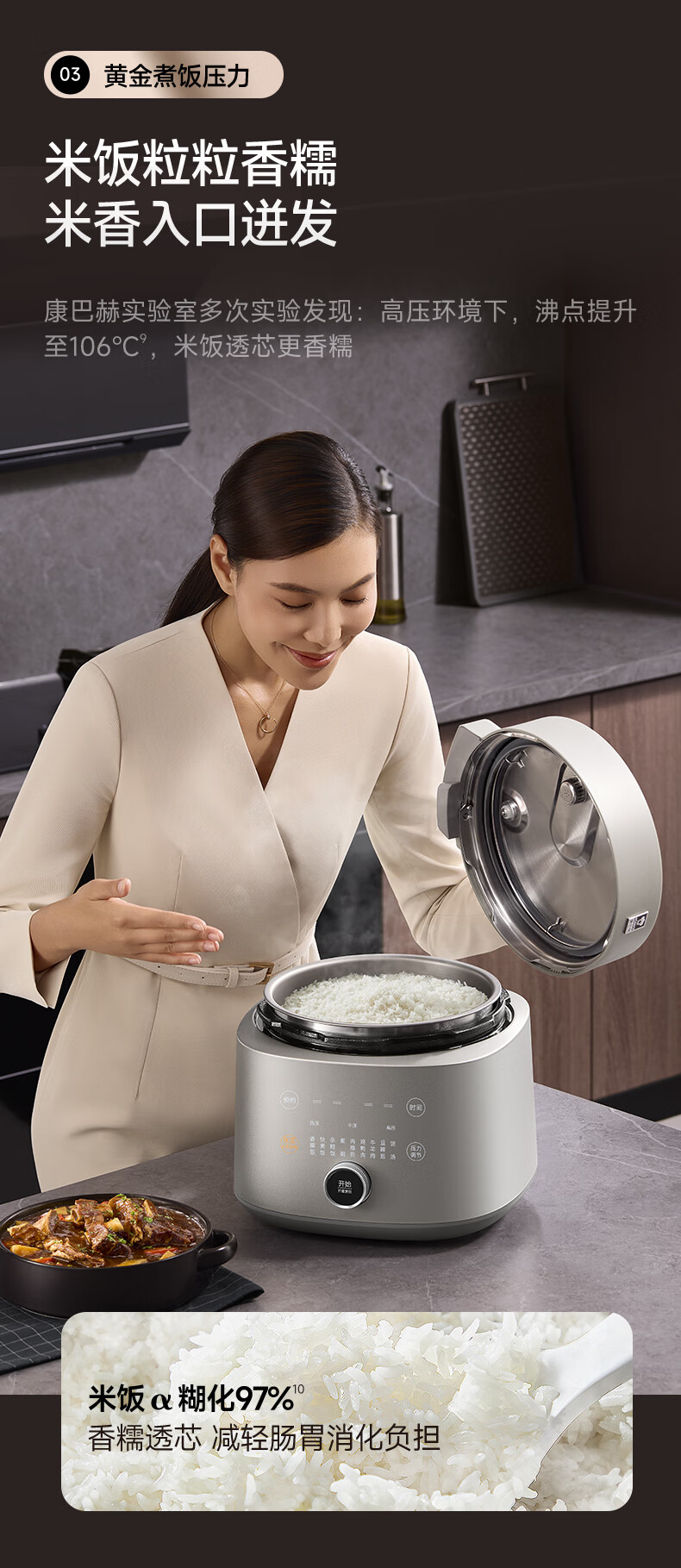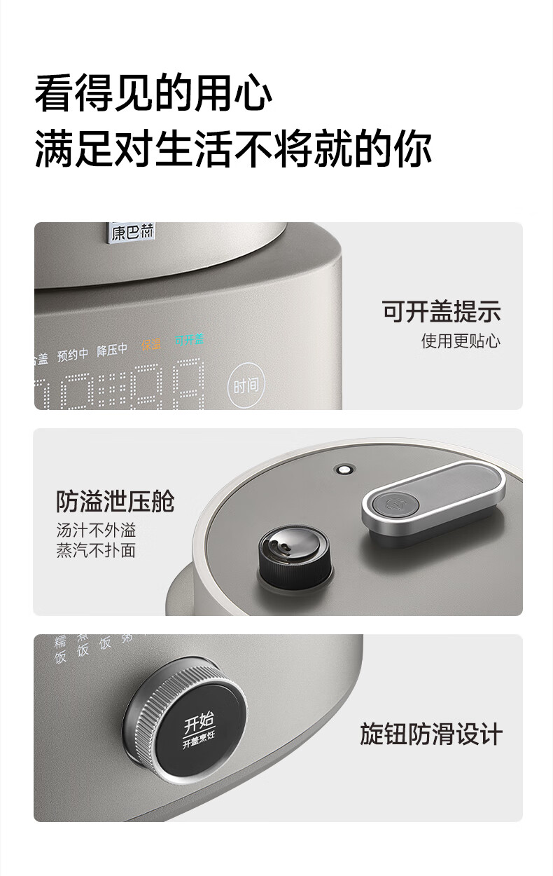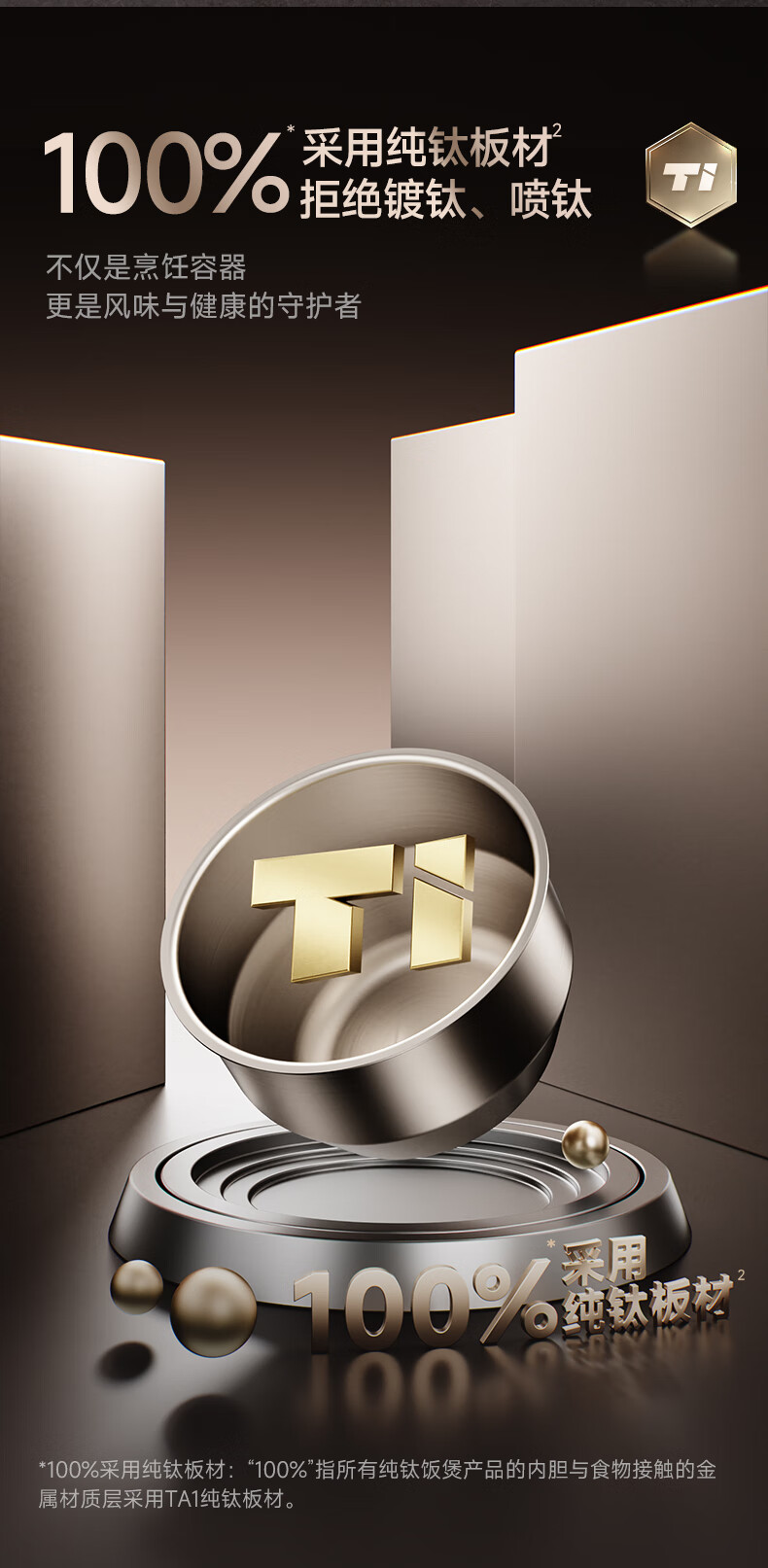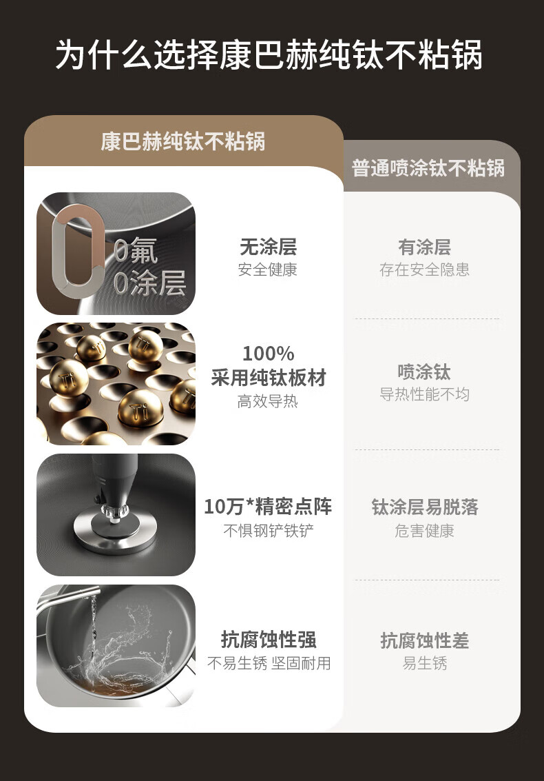 康巴赫纯钛电压力锅高压锅家用电饭煲智能料理锅家用免排气大容量电饭锅0氟涂层4-5L纯钛煎锅套装 钛金色 5L 纯钛高压料理锅+纯钛煎锅
