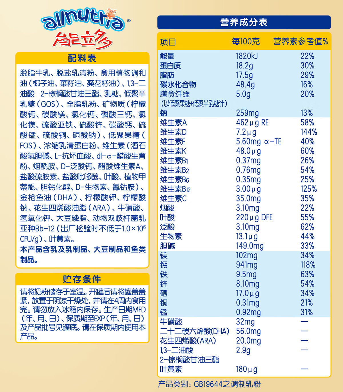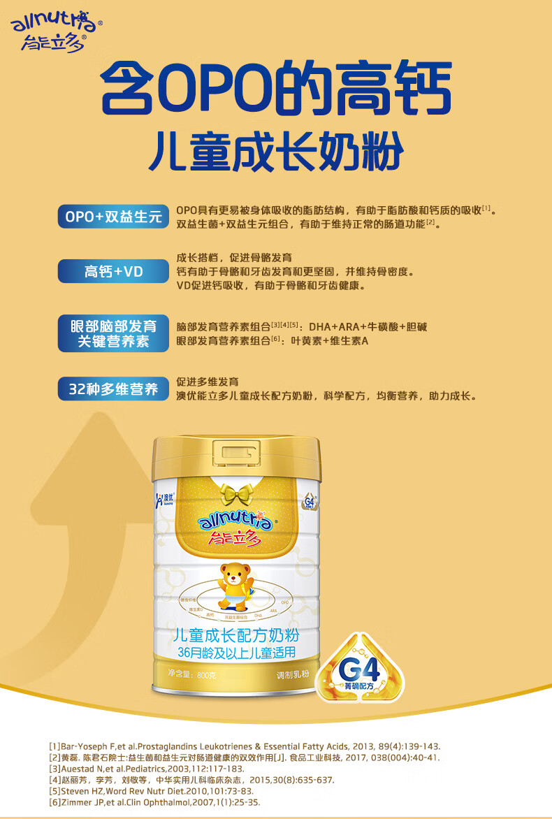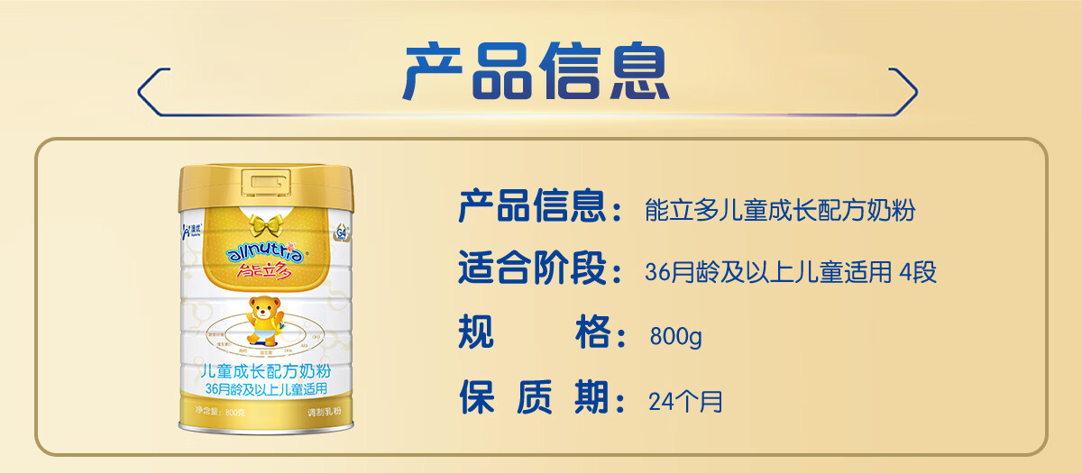 能立多【整箱购买享好礼】儿童奶粉4段(3岁以上)800g 高钙长