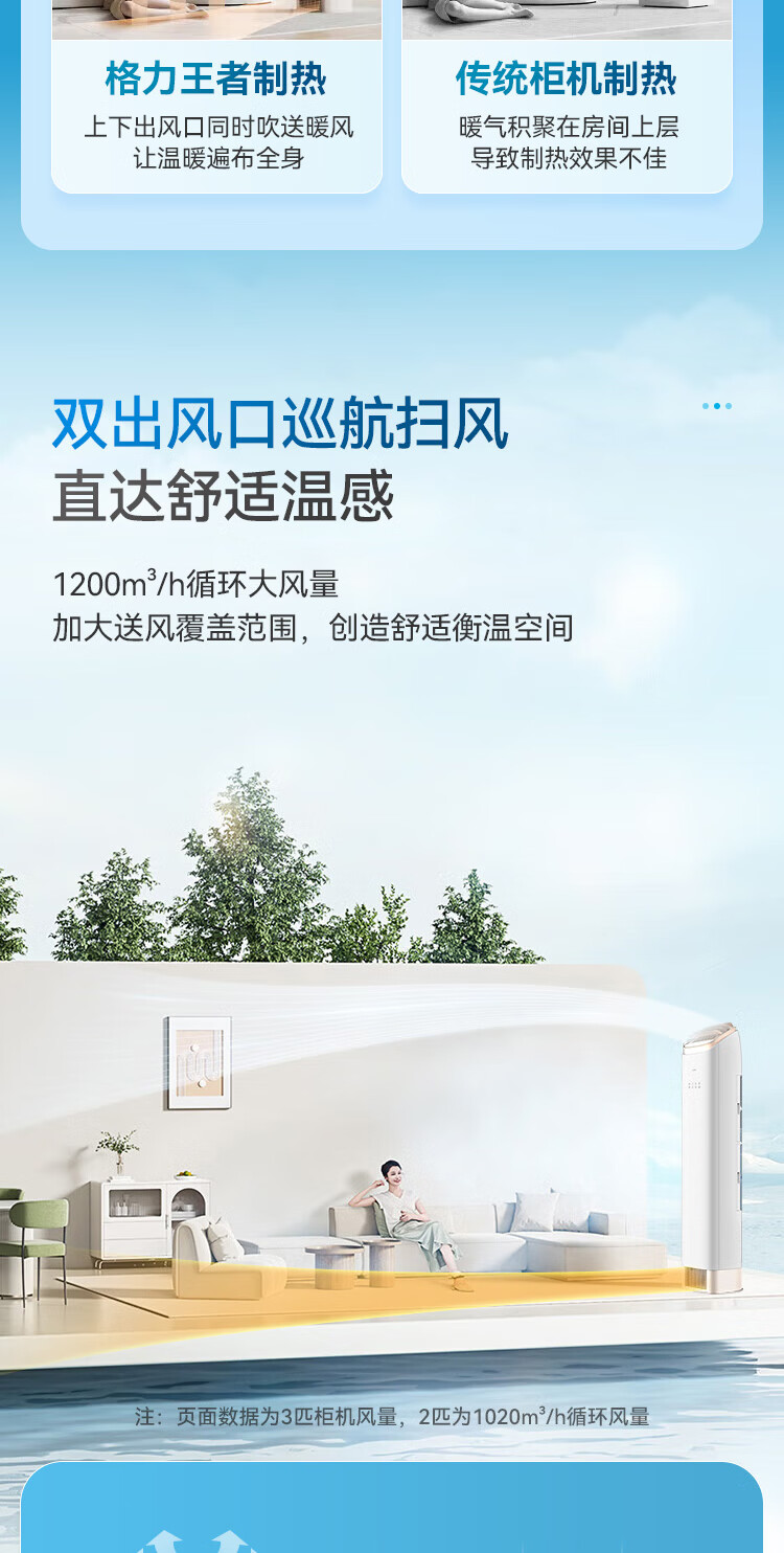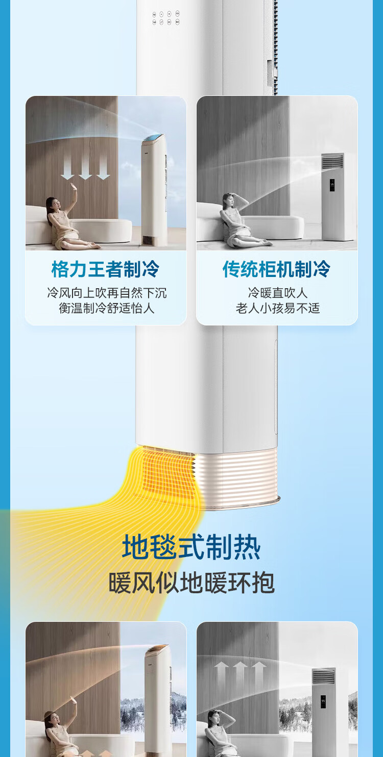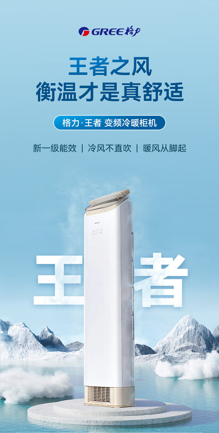 格力(GREE)空调柜机王者/京致上下送风 防直吹 新1级变频冷暖冷酷外机 衡温客厅节能立式空调家电国家补贴20% 王者 3匹 (72518)FNhAb-B1