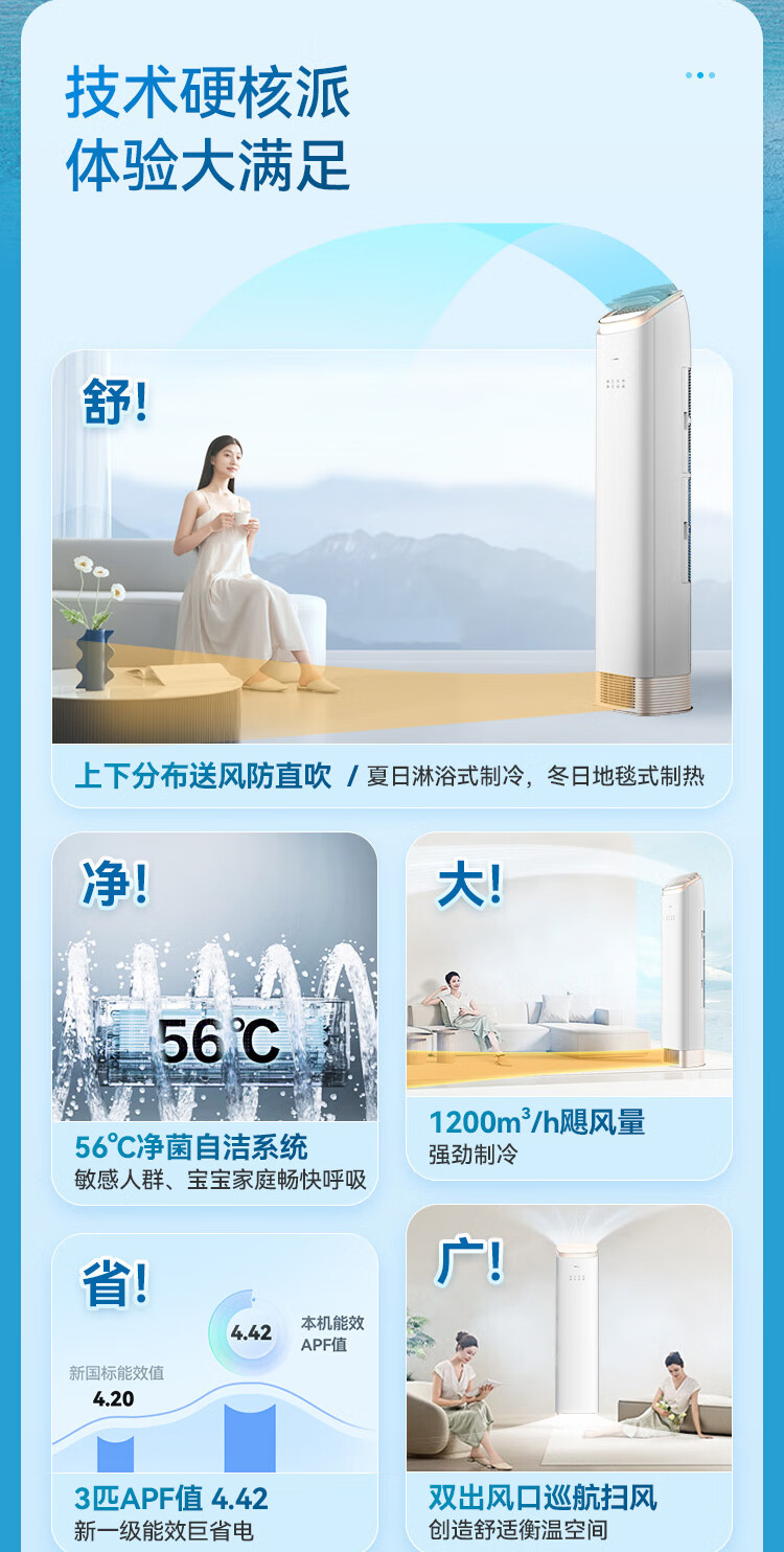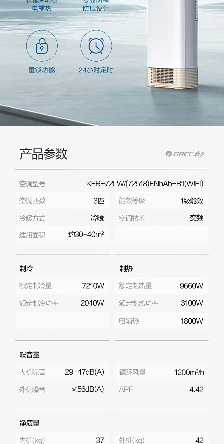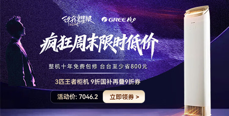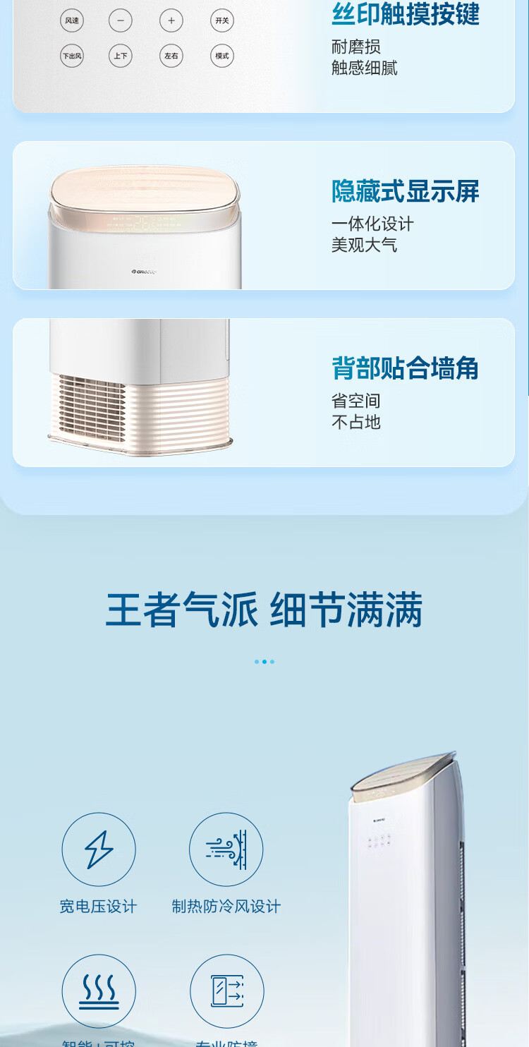 格力(GREE)空调柜机王者/京致上下送风 防直吹 新1级变频冷暖冷酷外机 衡温客厅节能立式空调家电国家补贴20% 王者 3匹 (72518)FNhAb-B1