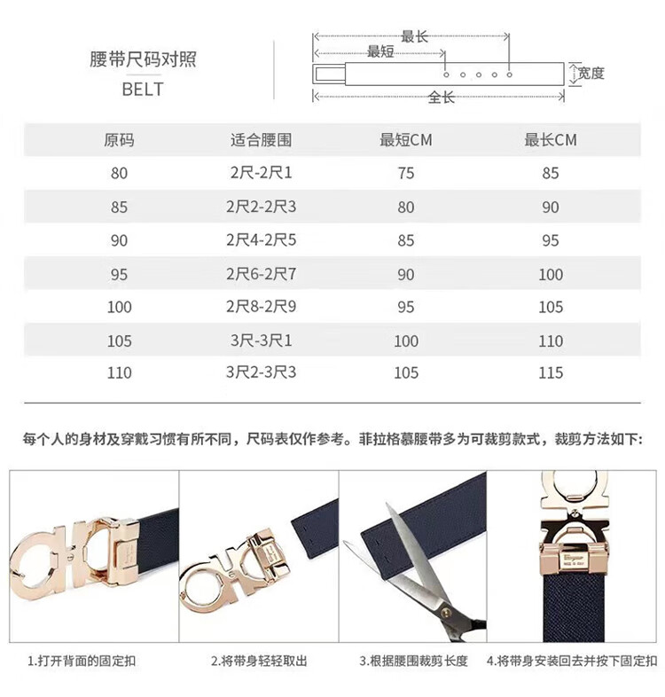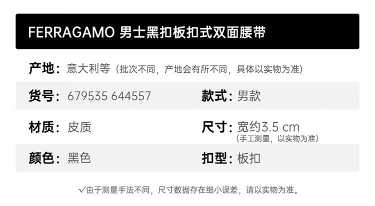 菲拉格慕(Ferragamo)男士双面可调节牛皮腰带皮带 679535 644557 105