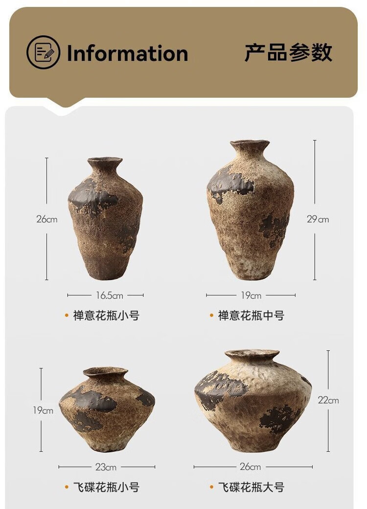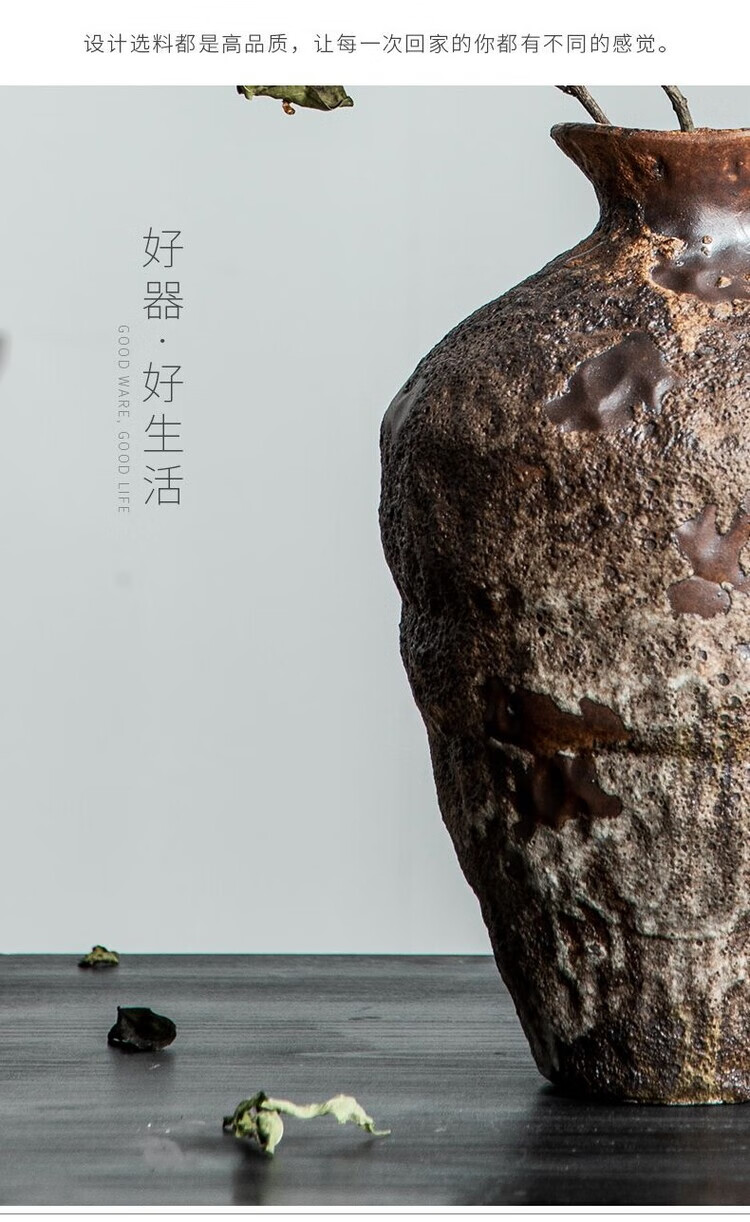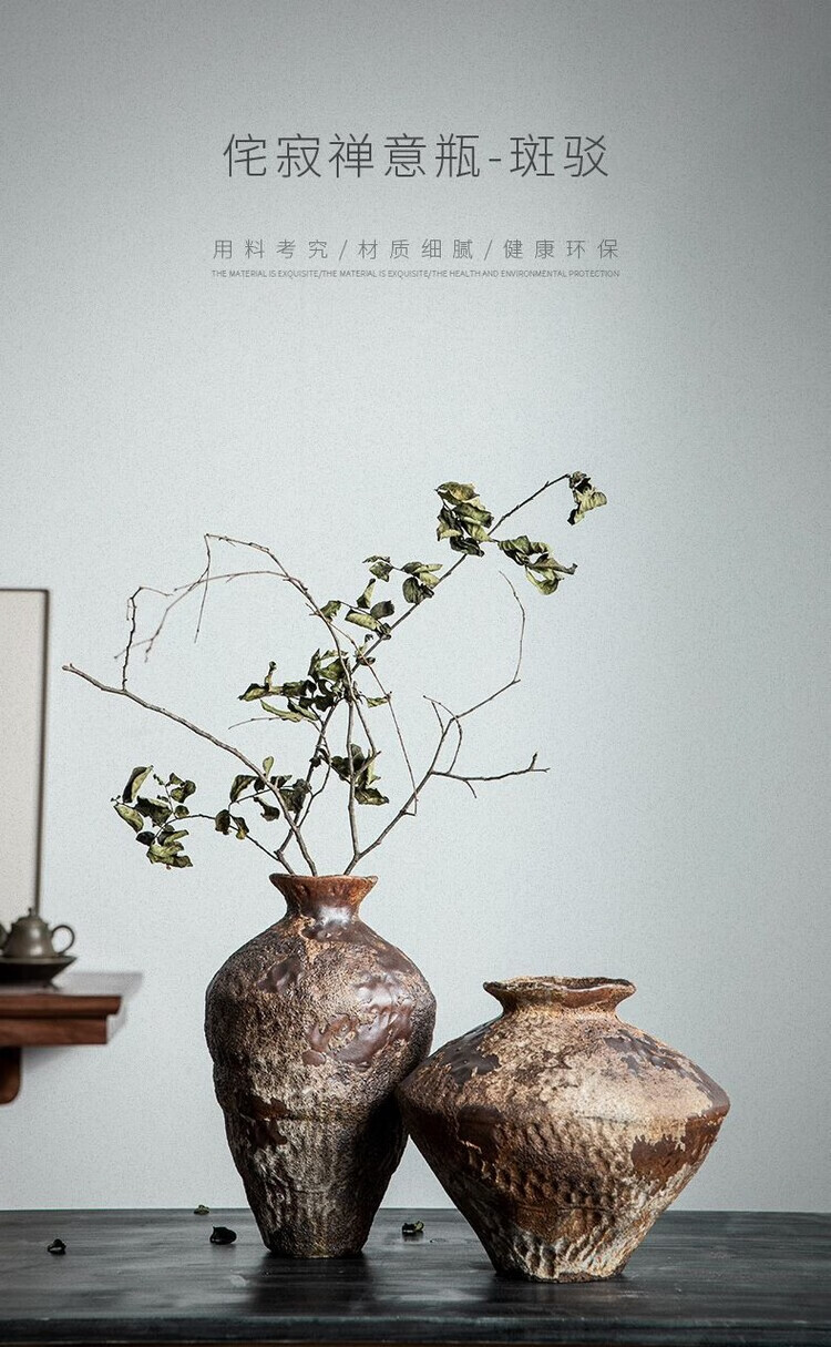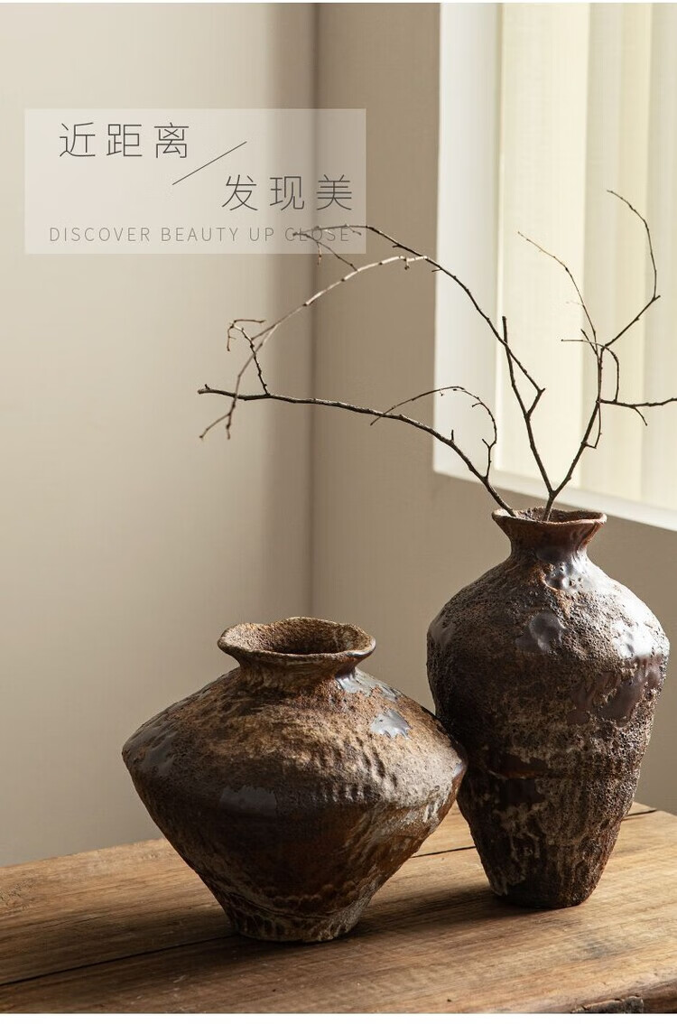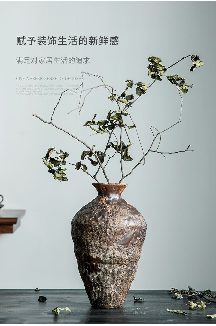 OYKTN景德镇侘寂风禅意摆件大粗陶罐手工插花民宿酒店复古怀旧陶瓷花瓶 禅意花瓶【大A款新品】