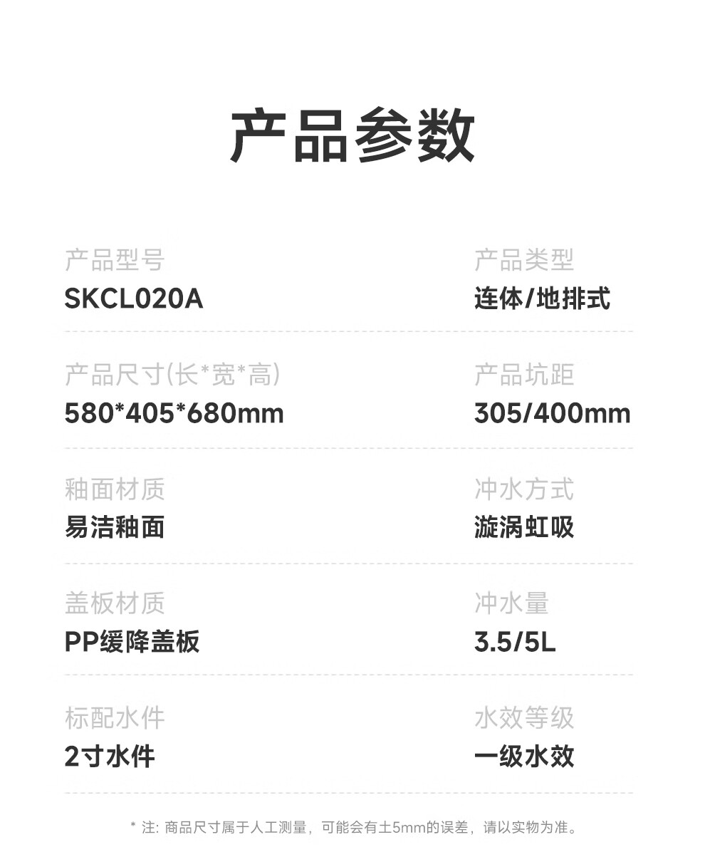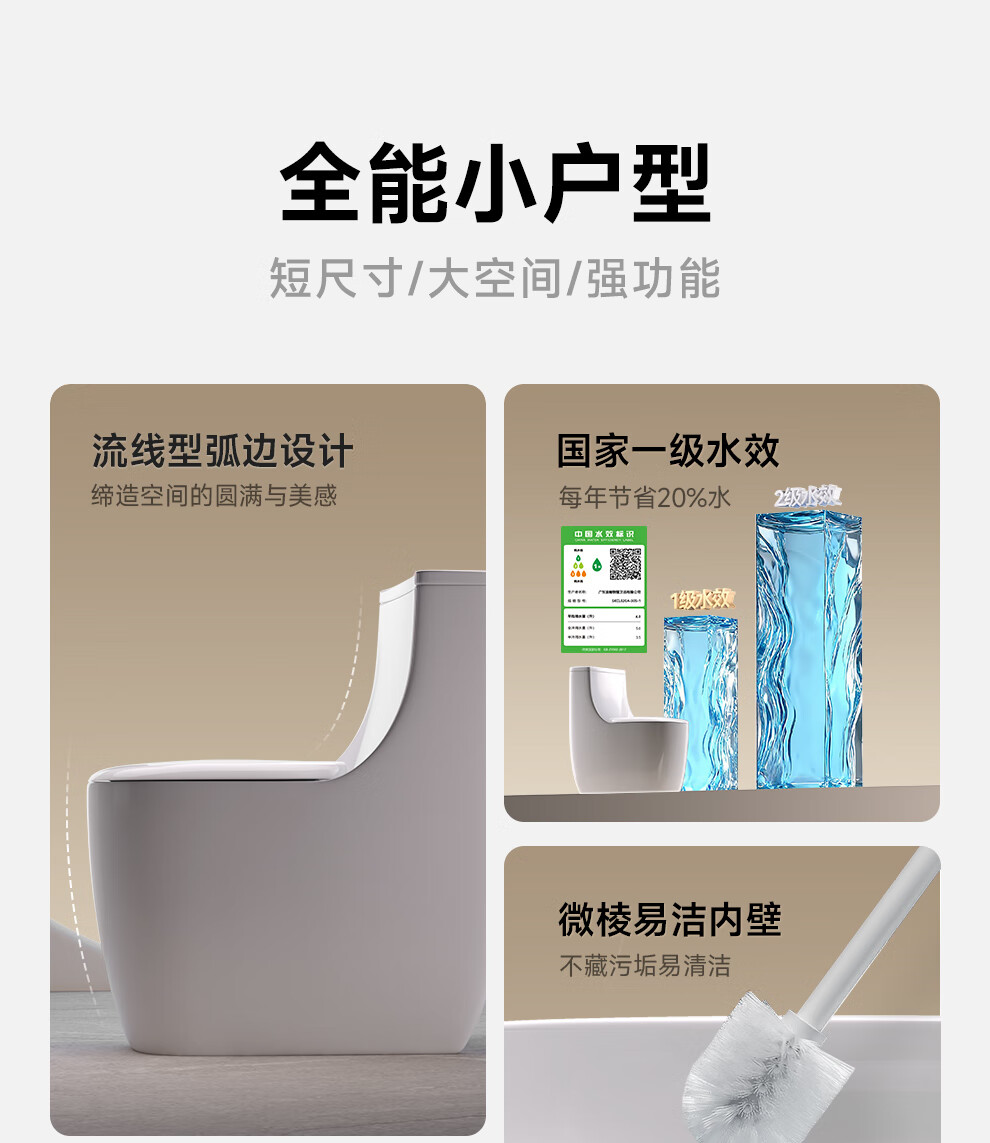 浪鲸(SSWW)卫浴家用马桶漩涡虹吸微棱内壁防溅节水坐便器易洁釉面抽水马桶 【一级水效|漩涡虹吸】020A全能小户型 305/300mm