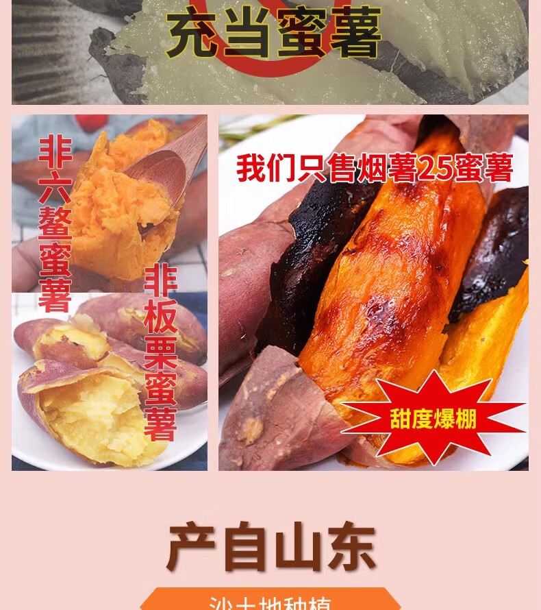 山东烟薯25号蜜薯糖心红薯新鲜农家沙地超甜烤地瓜烤山芋产地直发 精品中大果5斤(单果150g+)