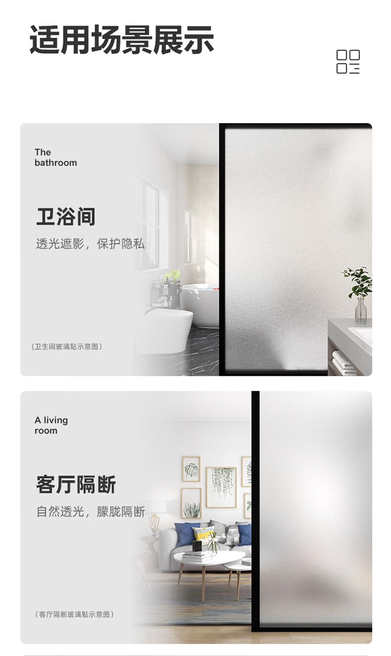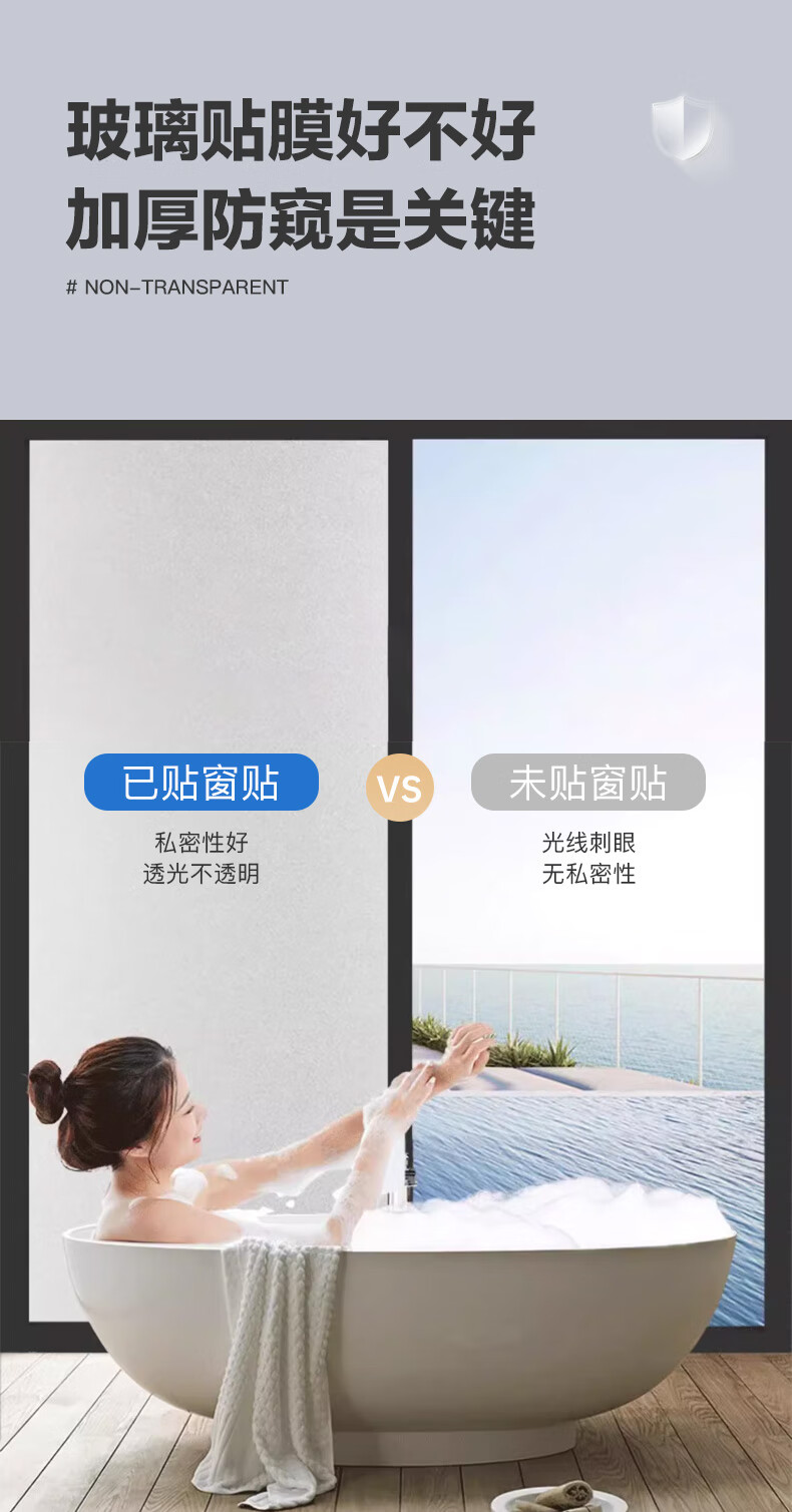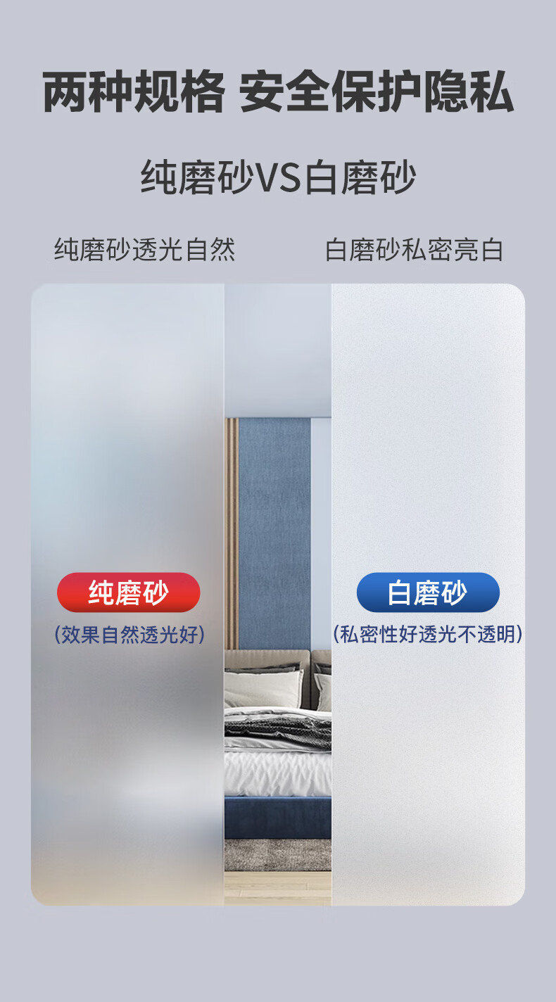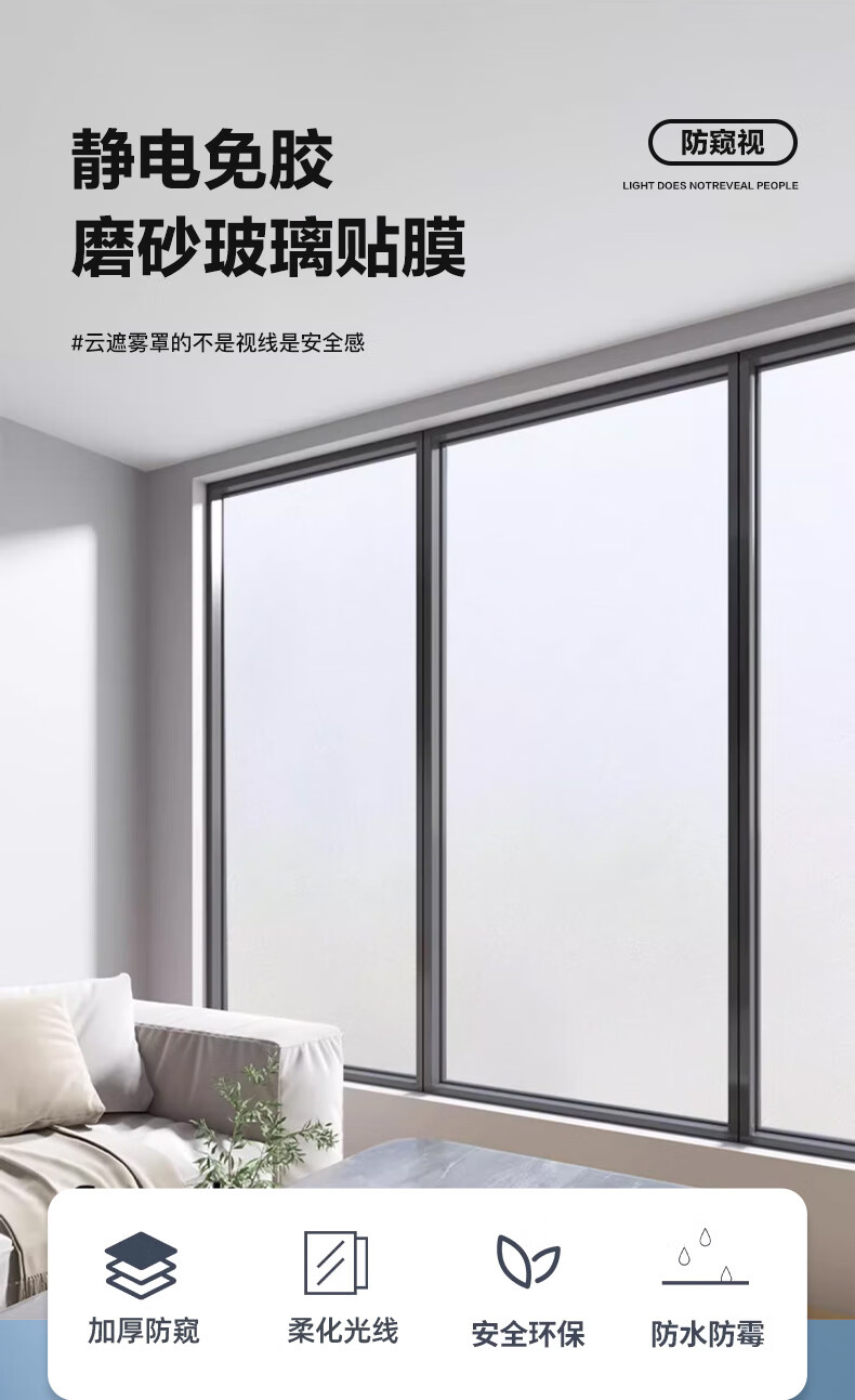 墨斗鱼磨砂玻璃隐私贴膜卫生间窗户防窥贴纸0.6*2m透光不透人元旦送礼物