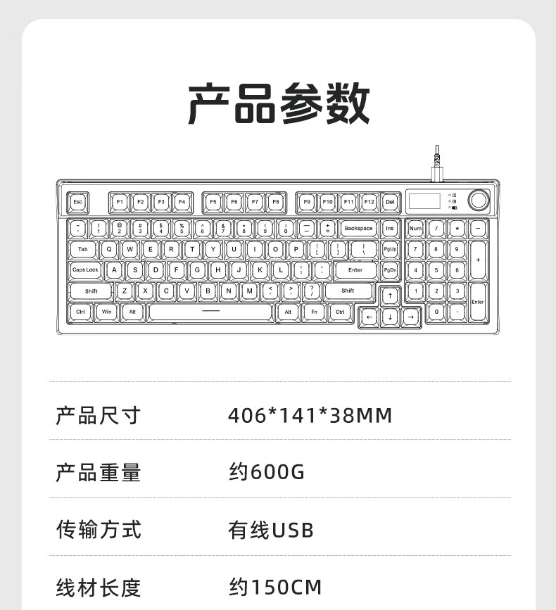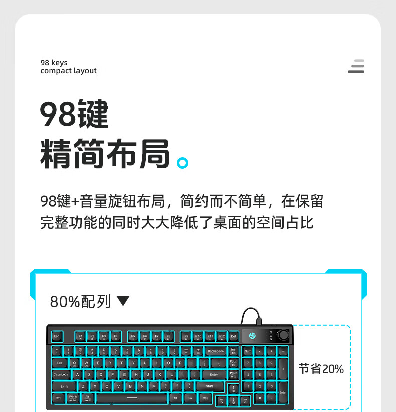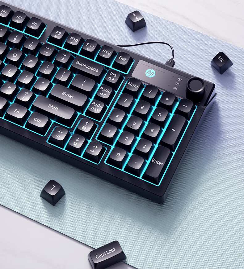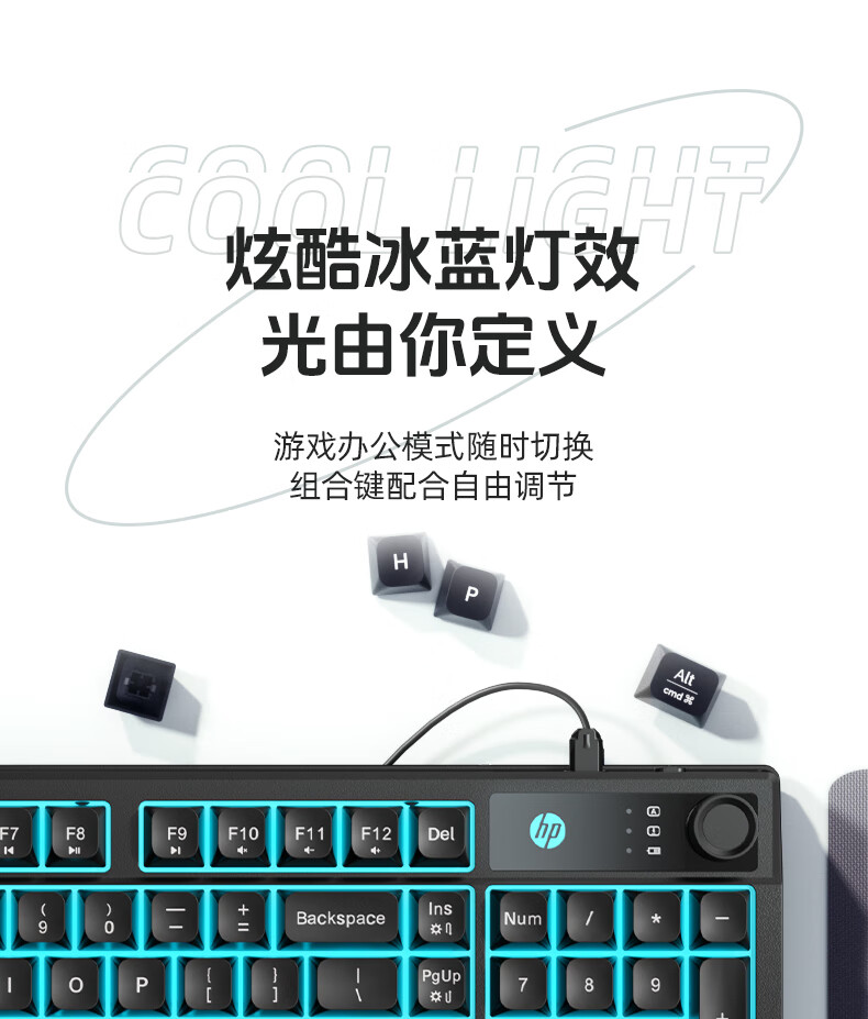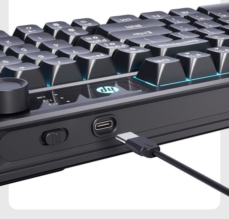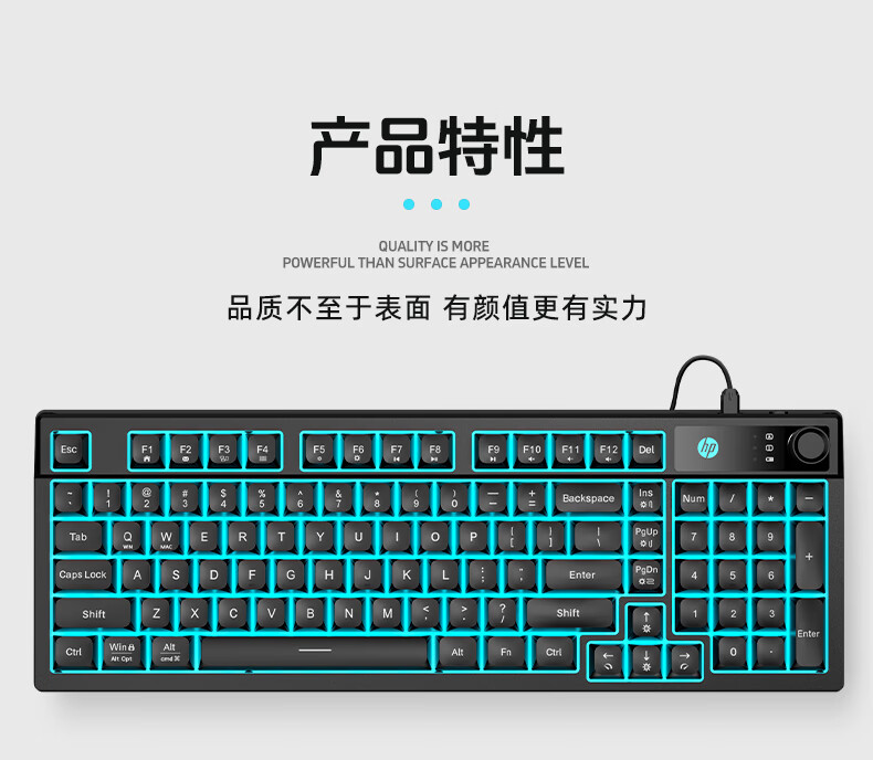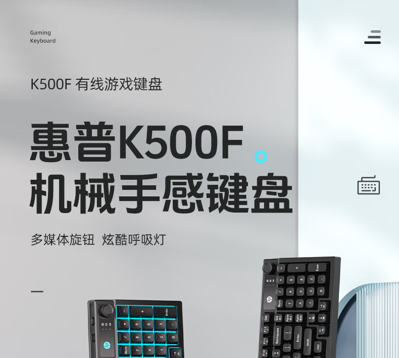 惠普(HP)K500F机械手感有线键盘 静音多功能旋钮办公游戏台式电脑笔记本通用 黑色 98配列
