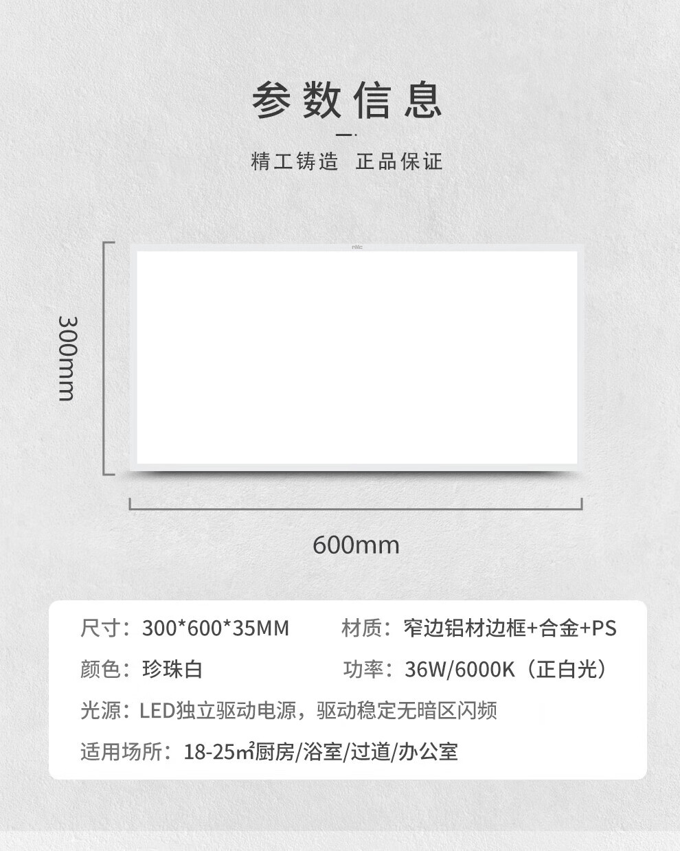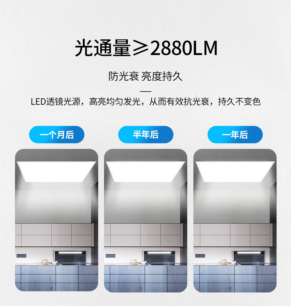 雷士(NVC)厨房灯政府补贴led集成吊顶厨卫吸顶灯铝扣板卫生间平板面板灯36W