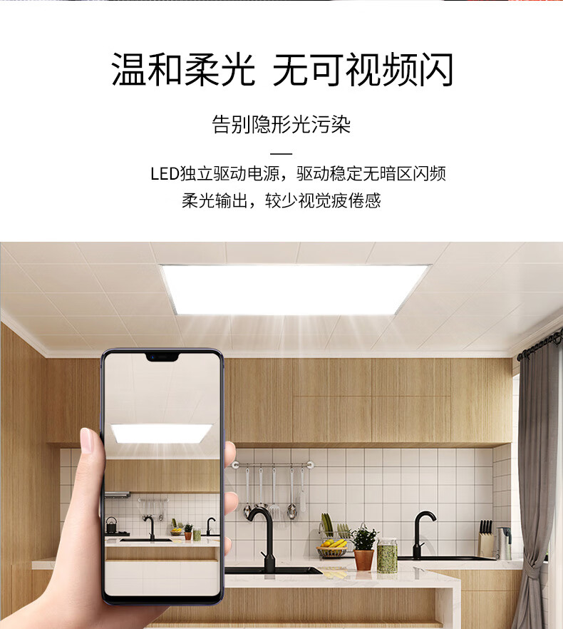 雷士(NVC)厨房灯政府补贴led集成吊顶吸顶灯铝扣板卫生间平板无边框面板灯