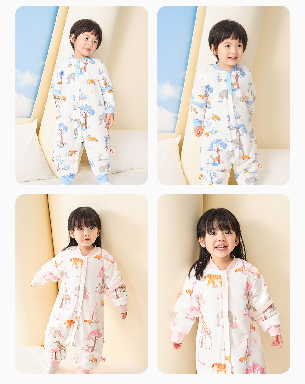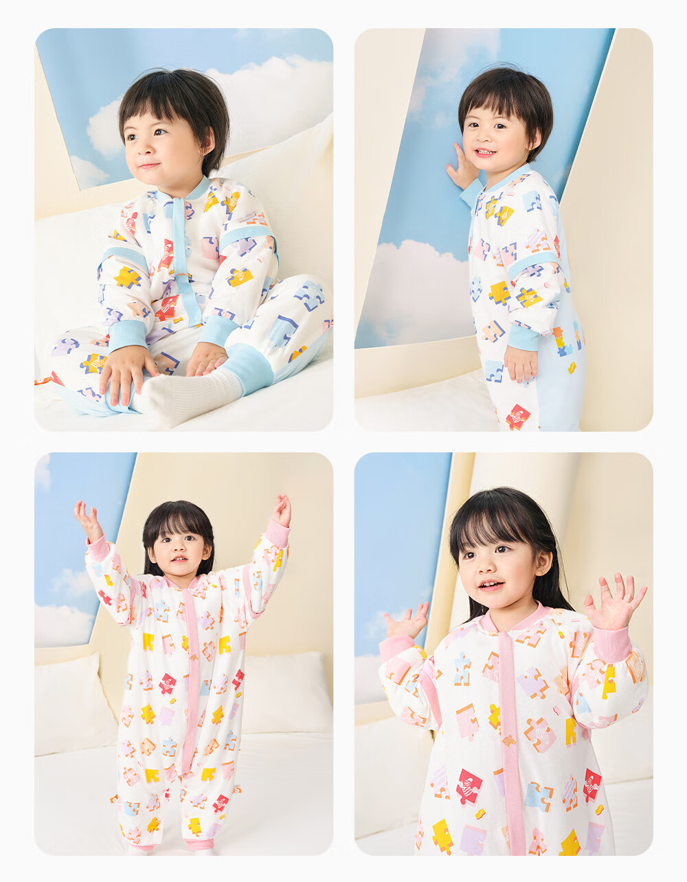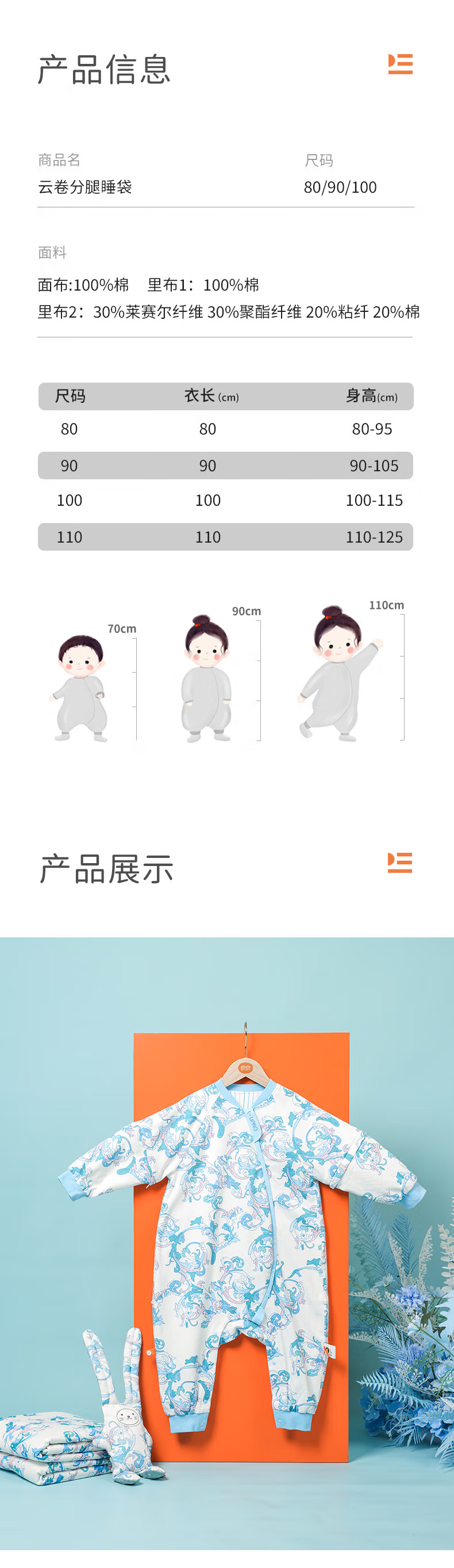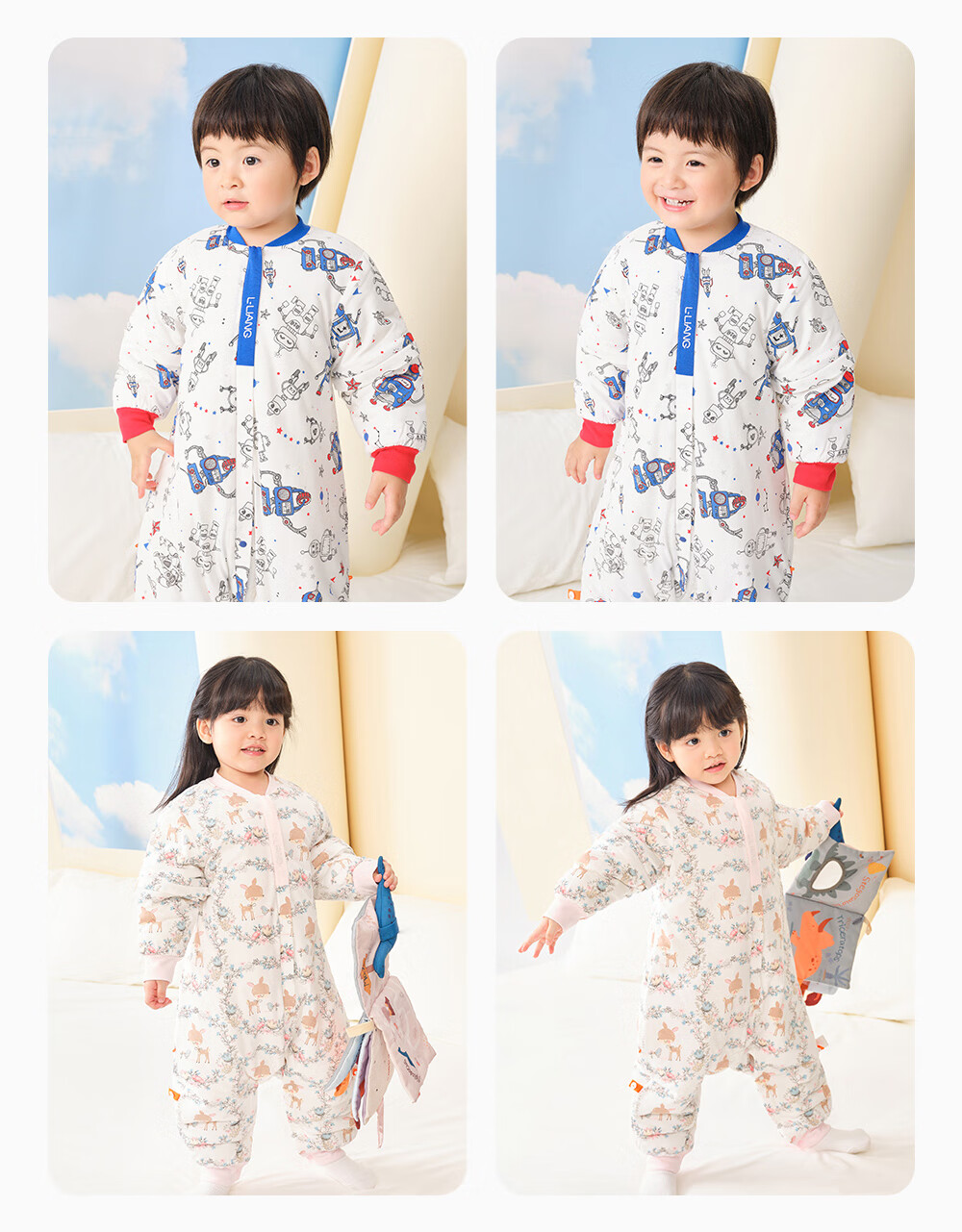 良良(liangliang)儿童睡袋儿童秋冬分腿新生儿睡袋宝宝防踢被子神器纯棉保暖 春秋款【适合25-30℃】云卷蓝 XXL码(建议身高100-115CM)