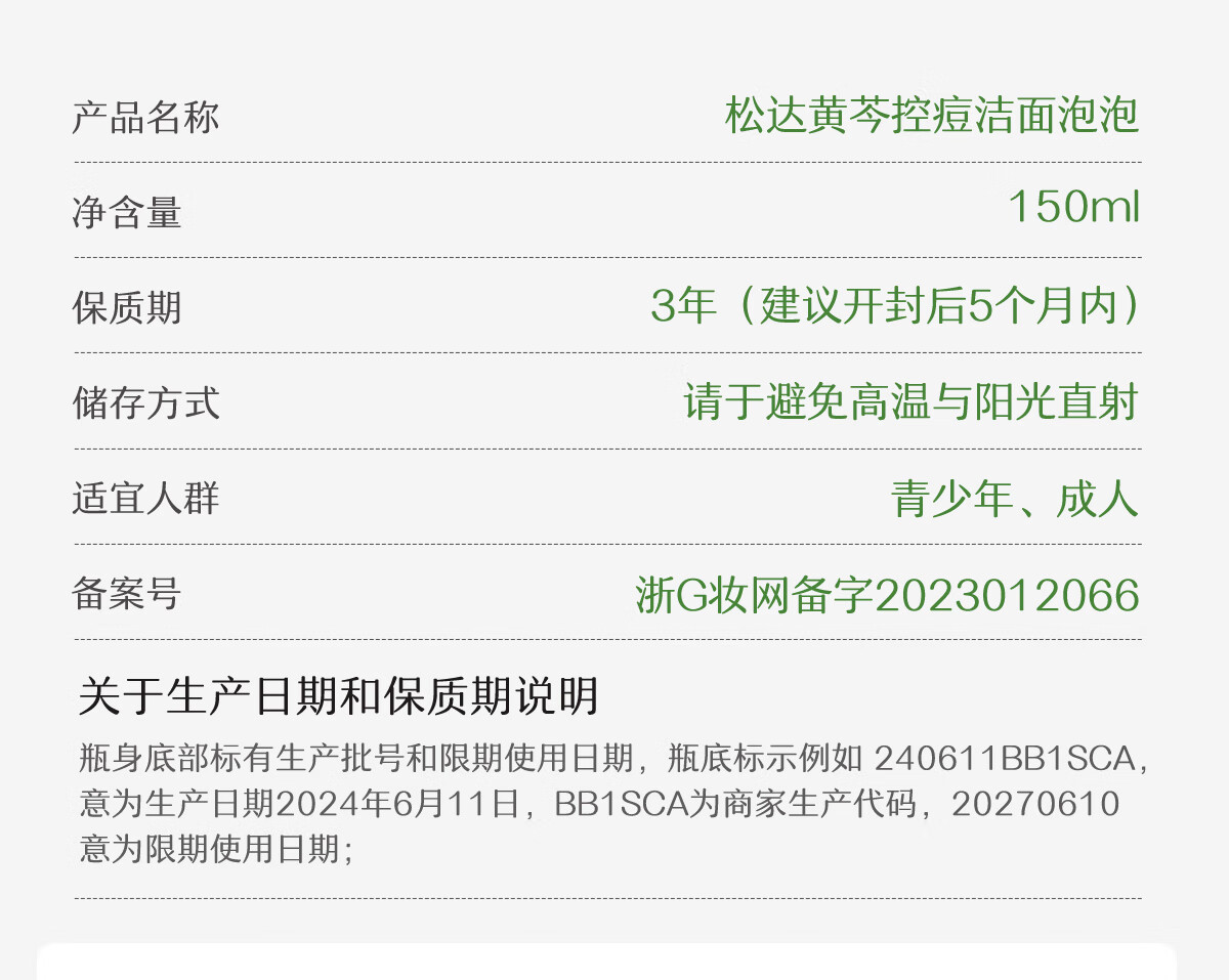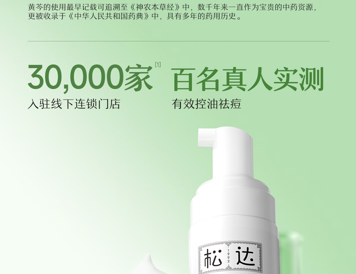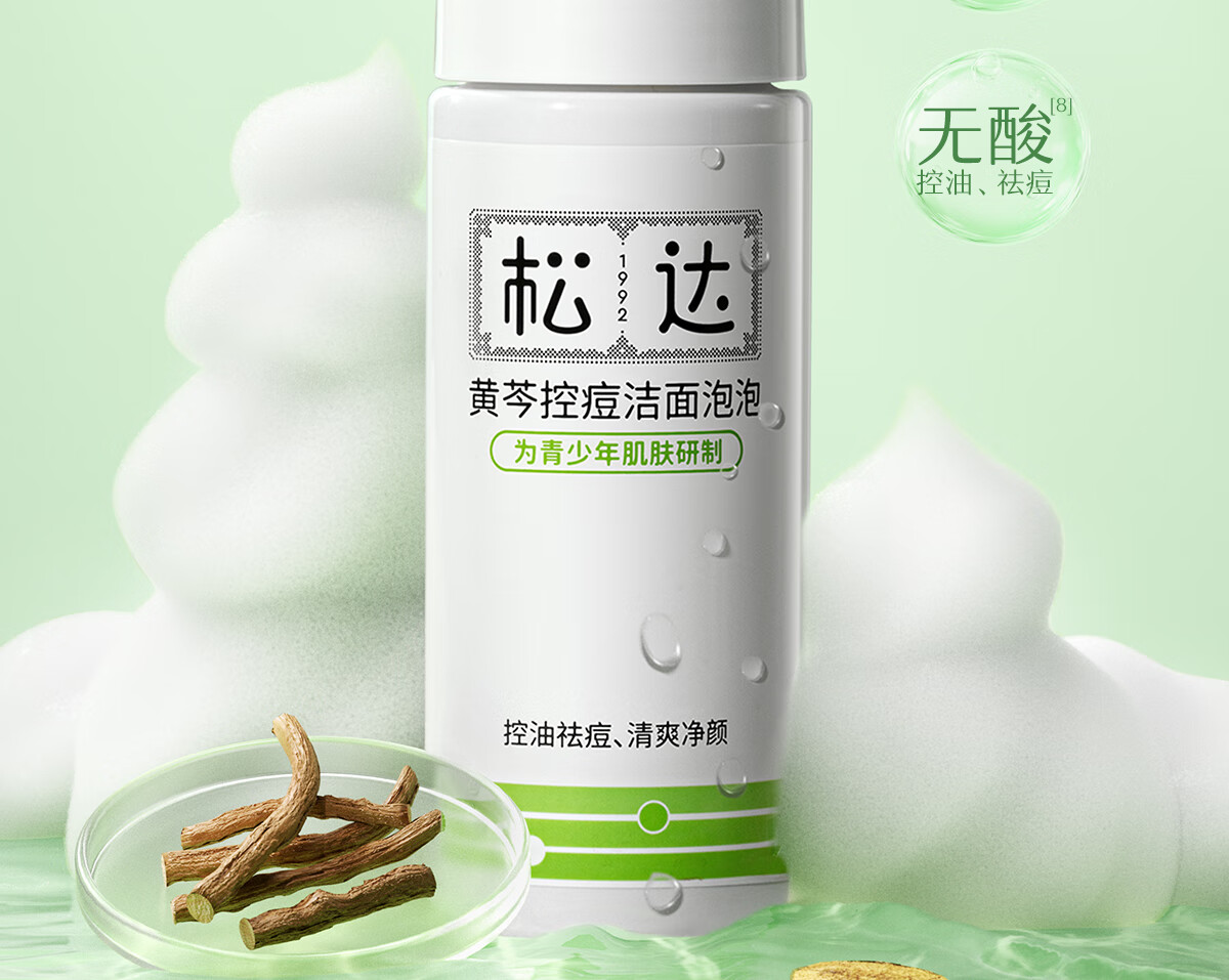 松达青少年洗面奶学生党青春期男女孩控油祛痘温和黄芩洁面泡泡 【千人复购】黄芩祛痘洁面150ml