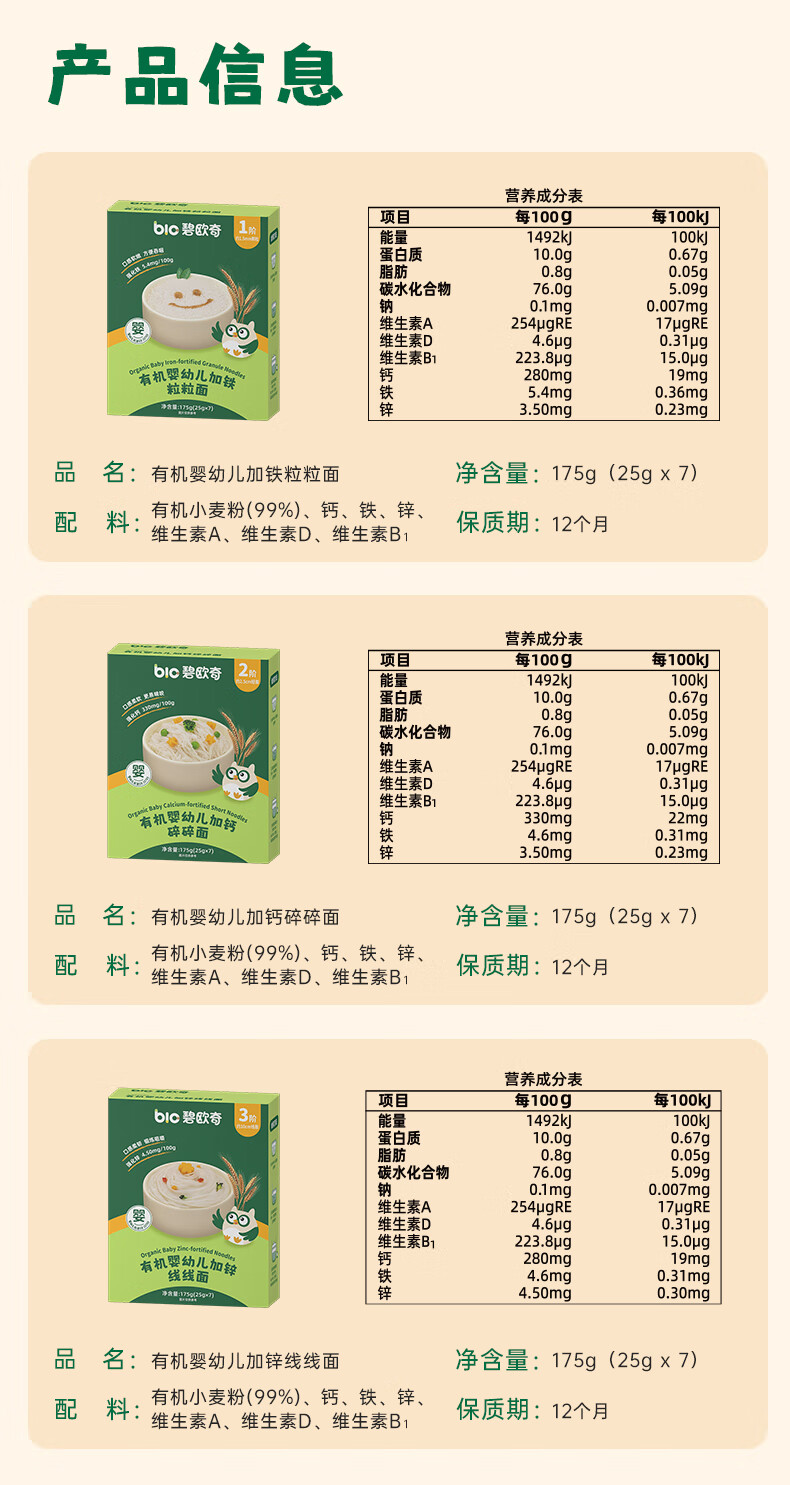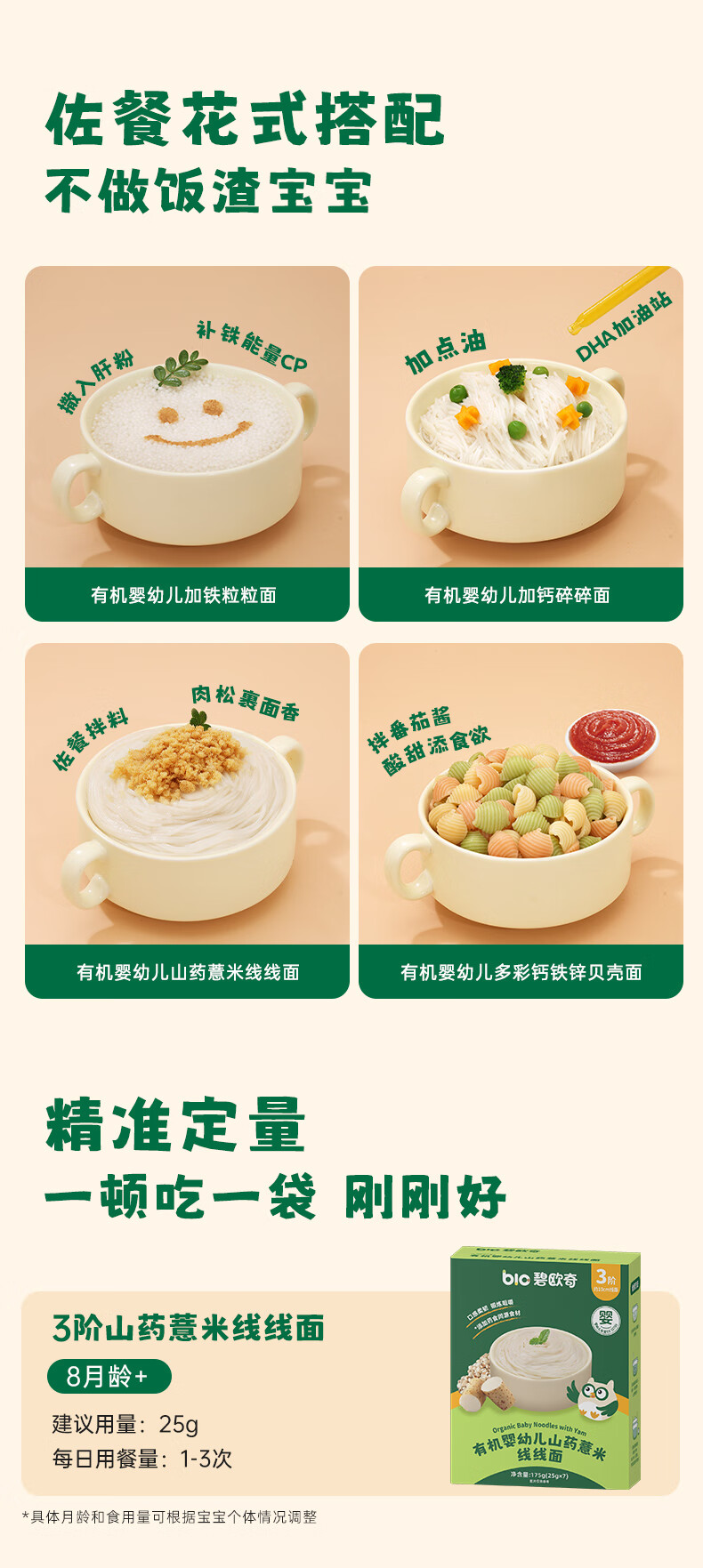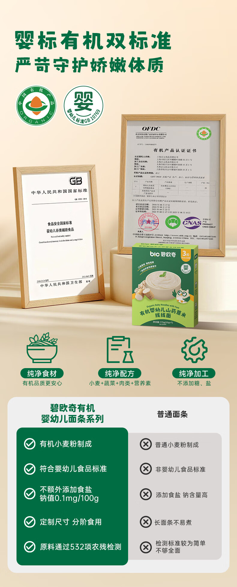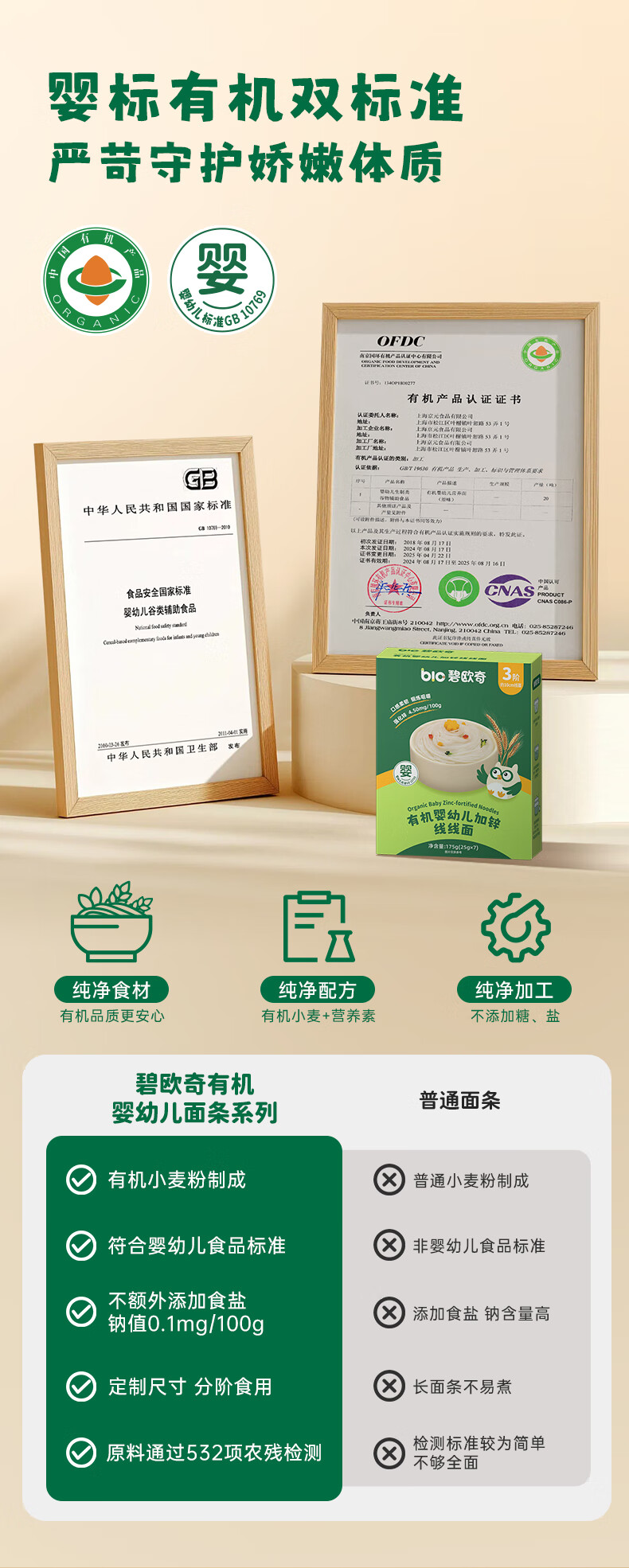 碧欧奇【99元任选6件】有机婴幼儿蔬菜辅食油米面粉面条酱油调味品 12月+|鳕鱼牛肉猪肝贝壳面175g