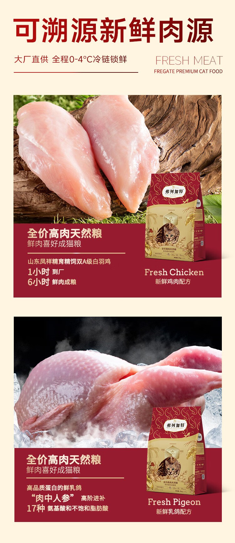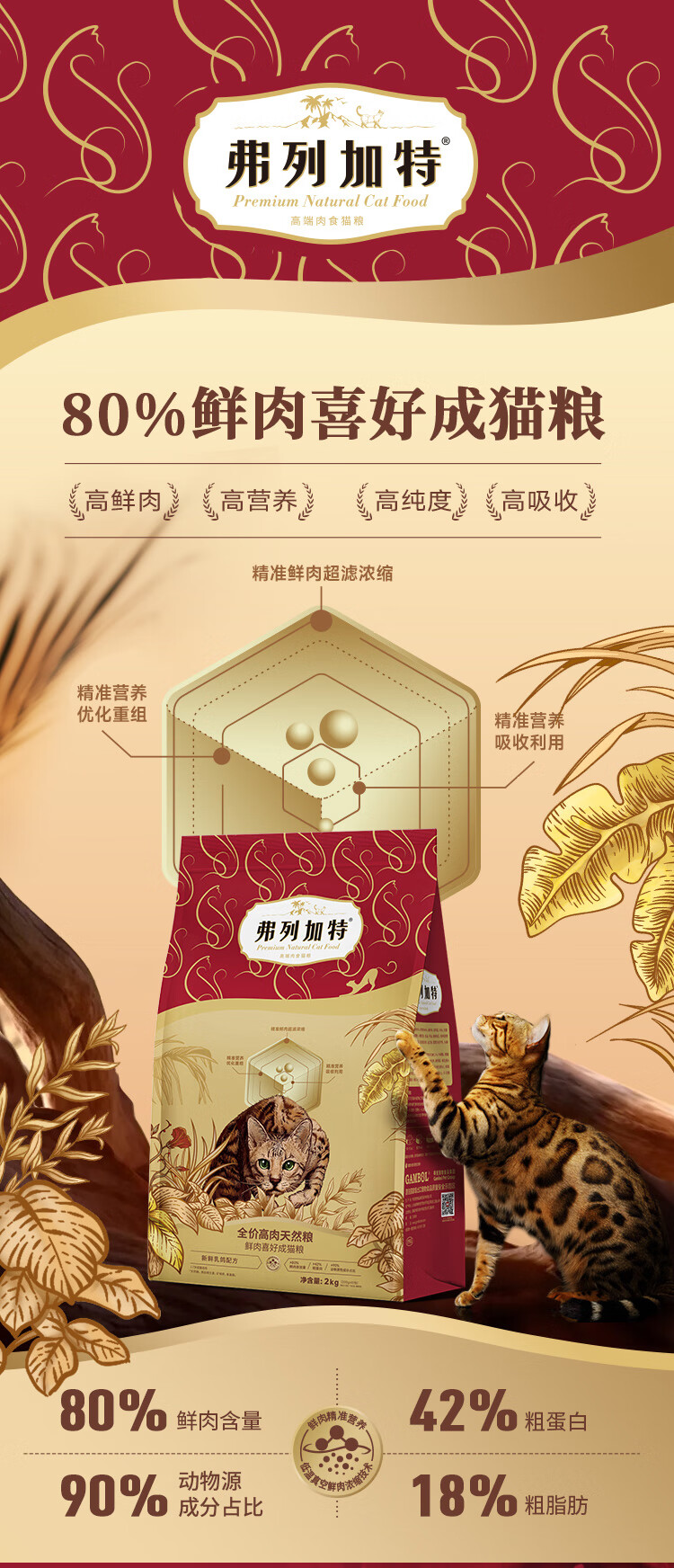 弗列加特80%高肉鲜肉喜好成猫粮鸡肉味 2kg