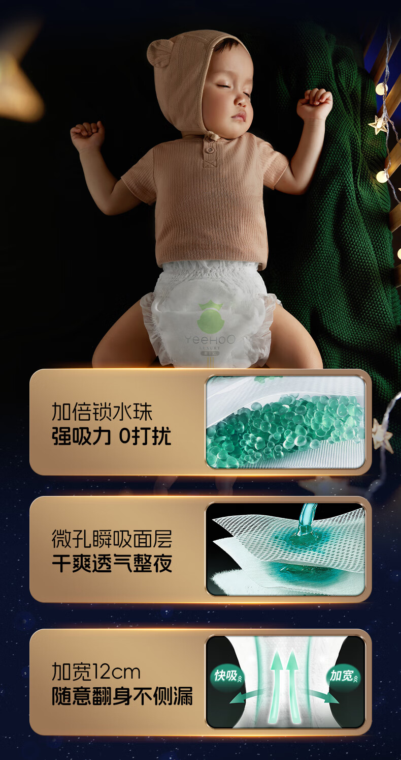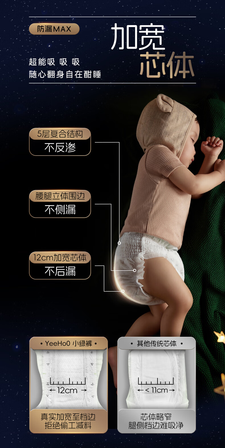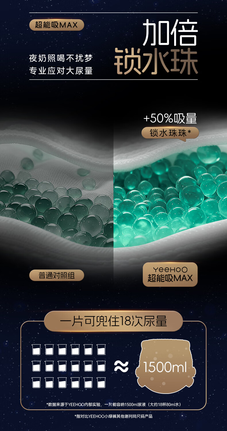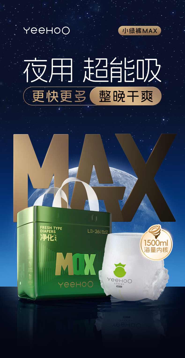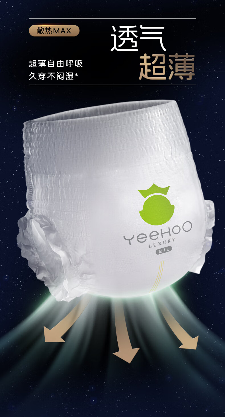 YEEHOO小绿裤MAX大吸量拉拉裤 婴儿XL码25片 超薄透气安睡防红臀