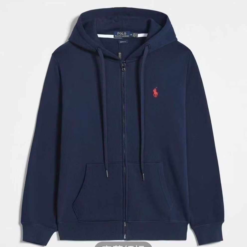 FAME RALPH LAUREN保罗美国潮牌连帽拉链开衫秋冬款卫衣小马刺绣款男女外套外穿 灰色拉链(黑小马) 3XL