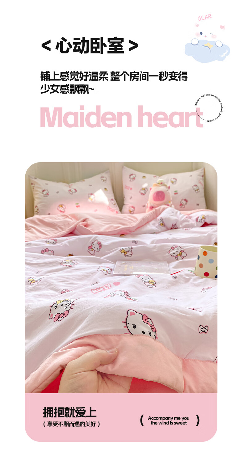 浪莎(LangSha)邹邹双层纱纯棉全棉花边床上四件套亲肤裸睡宿舍床单被罩三件套品 遇见【四季通用 亲肤裸睡】 1.2m 床单款 三件套-被套150*200cm