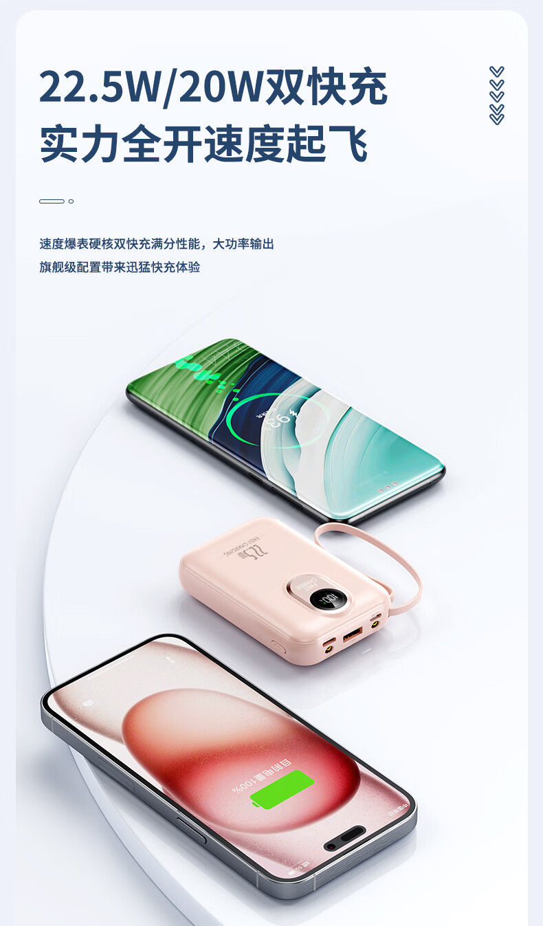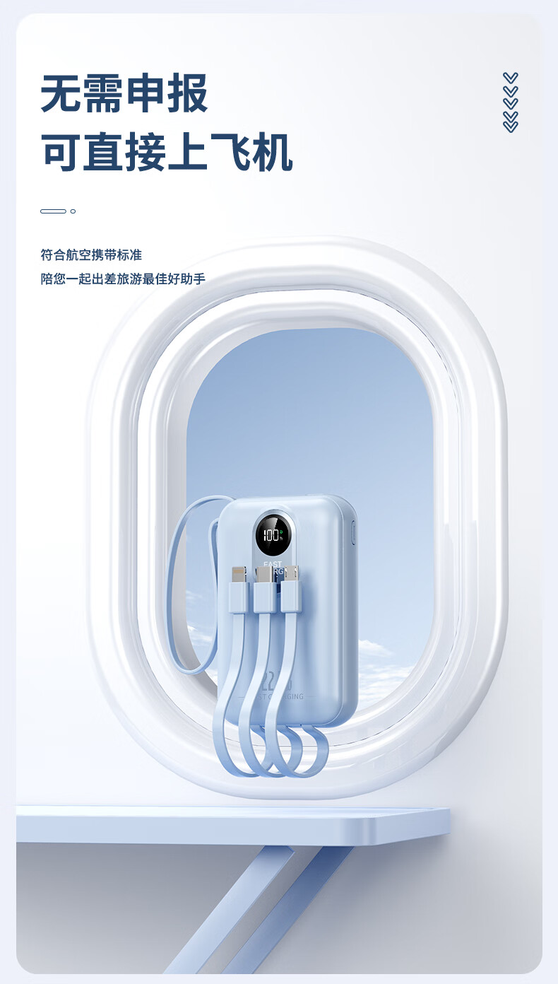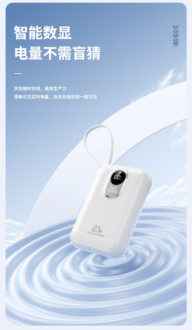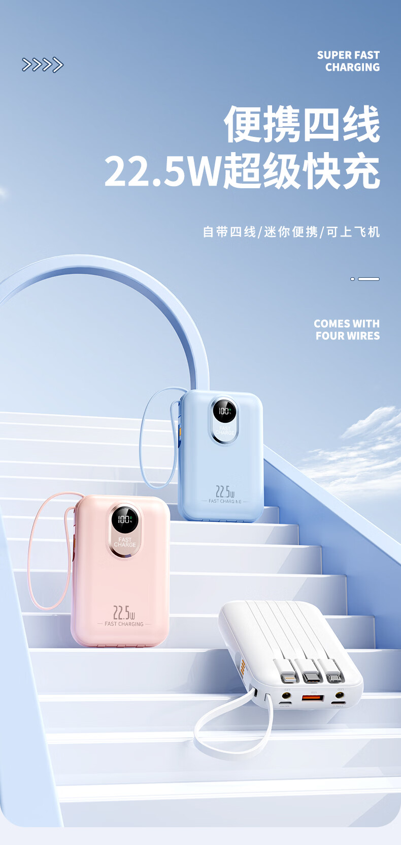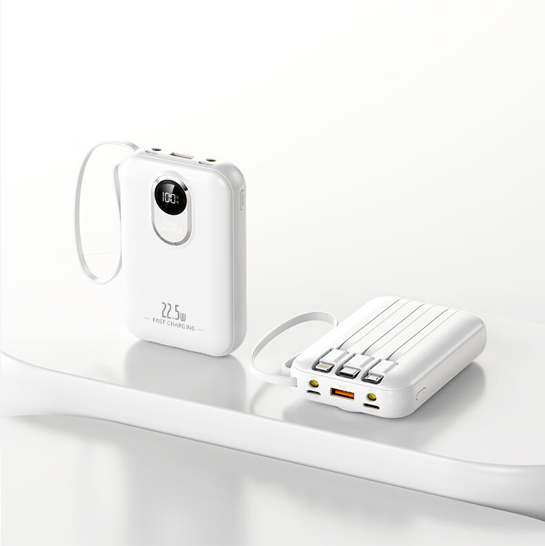 斯沃度【国家3C认证丨20000毫安丨可上飞机高铁】120W超级快充充电宝自带线小巧便携移动电源适苹果安卓 白色【低配版】国产电芯