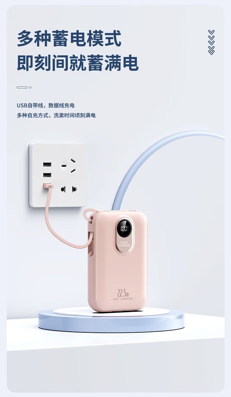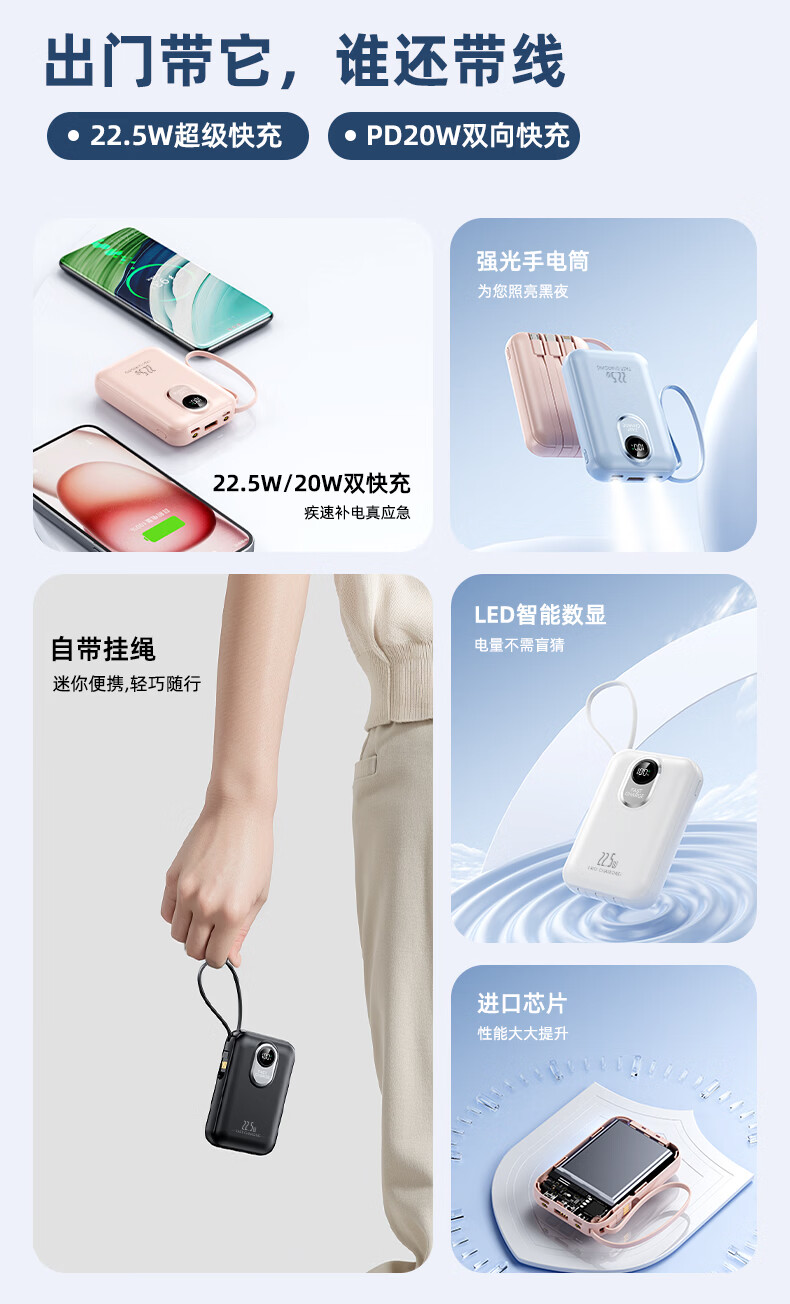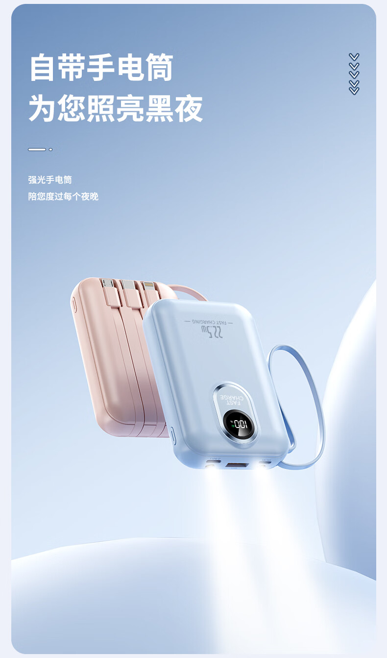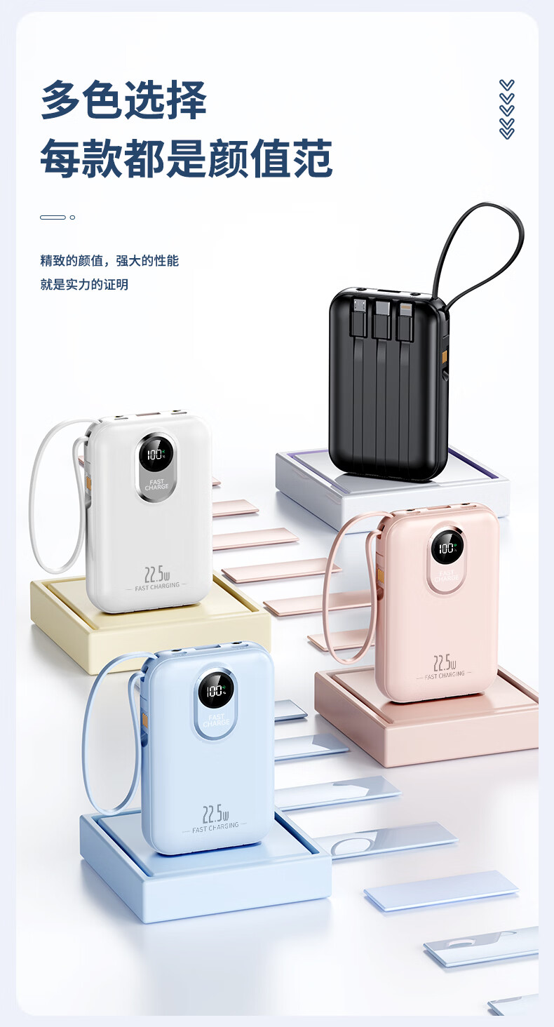 斯沃度【国家3C认证丨20000毫安丨可上飞机高铁】120W超级快充充电宝自带线小巧便携移动电源适苹果安卓 白色【低配版】国产电芯